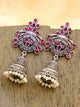 Gold-Plated Jhumka Earrings with Maroon Pearls for Women