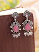 - Boho-Kissed Antique Oxidised Silver Pearl Jhumkas with Green Drops for Chic Feminine Flair