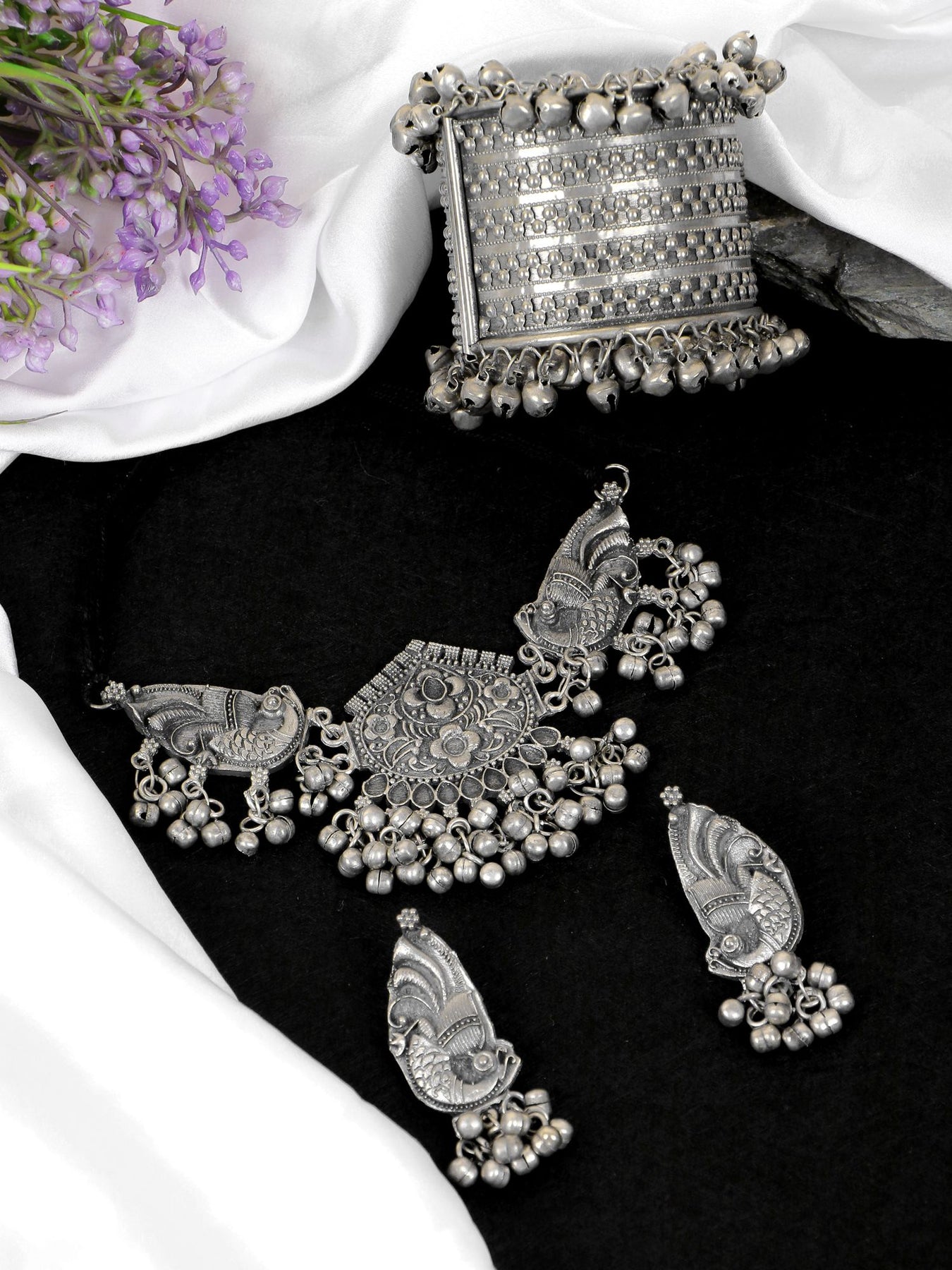 For instance, the peacock motif, a classic in Indian jewellery, takes on a whole new dimension in oxidised silver. The detailed craftsmanship brings the bird to life, making the piece a conversation starter.