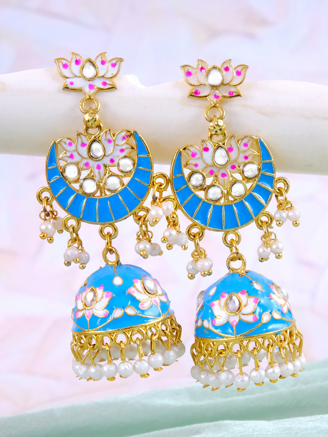 Unleash your inner diva with the dazzling depth and splendor of Jhumka earrings. Immersed in tradition and enrobed in aesthetic appeal, they are the perfect quintessence of grace and grandeur. So don those jhumka earrings and dance to the rhythm of your joyous heart.