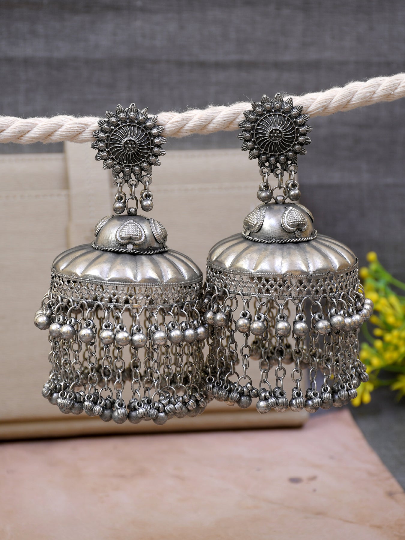 - Silver Jhumka Earrings: These are perfect for those who prefer a touch of elegance and sophistication. Silver jhumkas can be paired beautifully with sarees, lehengas or even western outfits.