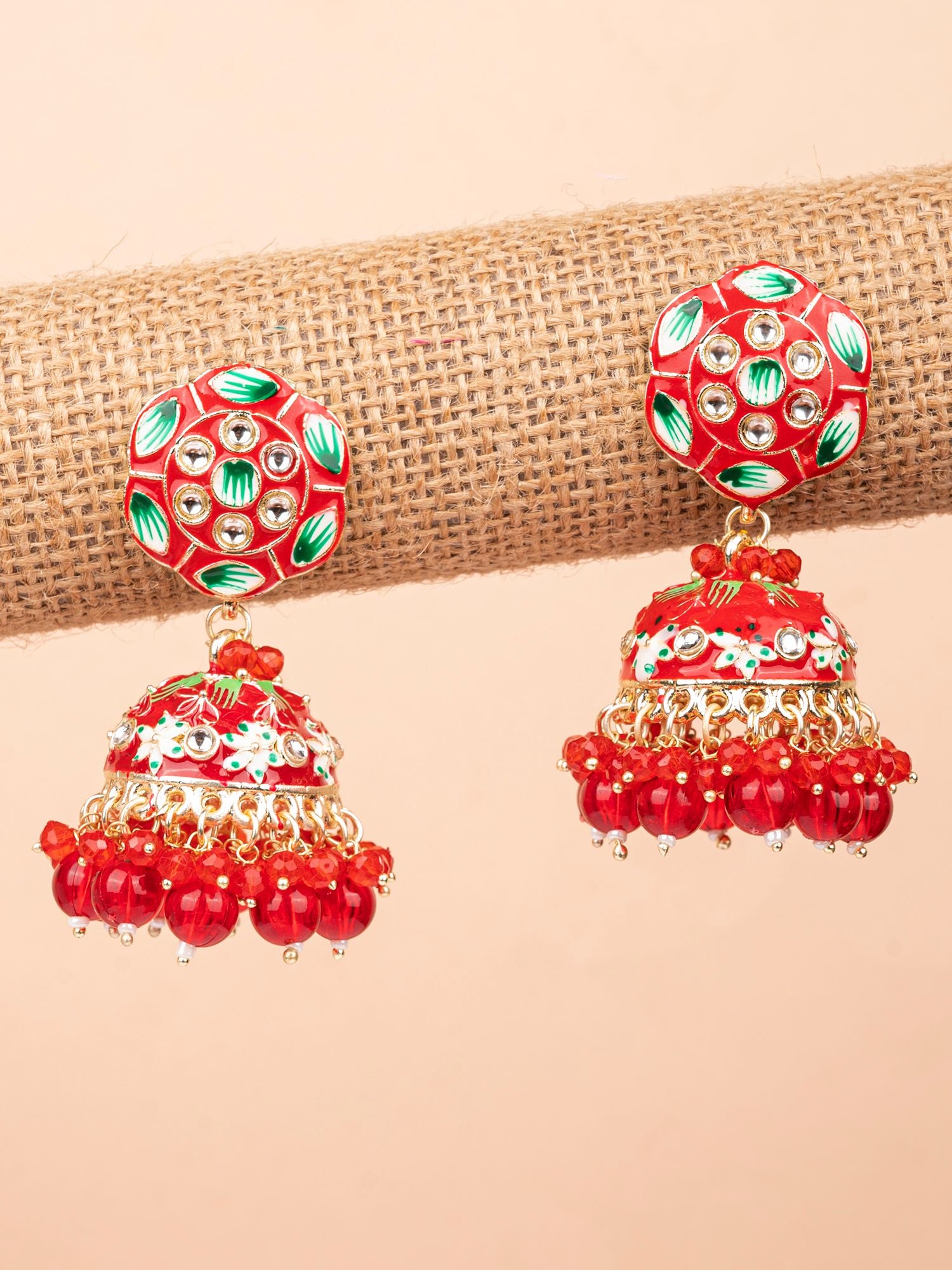 Alluring Red Meenakari Jhumka Earrings with Gold Design for Women and Girls