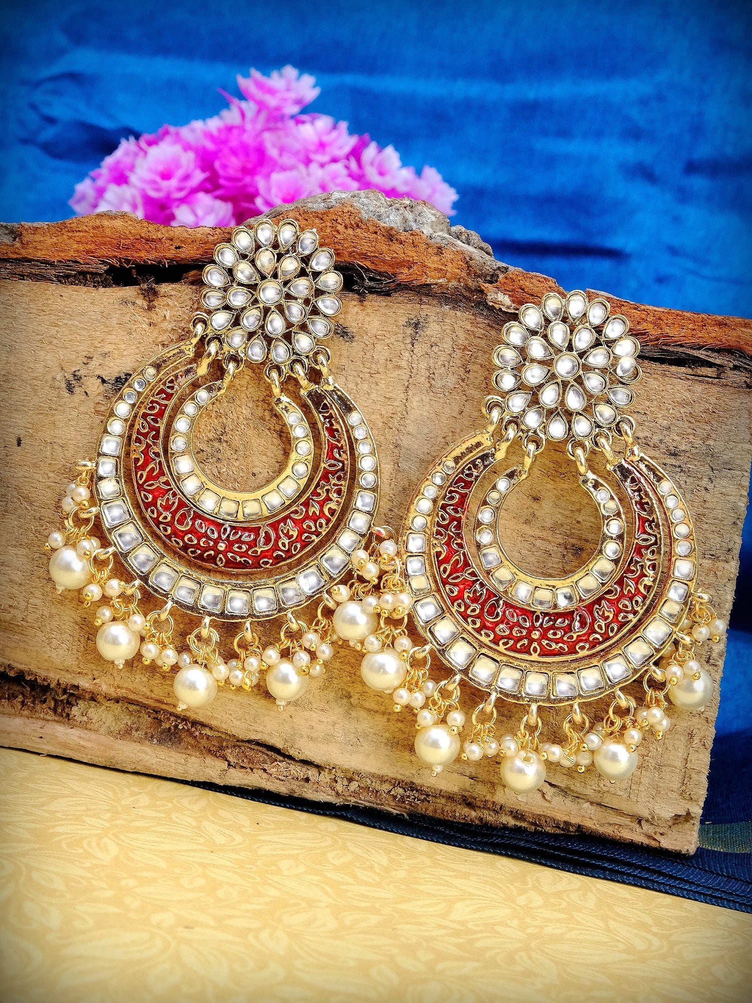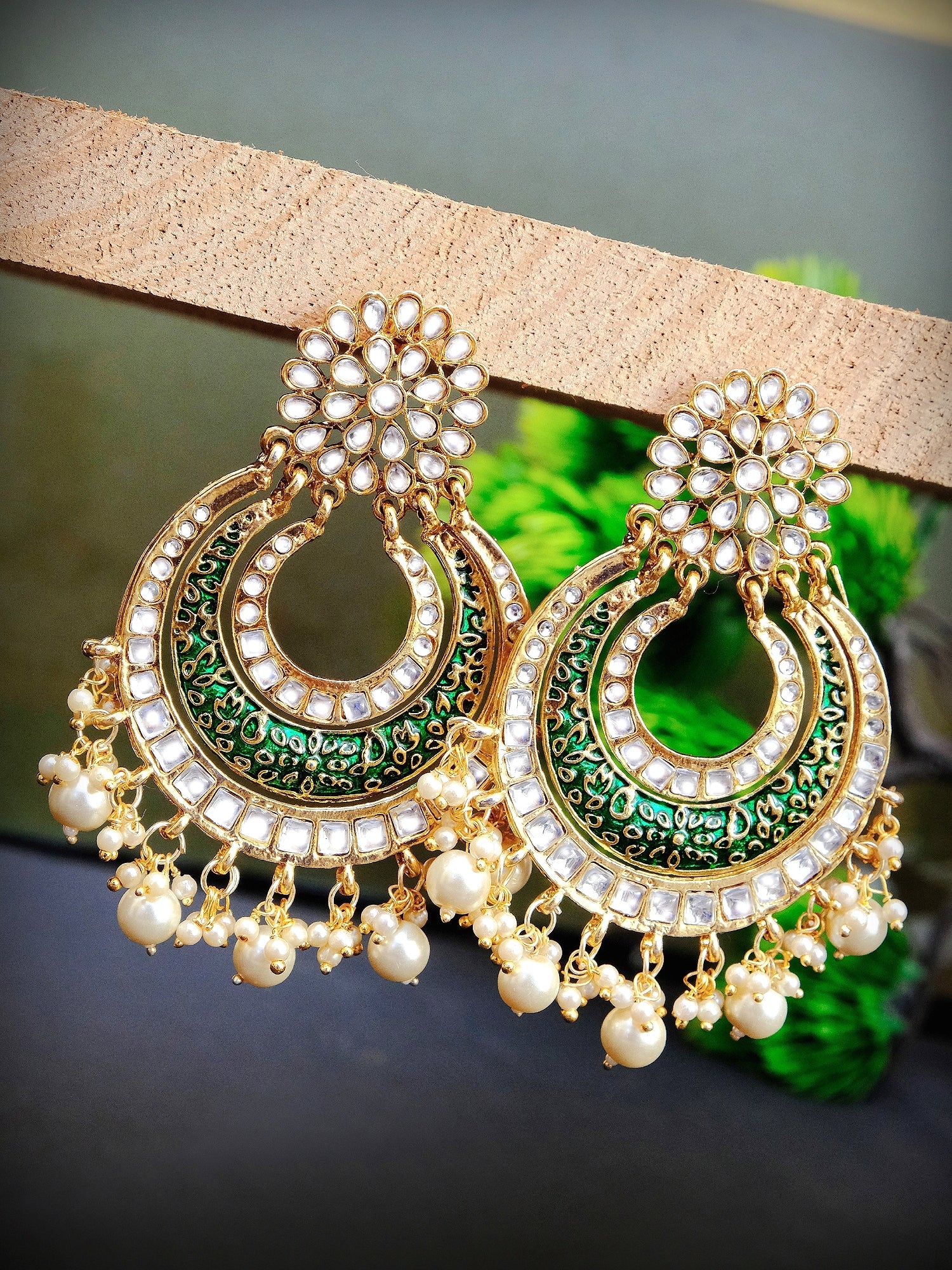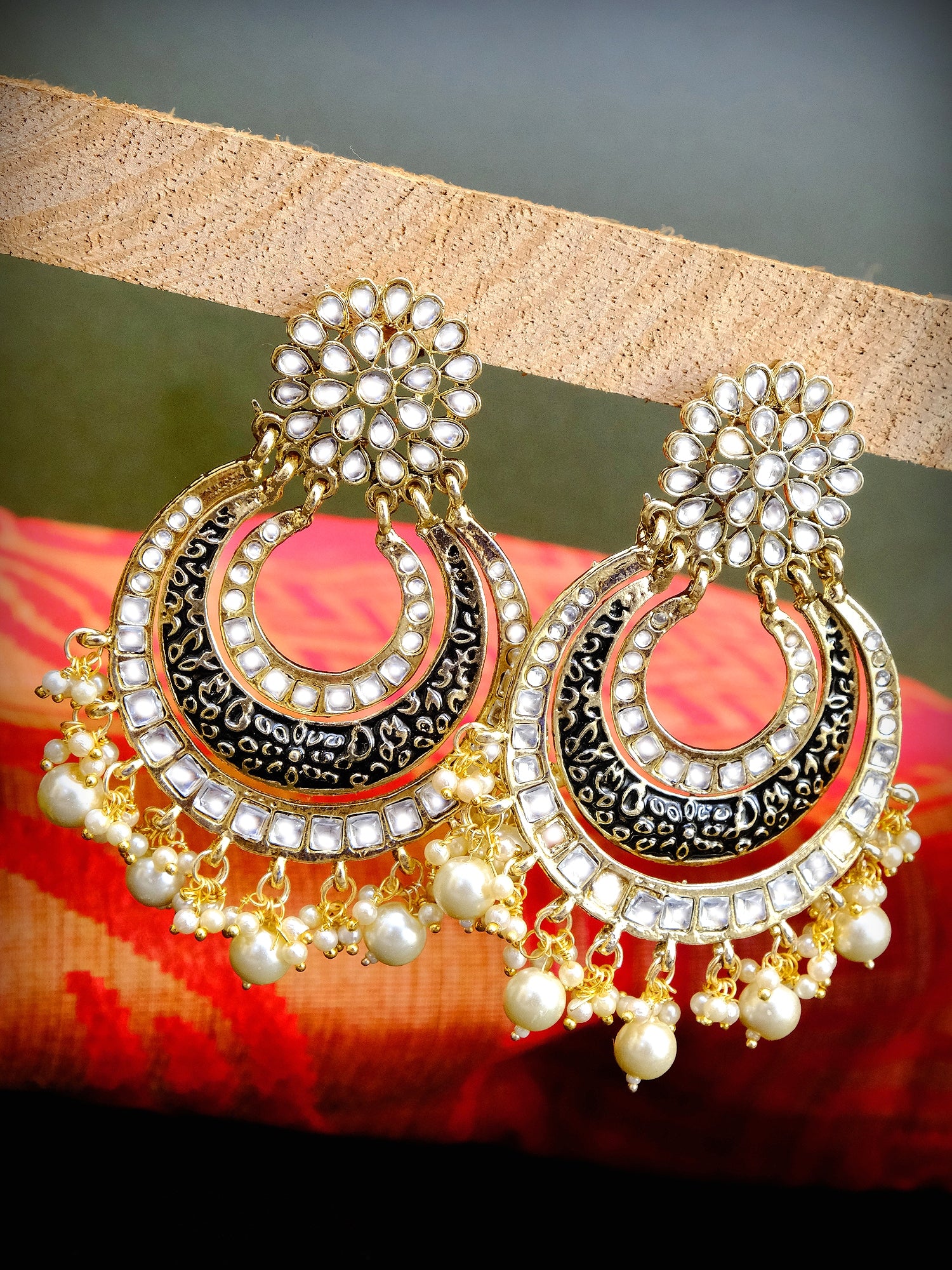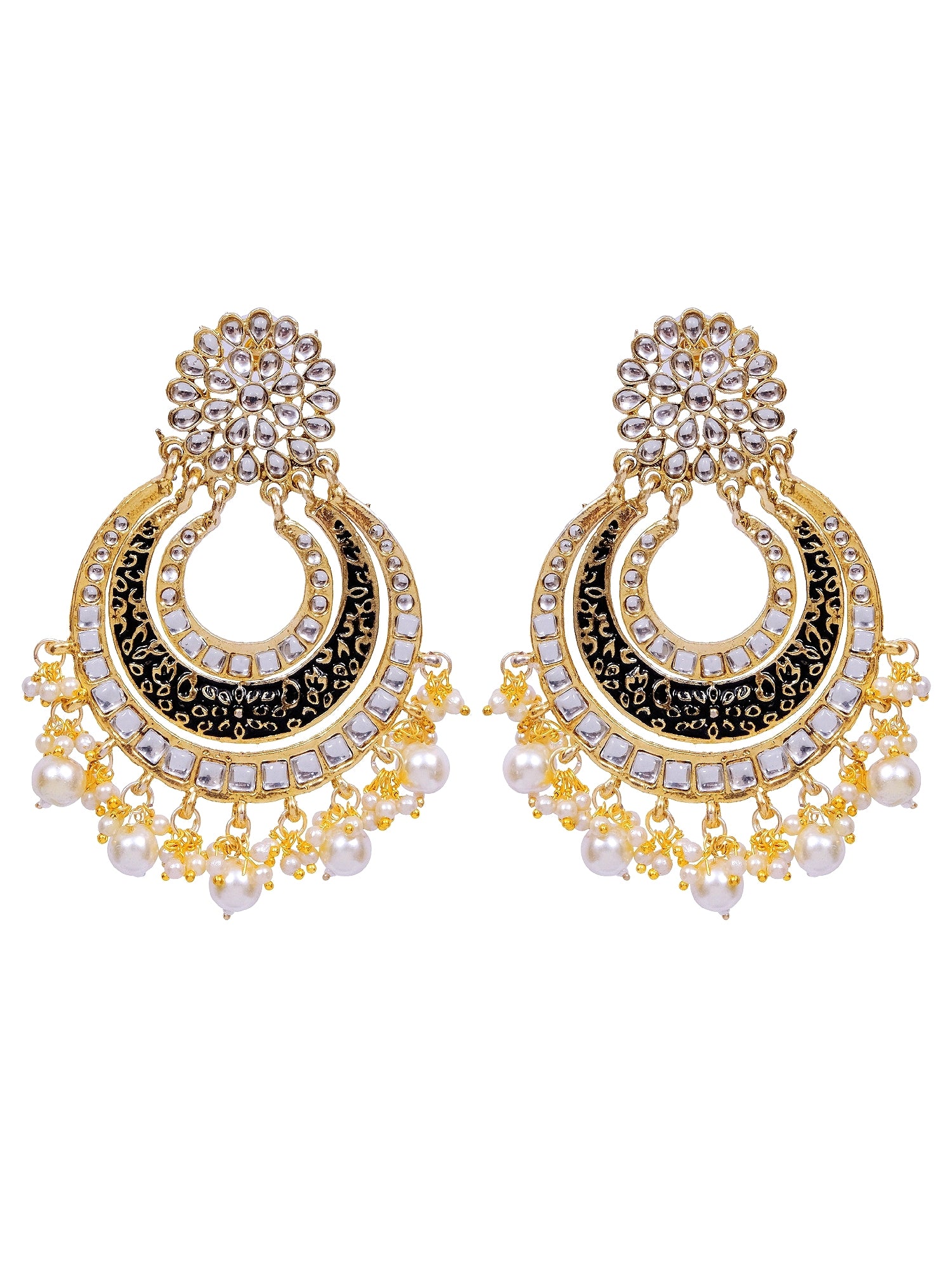 Ada's Gold Chandbali Earrings - Pearl Dangling, Indian