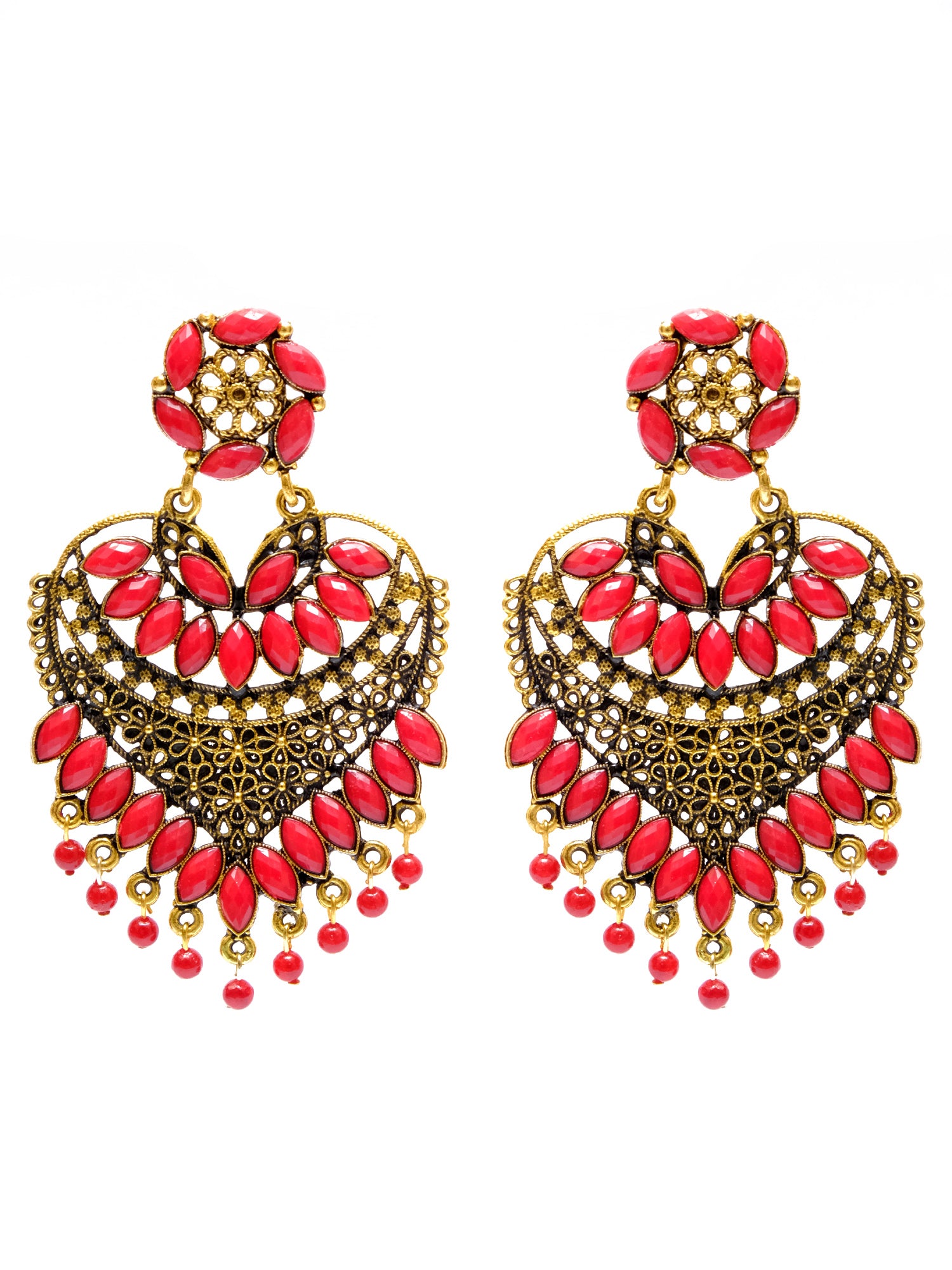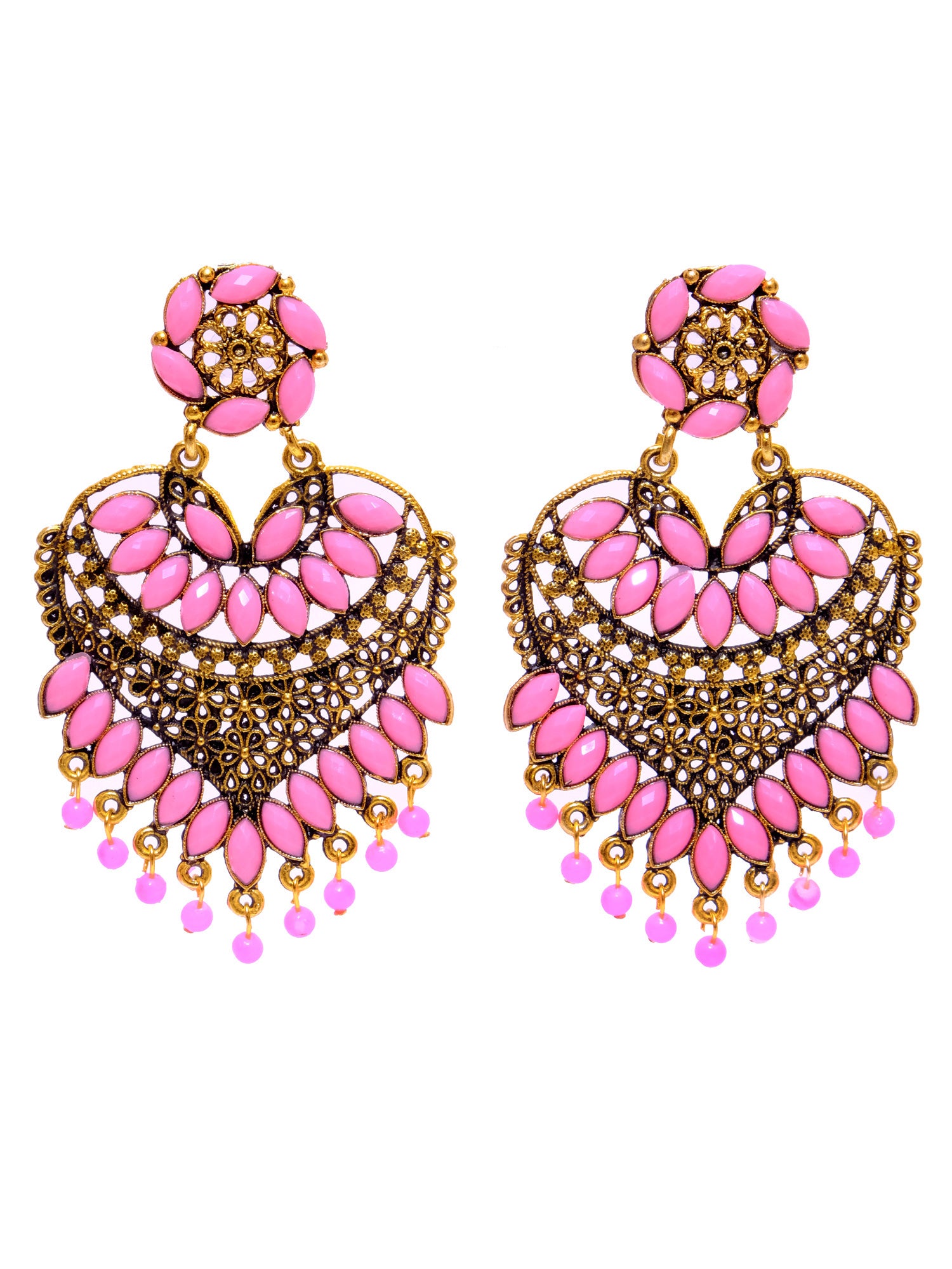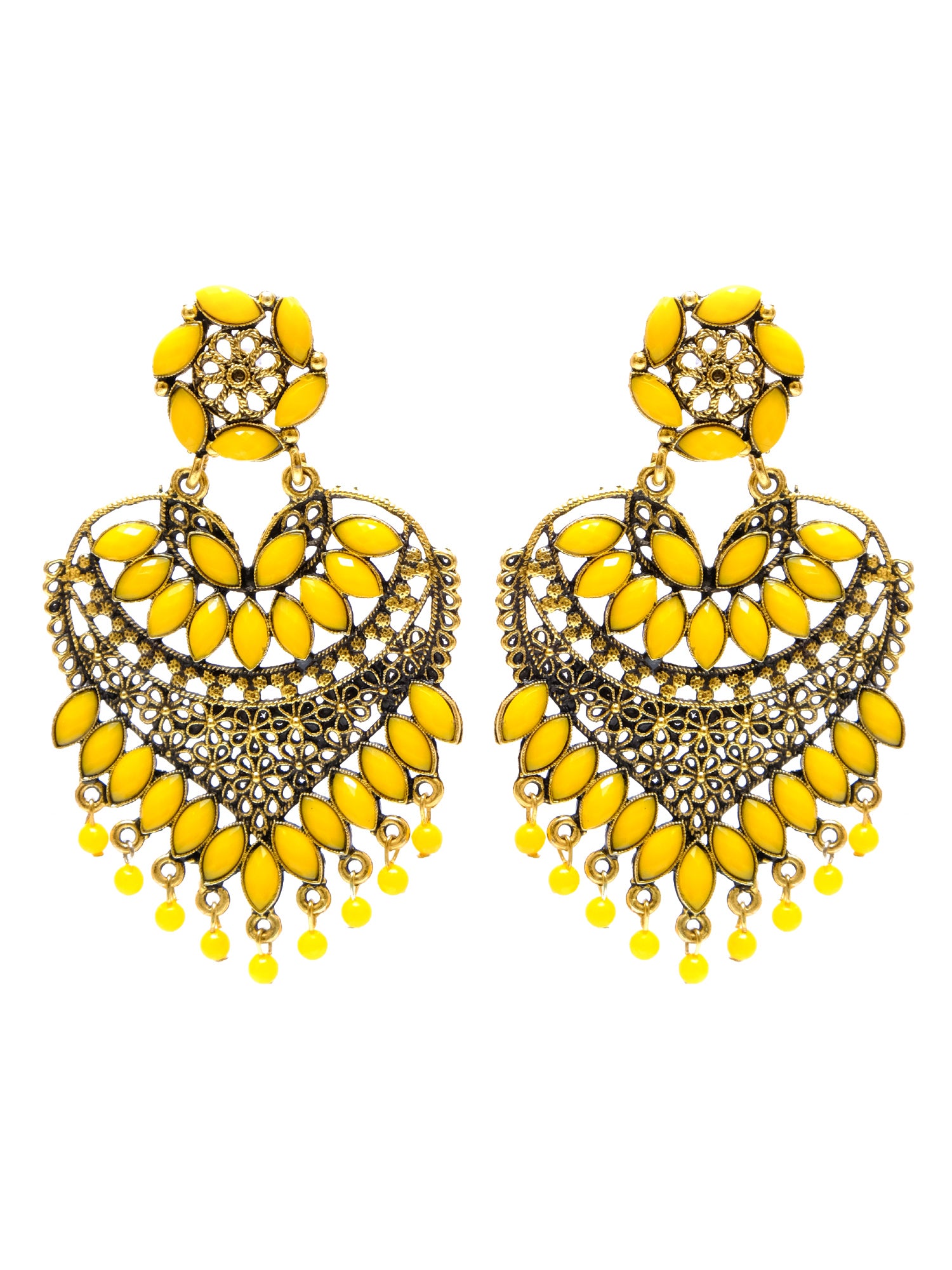 - Gold Plated Heart Yellow Kundan Drop & Dangler Earrings Gifts For Women Girls