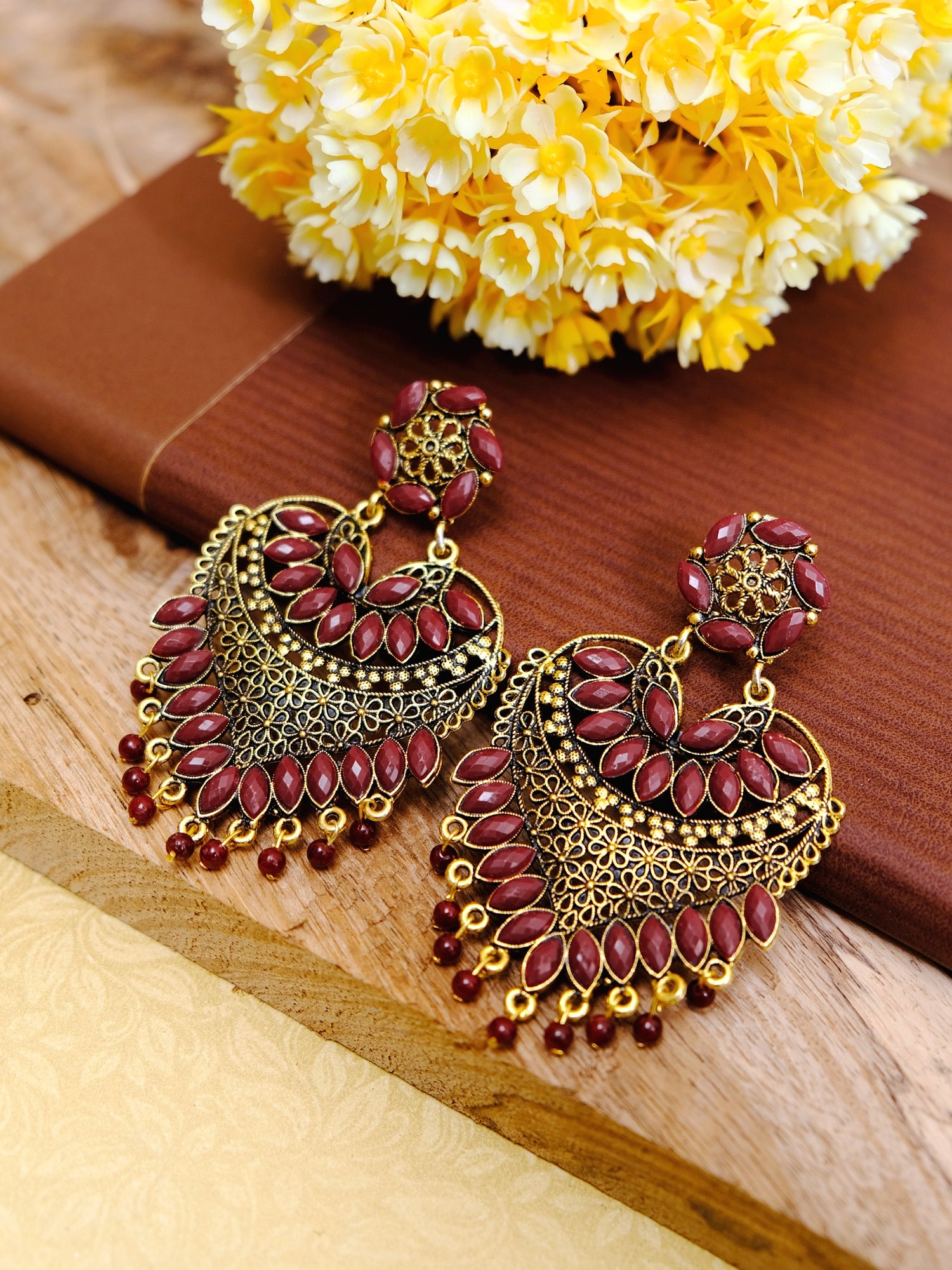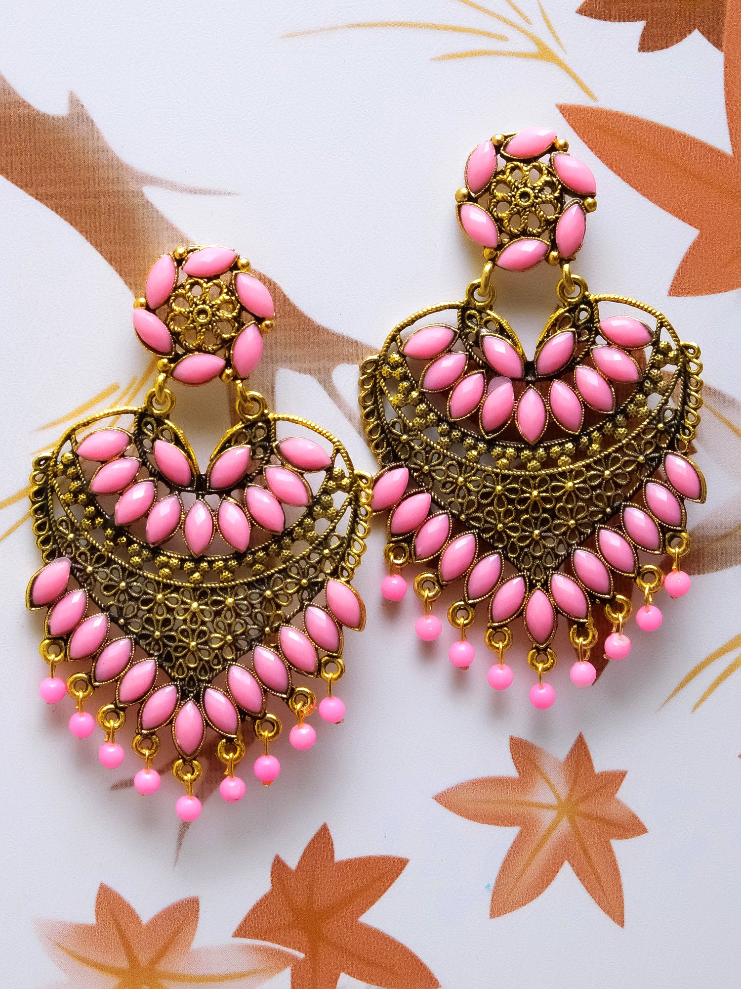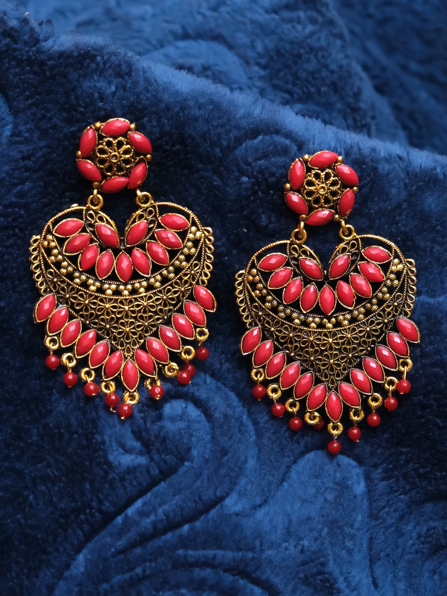 - Gold Plated Heart Yellow Kundan Drop & Dangler Earrings Gifts For Women Girls