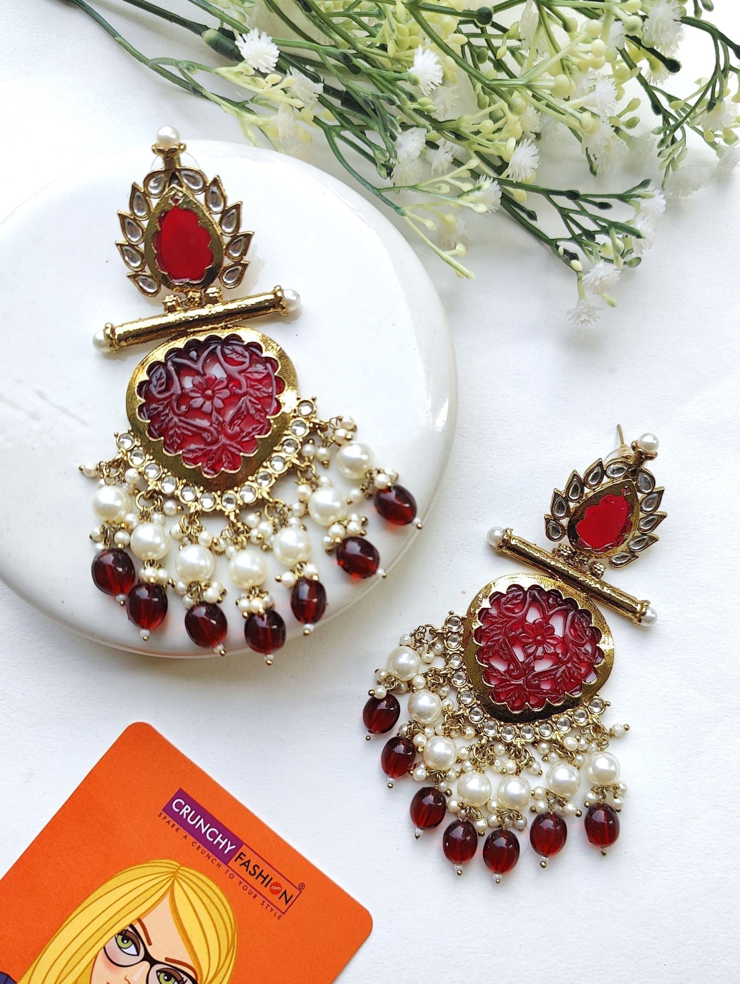 - Maroon Kundan Chandbali Earrings - Festive Sparkle