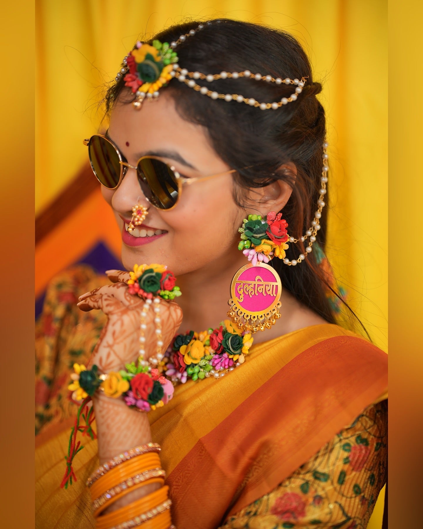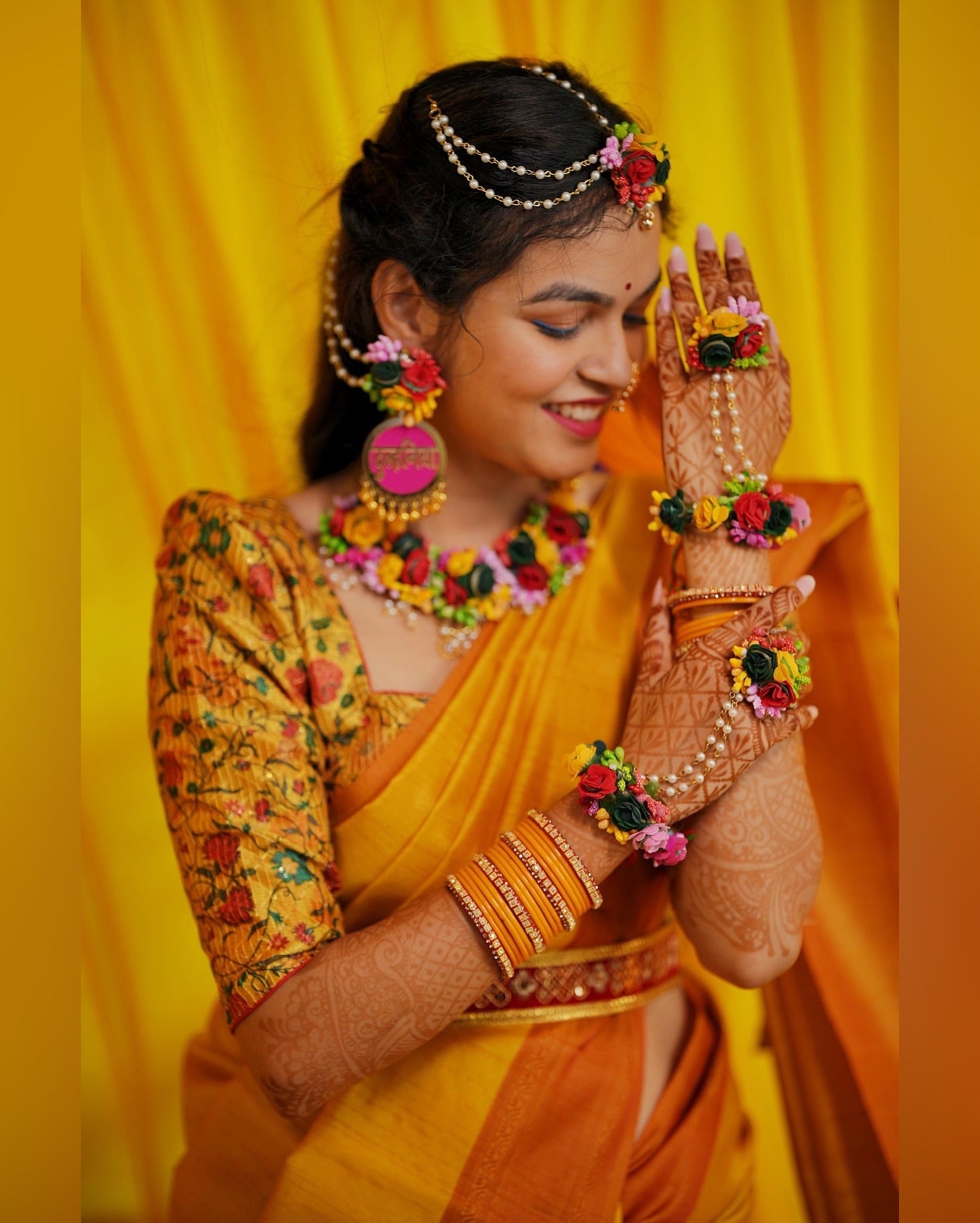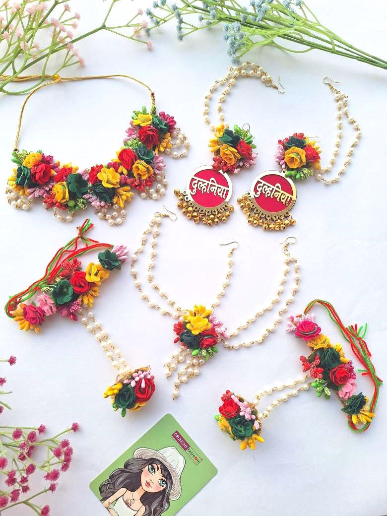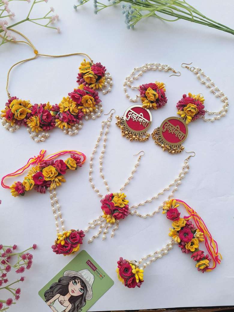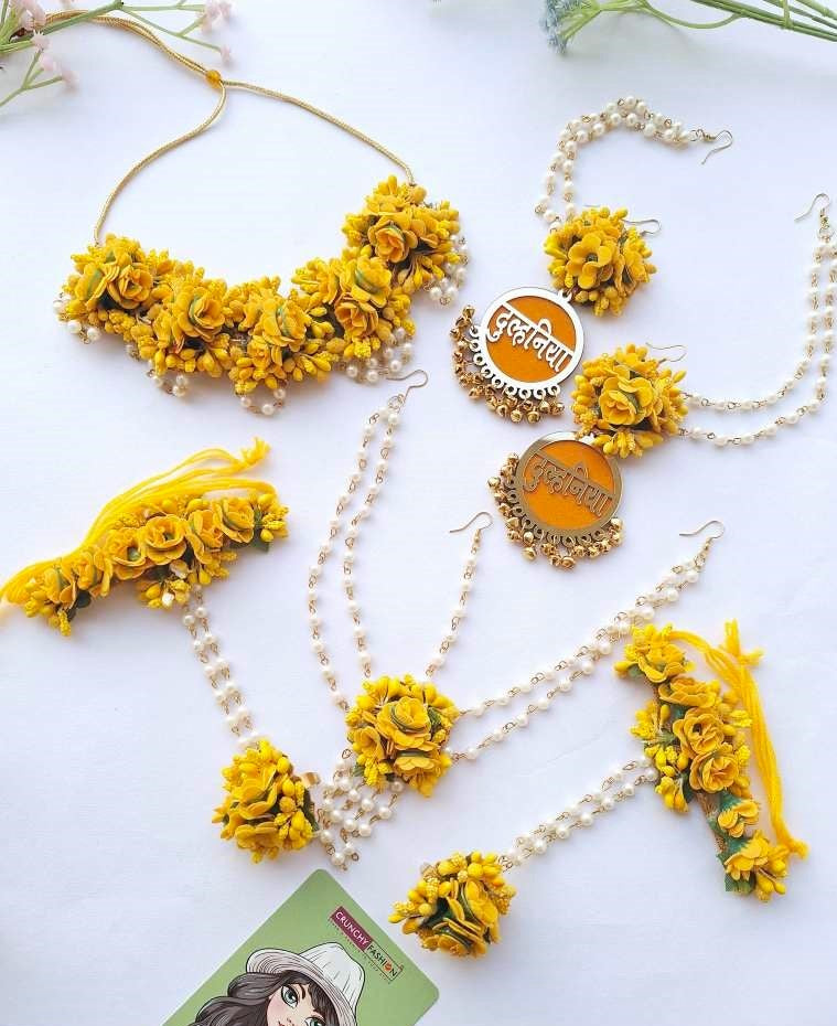 - Dulhaniya's Pink-Yellow Floral Haldi-Mehndi Jewelry Set for haldi Mehndi