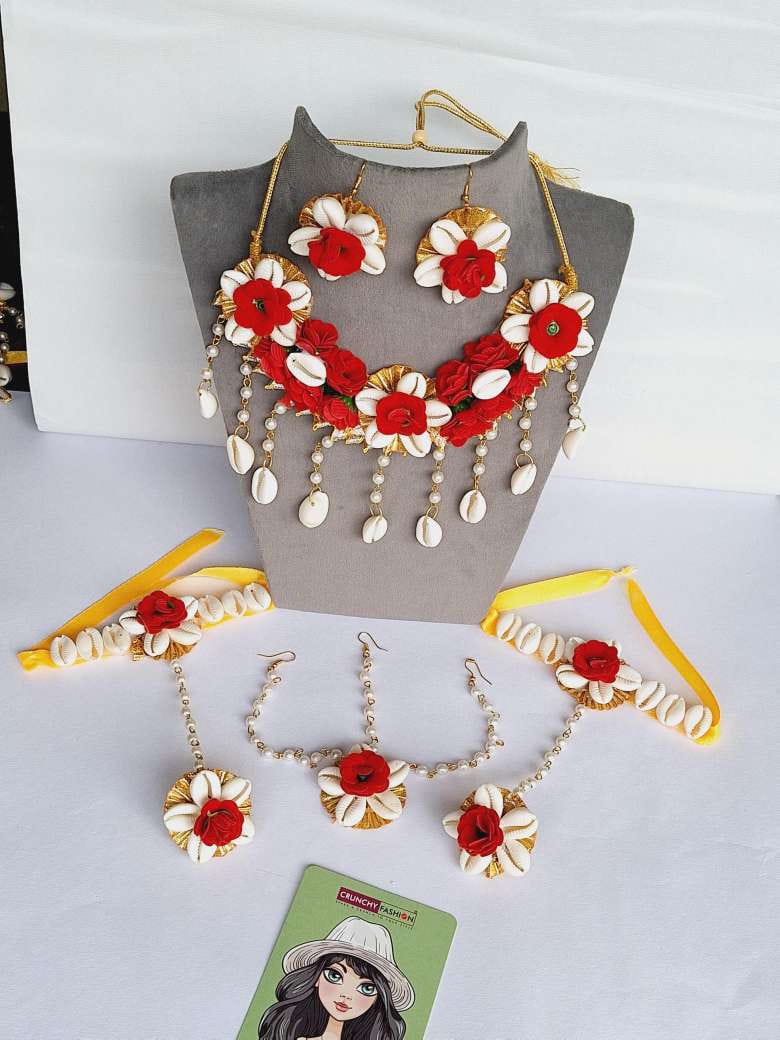 - Red Floral Haldi/mehndi/Baby Shower Jewellery set