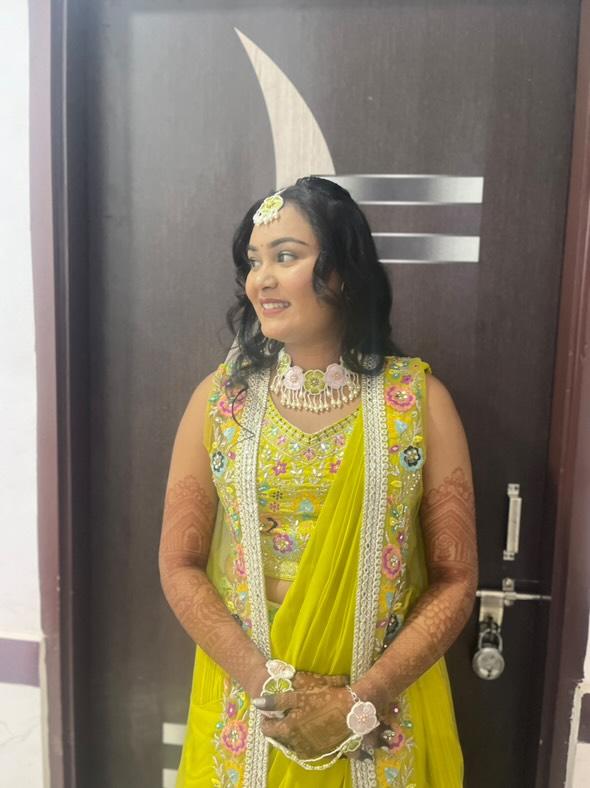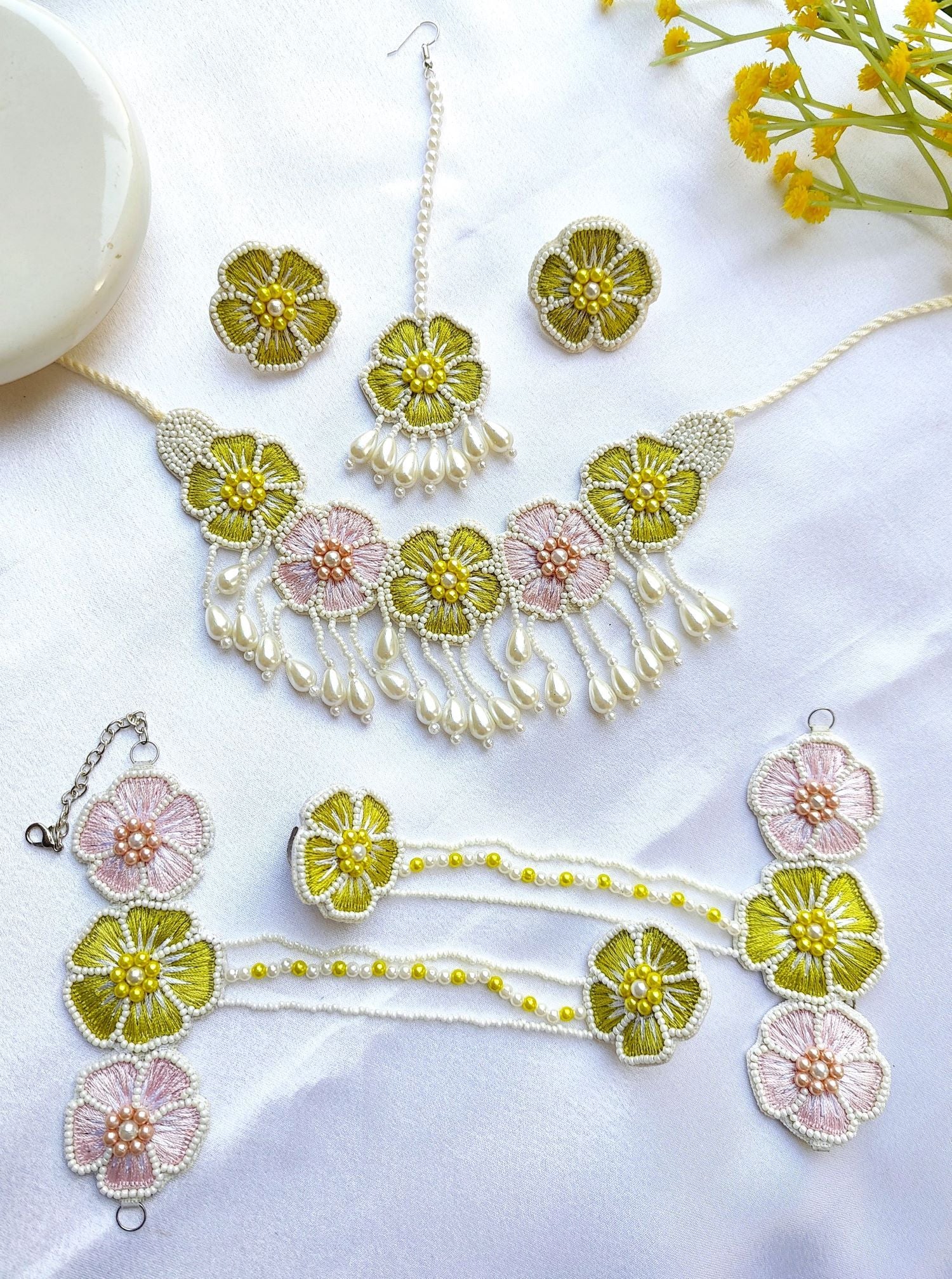 - Handmade Pink-Green Haldi Jewellery Set: Necklace & Mehandi for Weddings and Baby showers