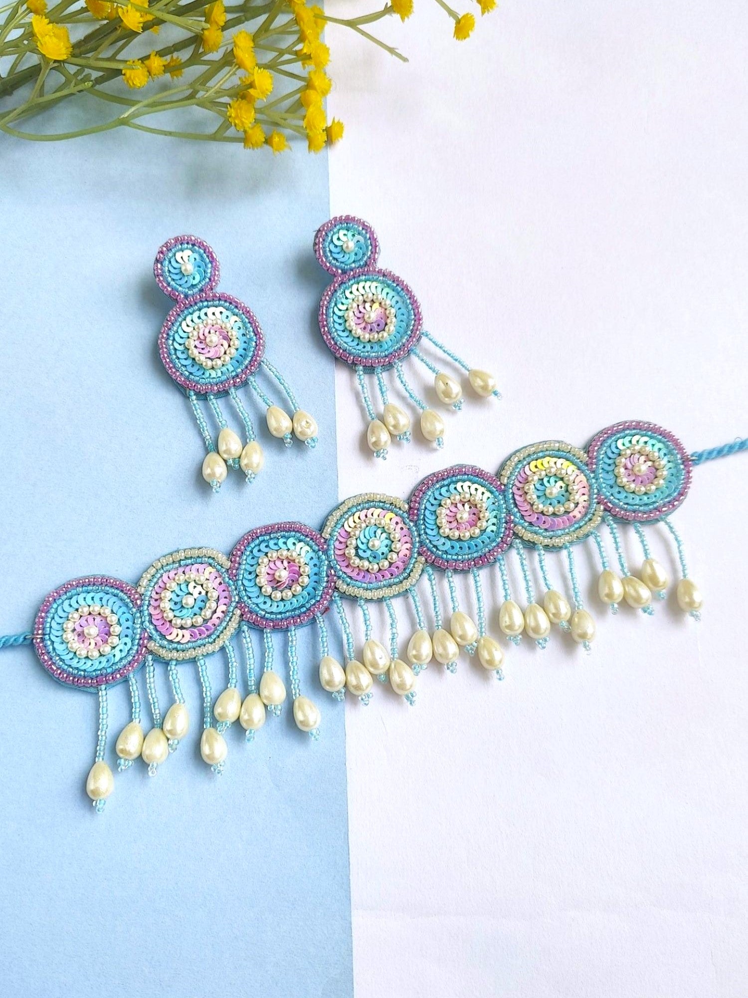 Artisan-Crafted Sky Blue Bead Choker Set: Perfect Accent for Haldi & Mehndi