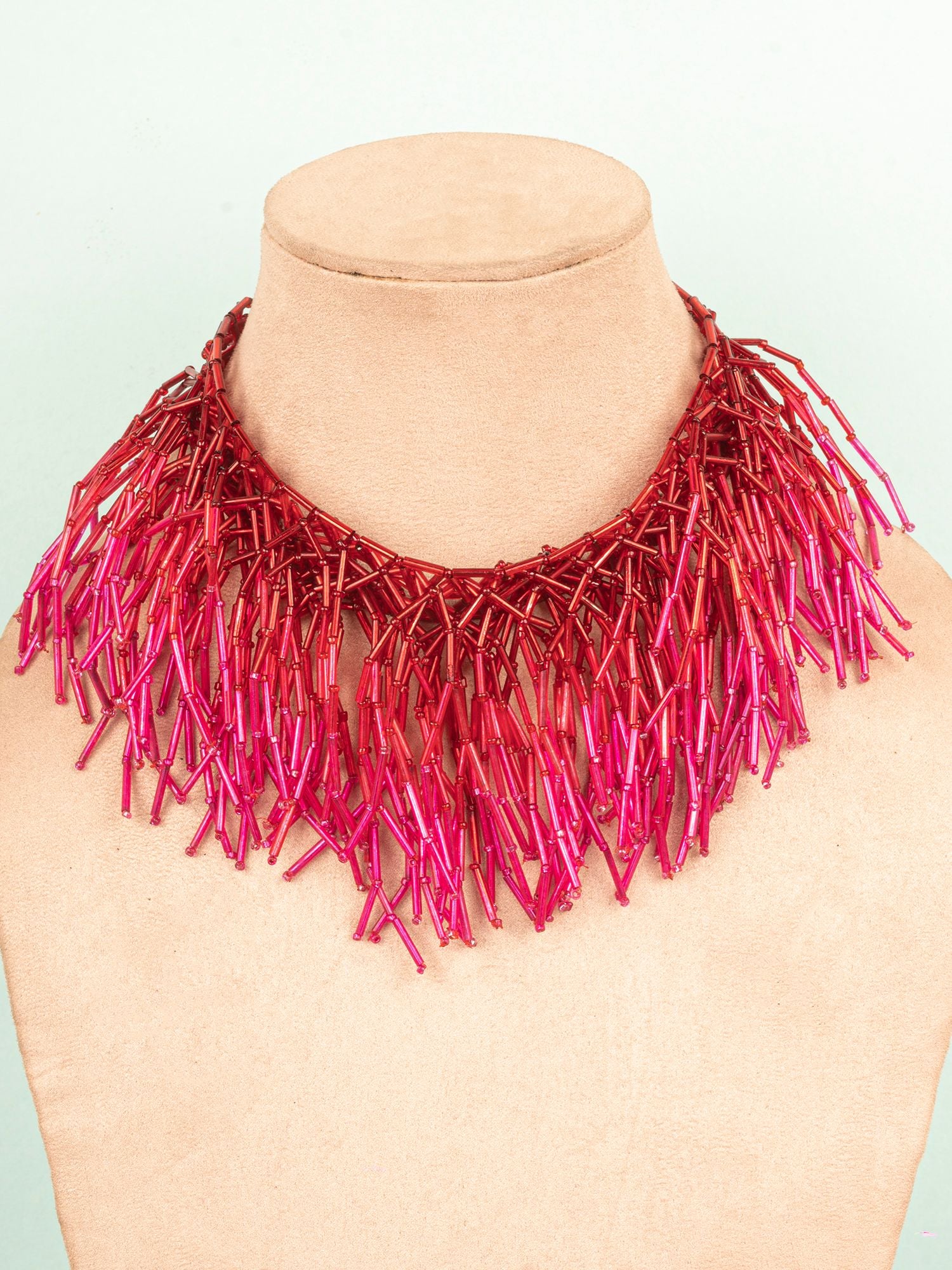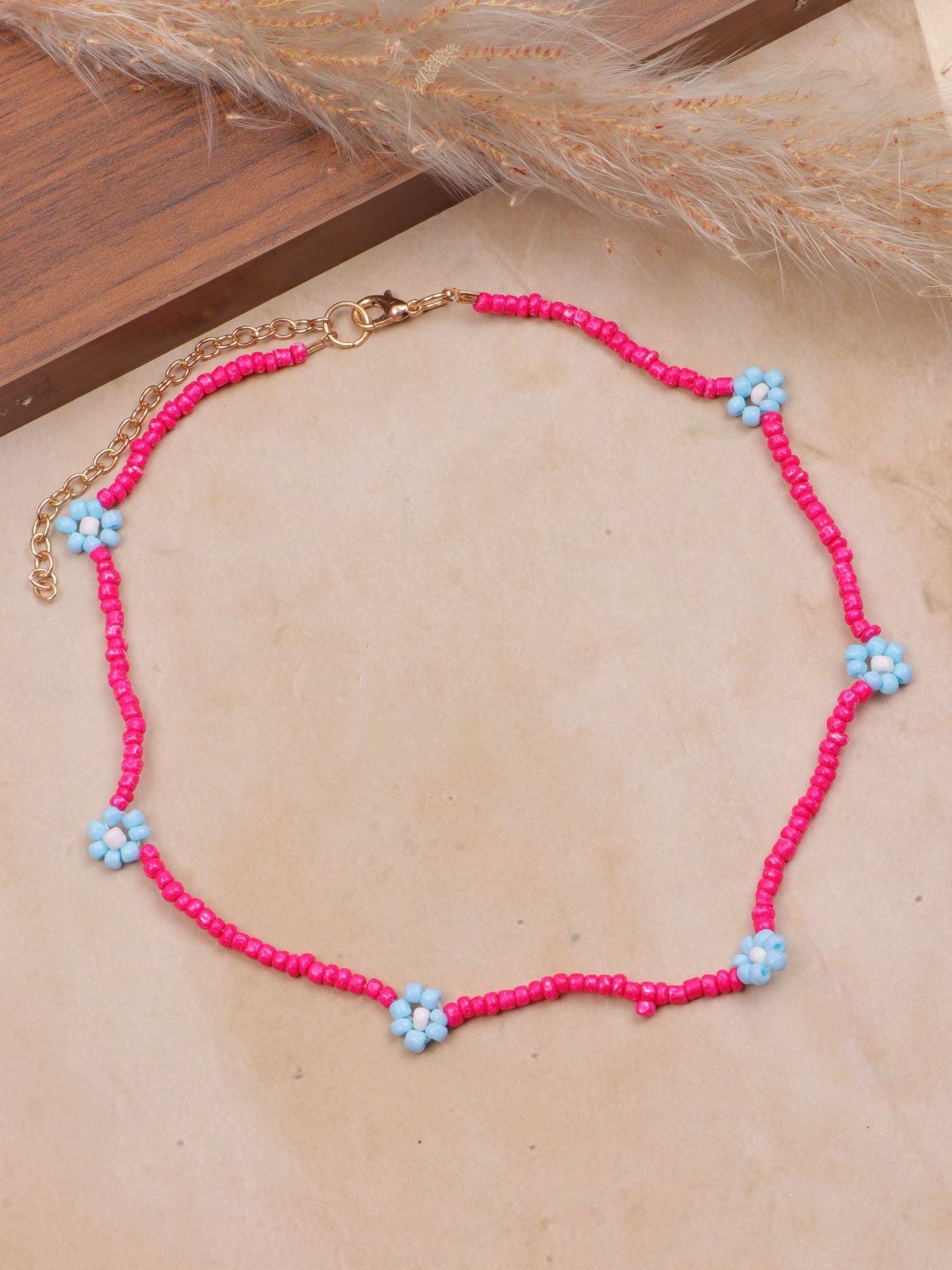 Stylish Handmade Beaded Magenta Choker Necklace for Women & Girls