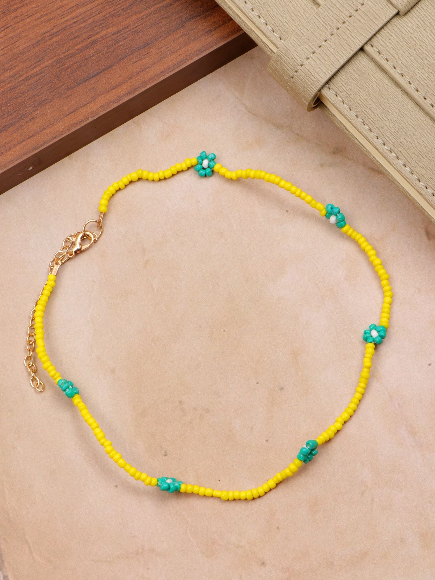 Fusion Daisy Delight: Yellow Beaded Multilayer Choker for Modern Women