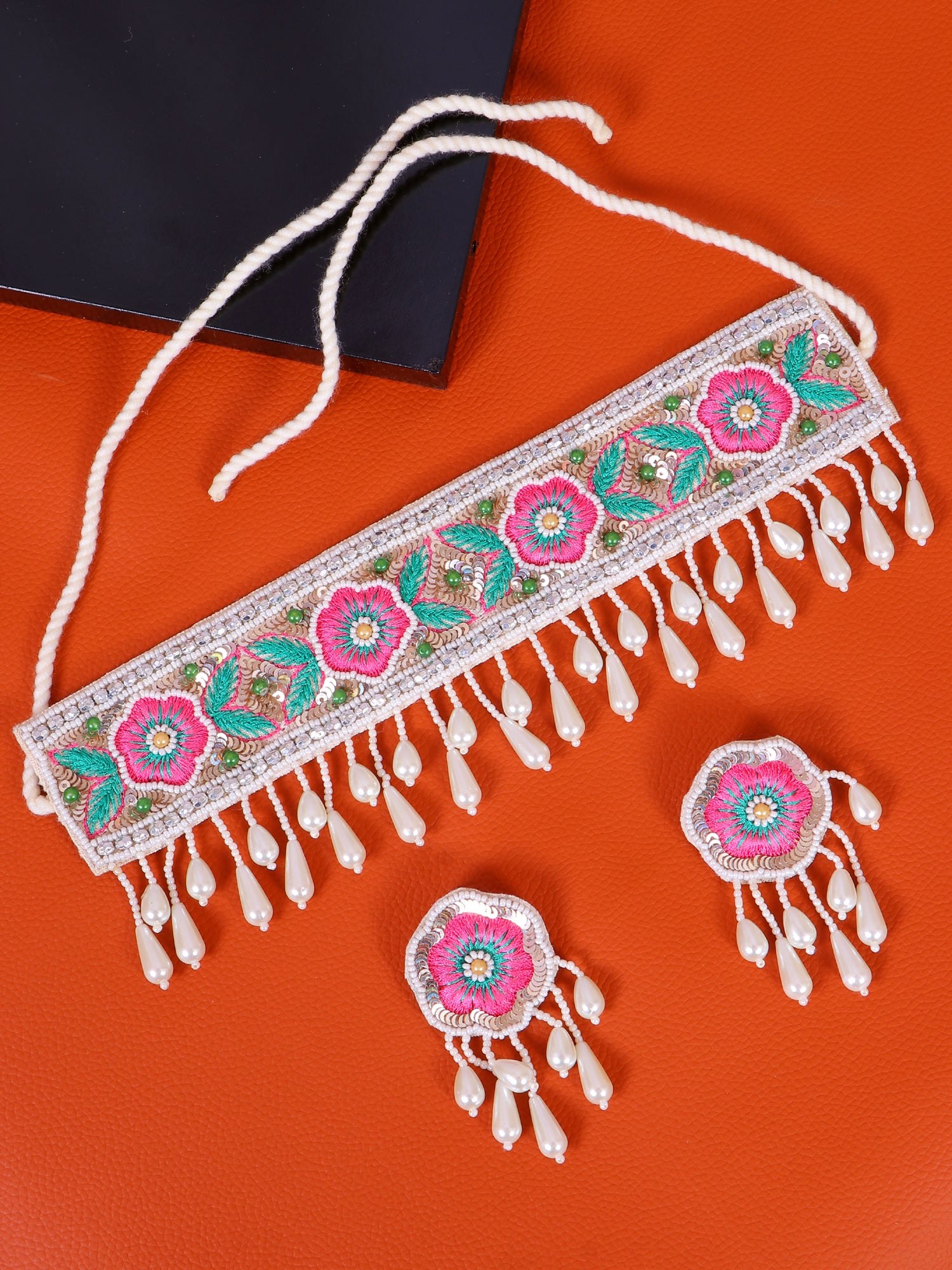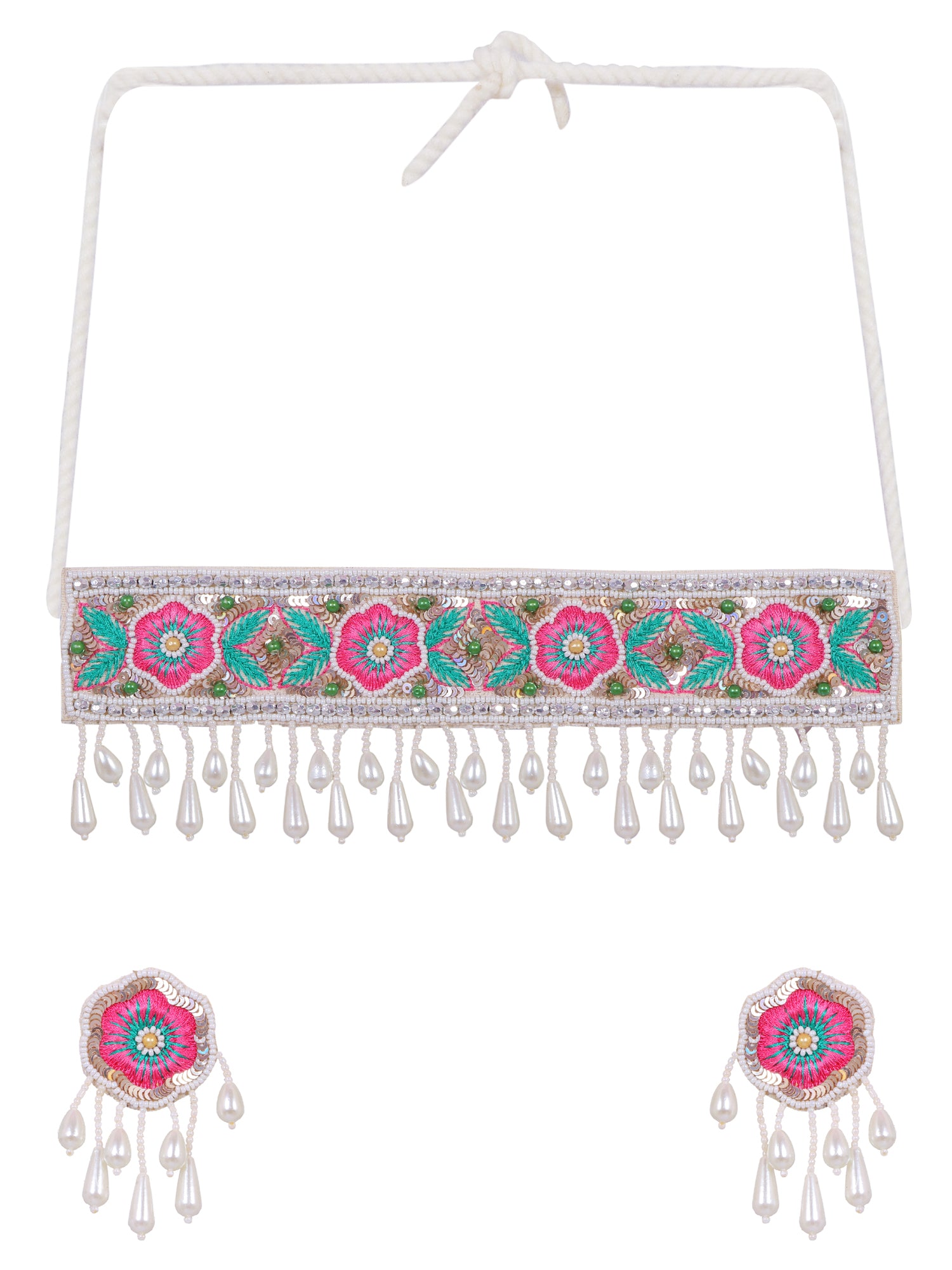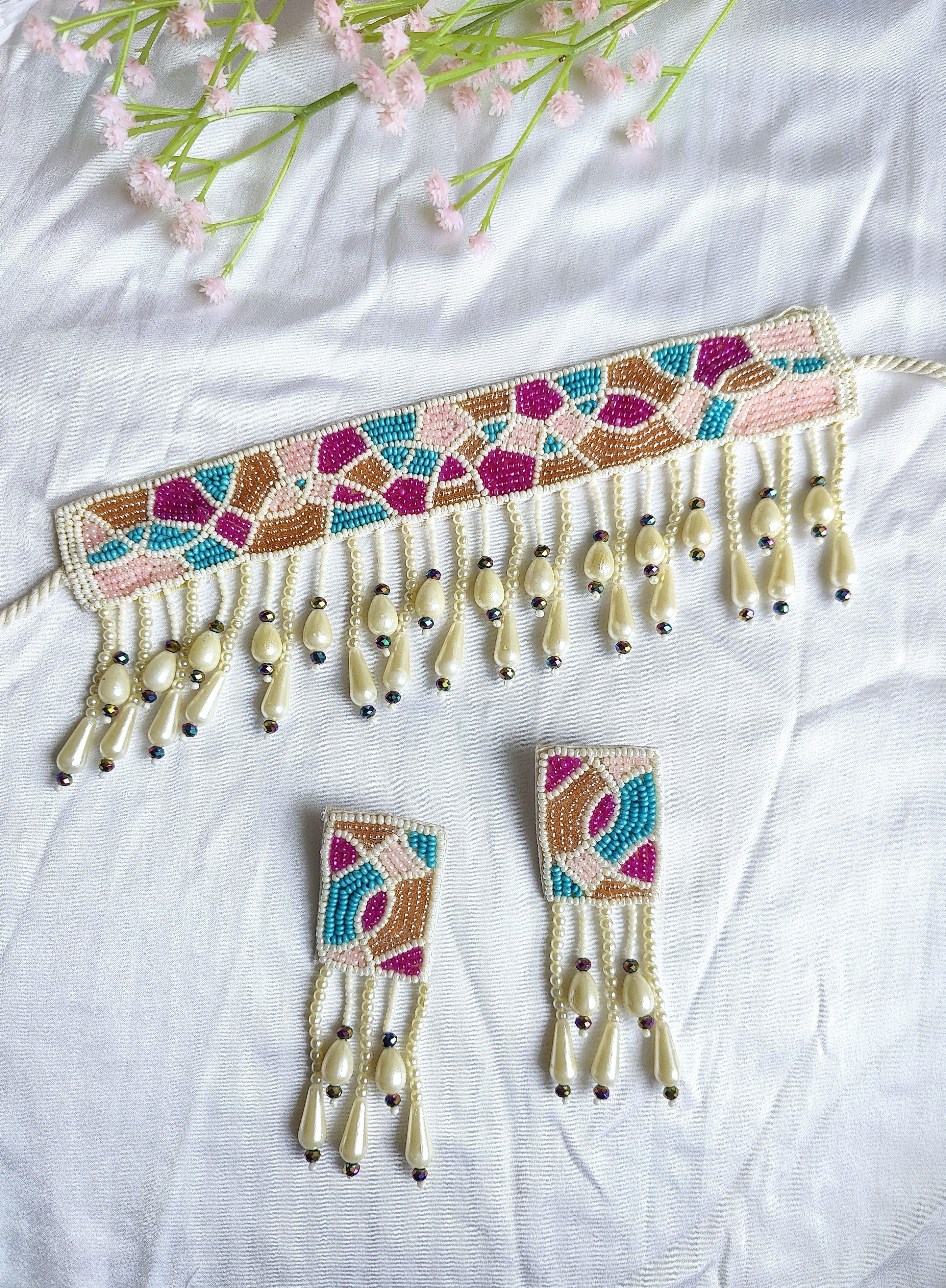 Floral Fiesta: Handcrafted Beaded Choker & Earrings Set for Fashion-forward Women
