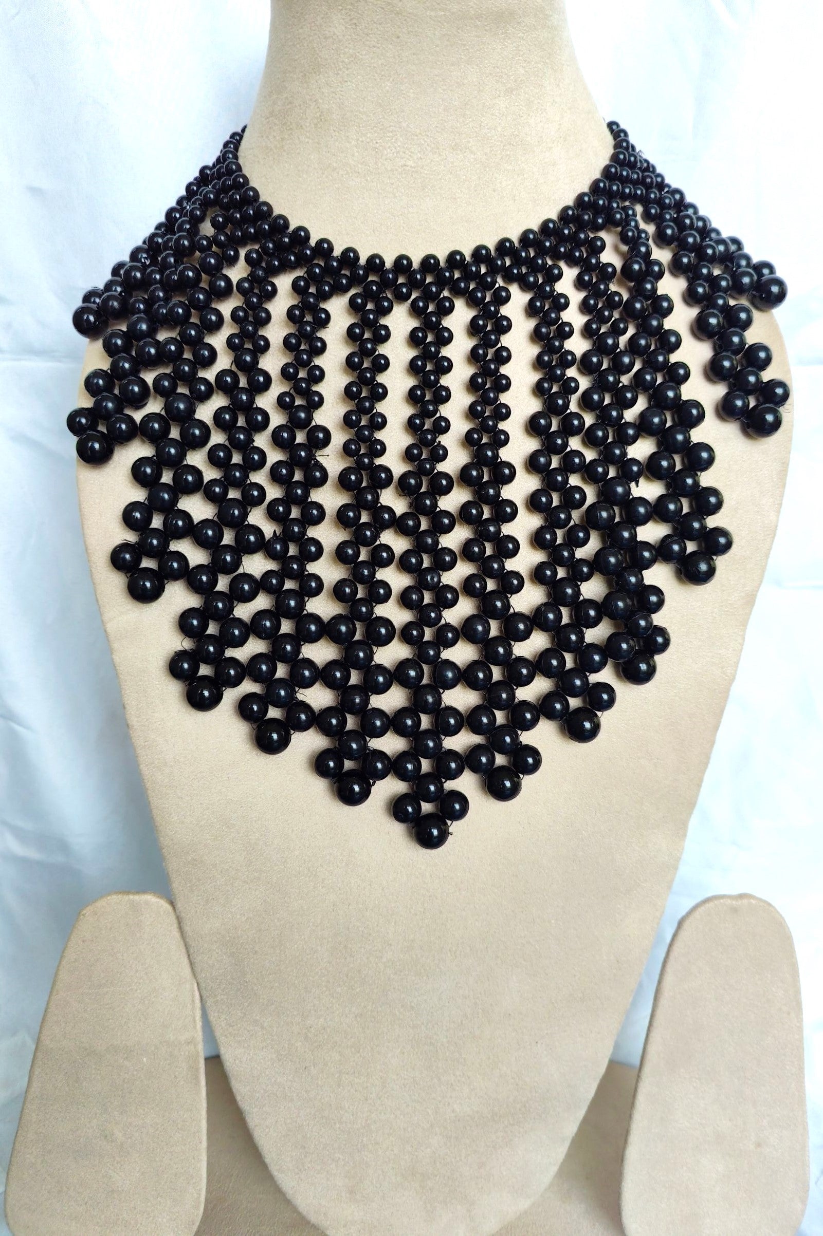 - Handmade Black Pearl Statement Choker - Artisanal Boho Beaded Necklace