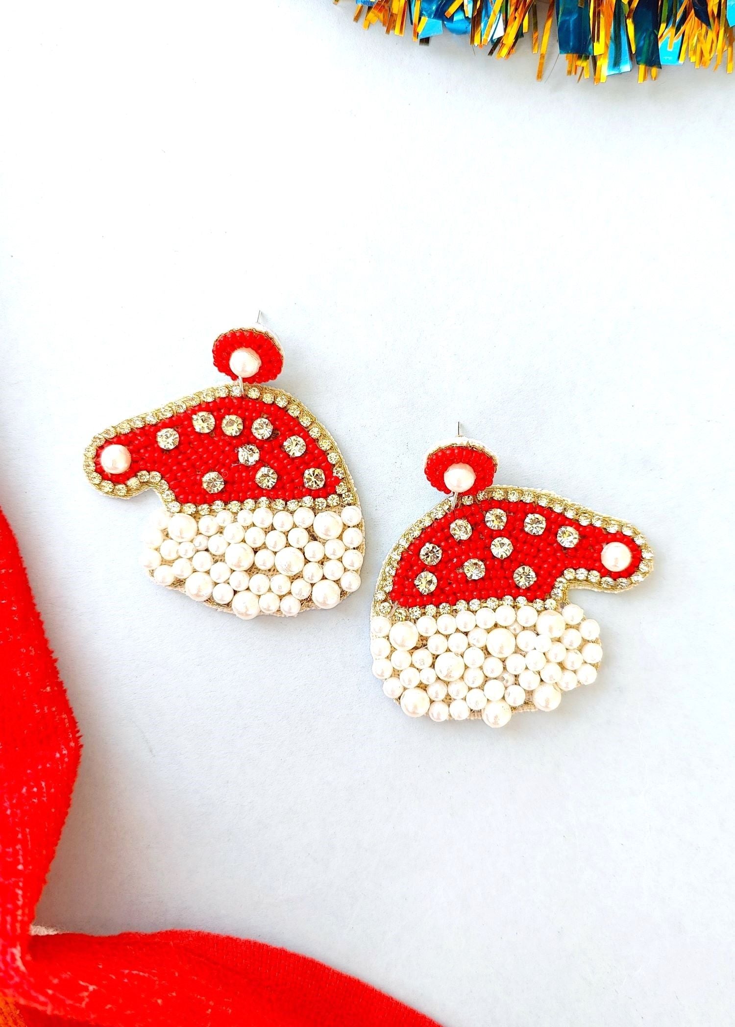 Chic Santa Cap Handmade Earrings for Women - Boho Beaded Christmas Statement Studs