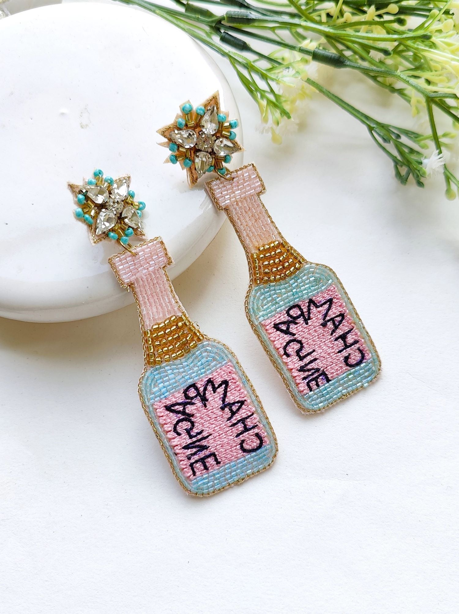 Festive Champagne Charm: Handcrafted White Eye Beaded Earrings for Women