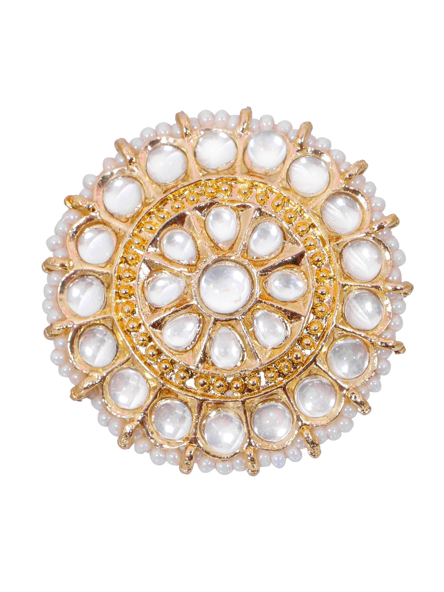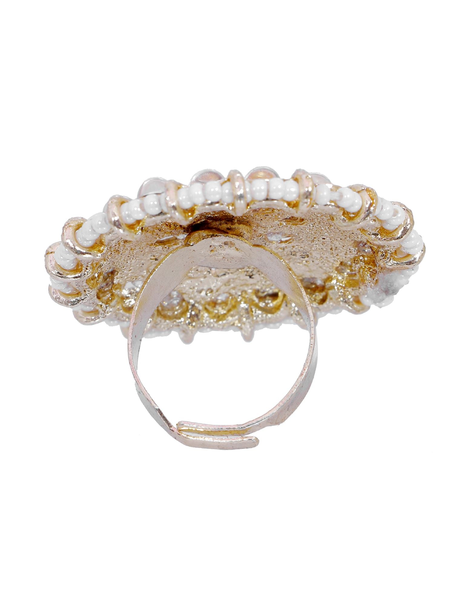 Women's antique gold plated round ring, adorned with kundan, perfect for party wear, adjustable size, from the traditional collection