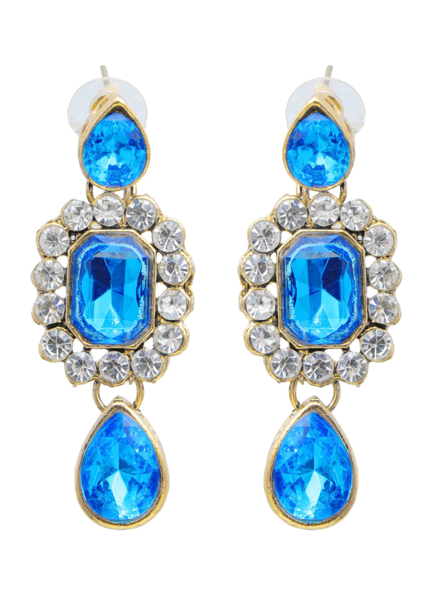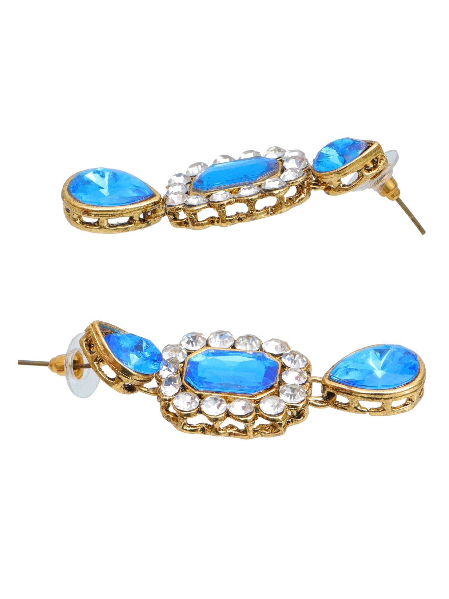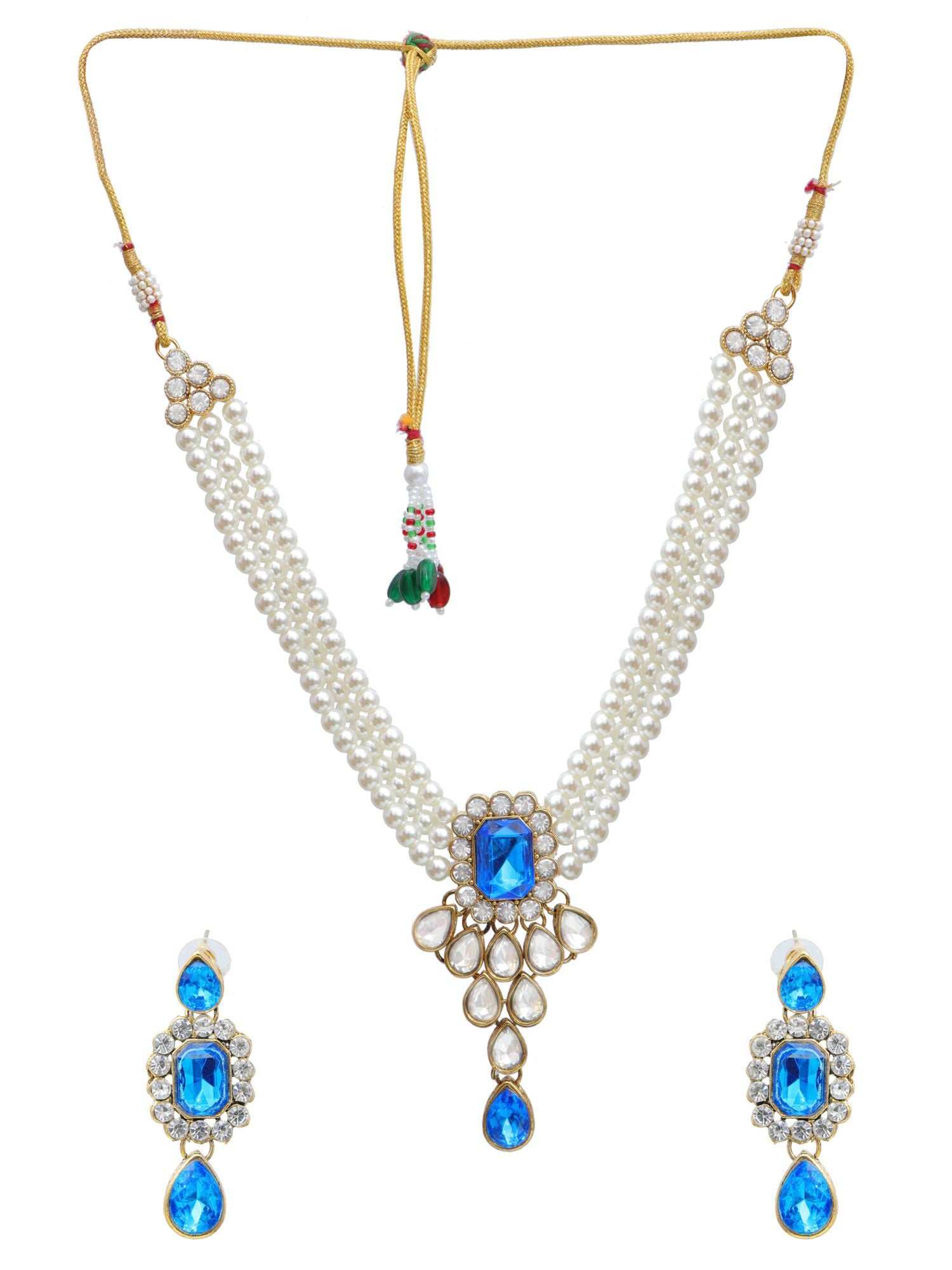- Aqua Blue Crystal Party Wear Pearl Necklace & Earrings Set for Women