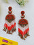 - Enchanting Heart-Shaped Red-White Handmade Beaded Tassel Earrings for Vibrant Occasions