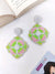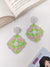 - Vibrant Pink-Green Handmade Beaded Flower Earrings for Festive Celebrations