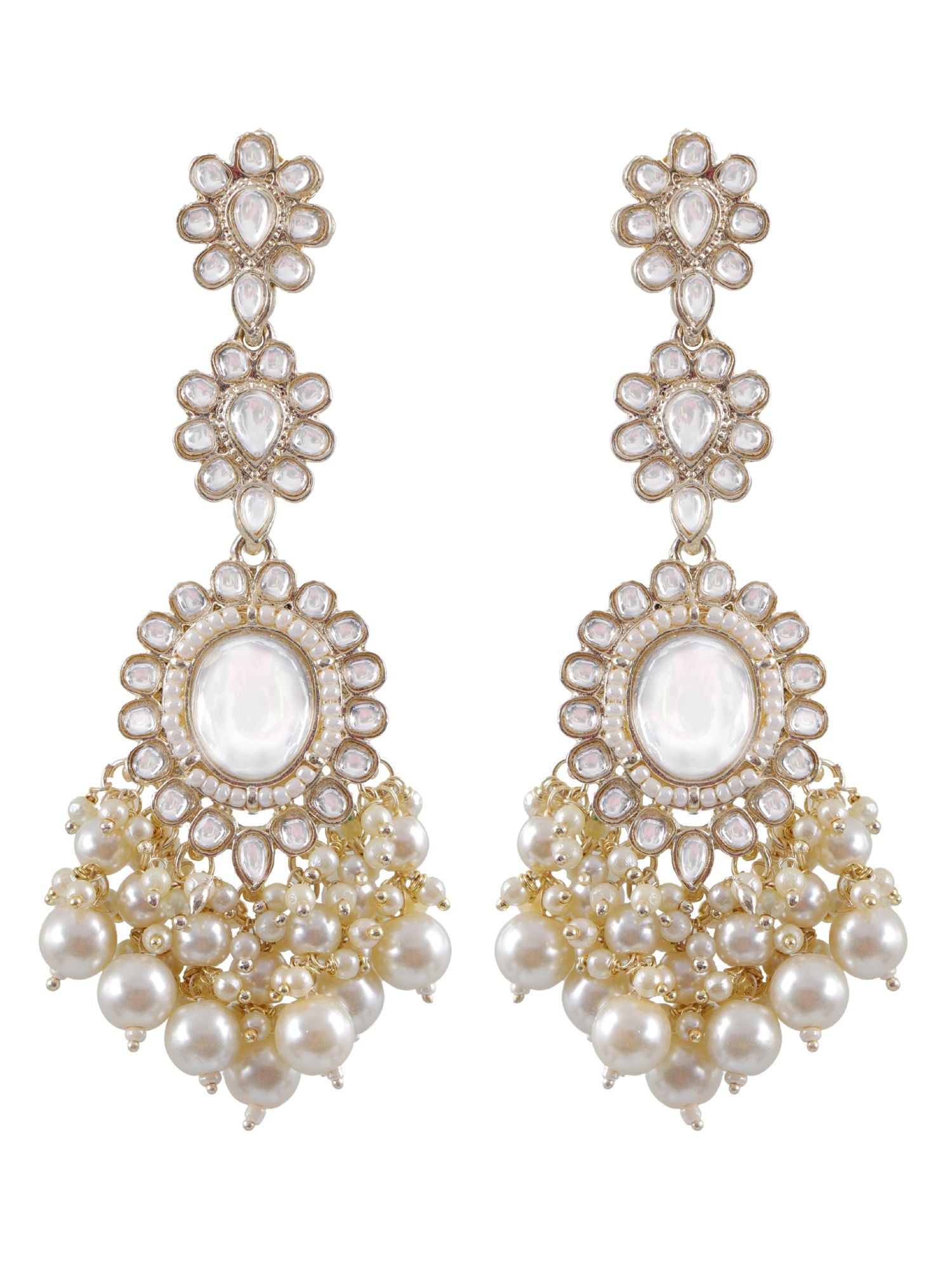 Traditional White Pearl Kundan Dangler Earrings for Wedding Party