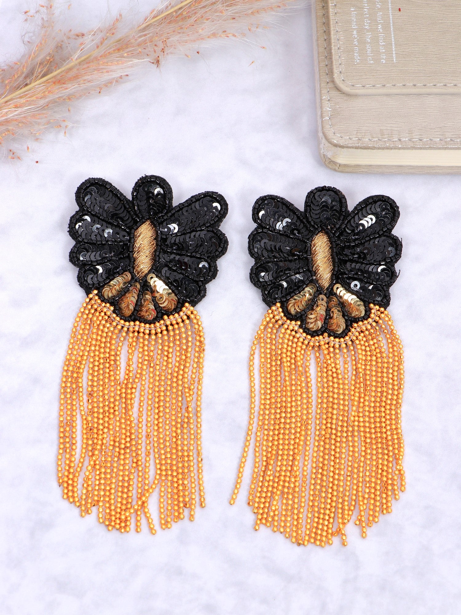 Unique & Stylish Butterfly-Shaped Black & Orange Earrings for Women & Girls