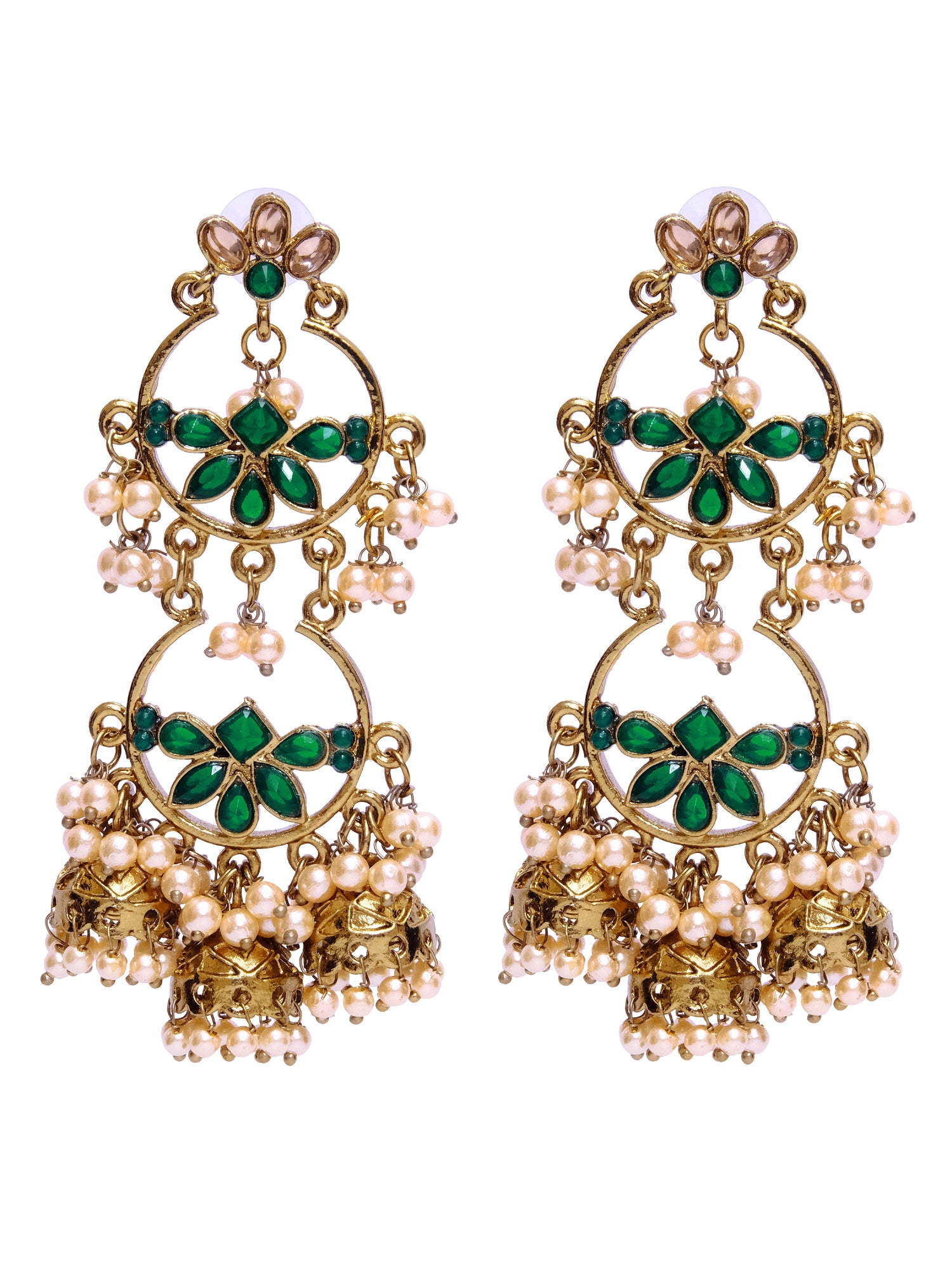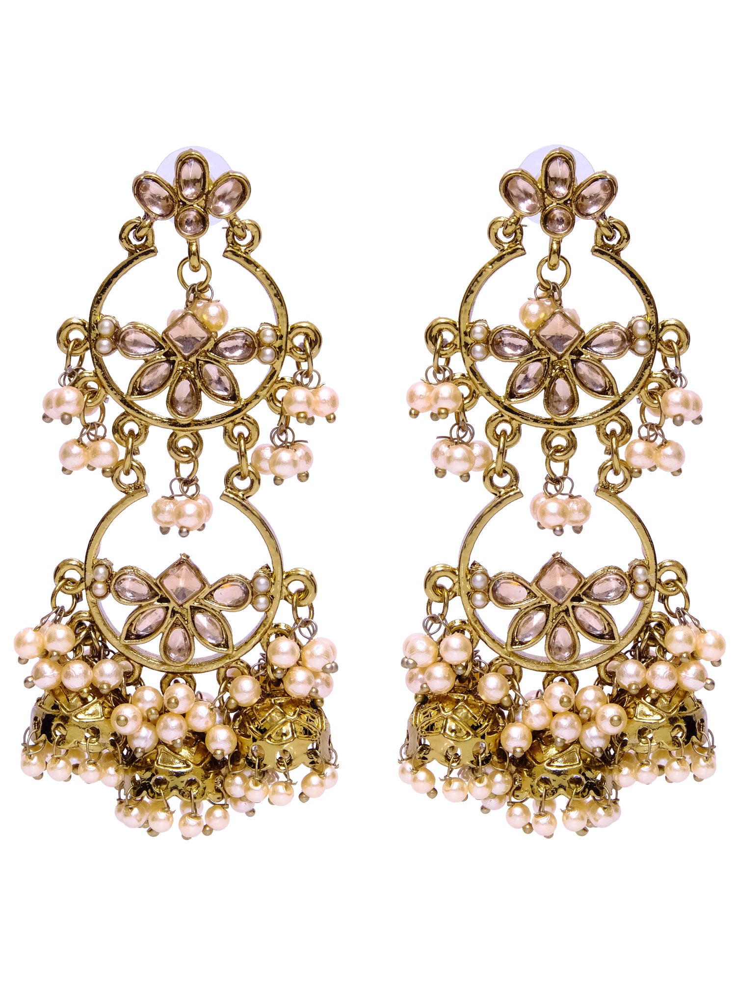 - Meesha Danglers- Antique Gold Plated Dangling Jhumki Earrings for Women