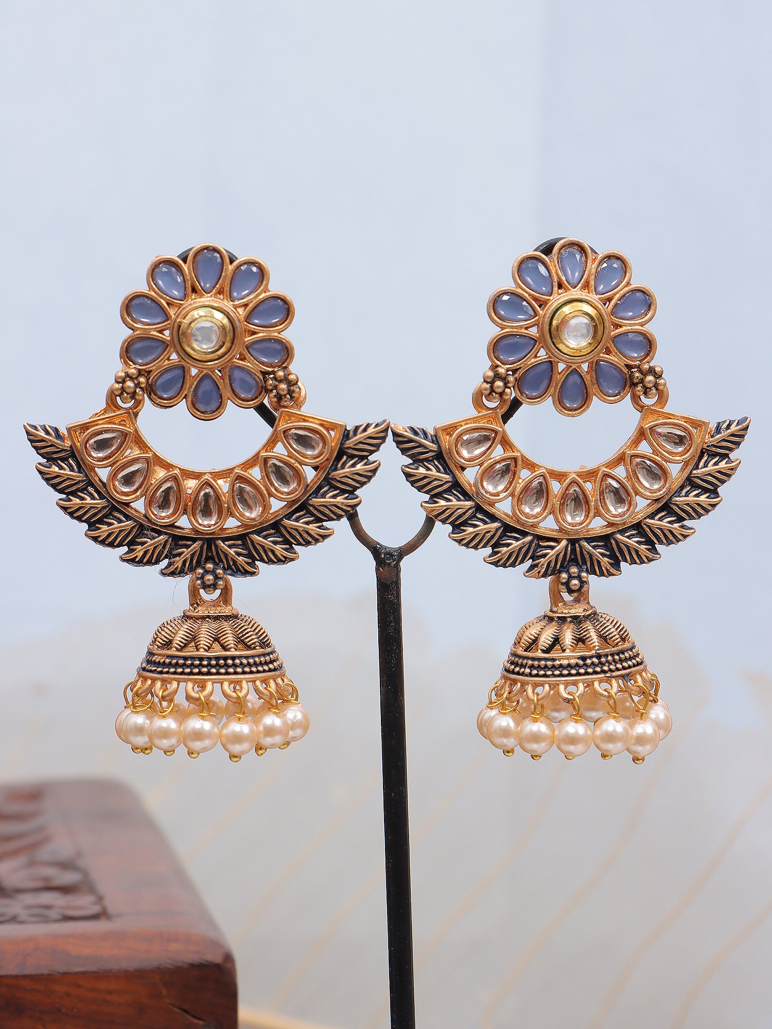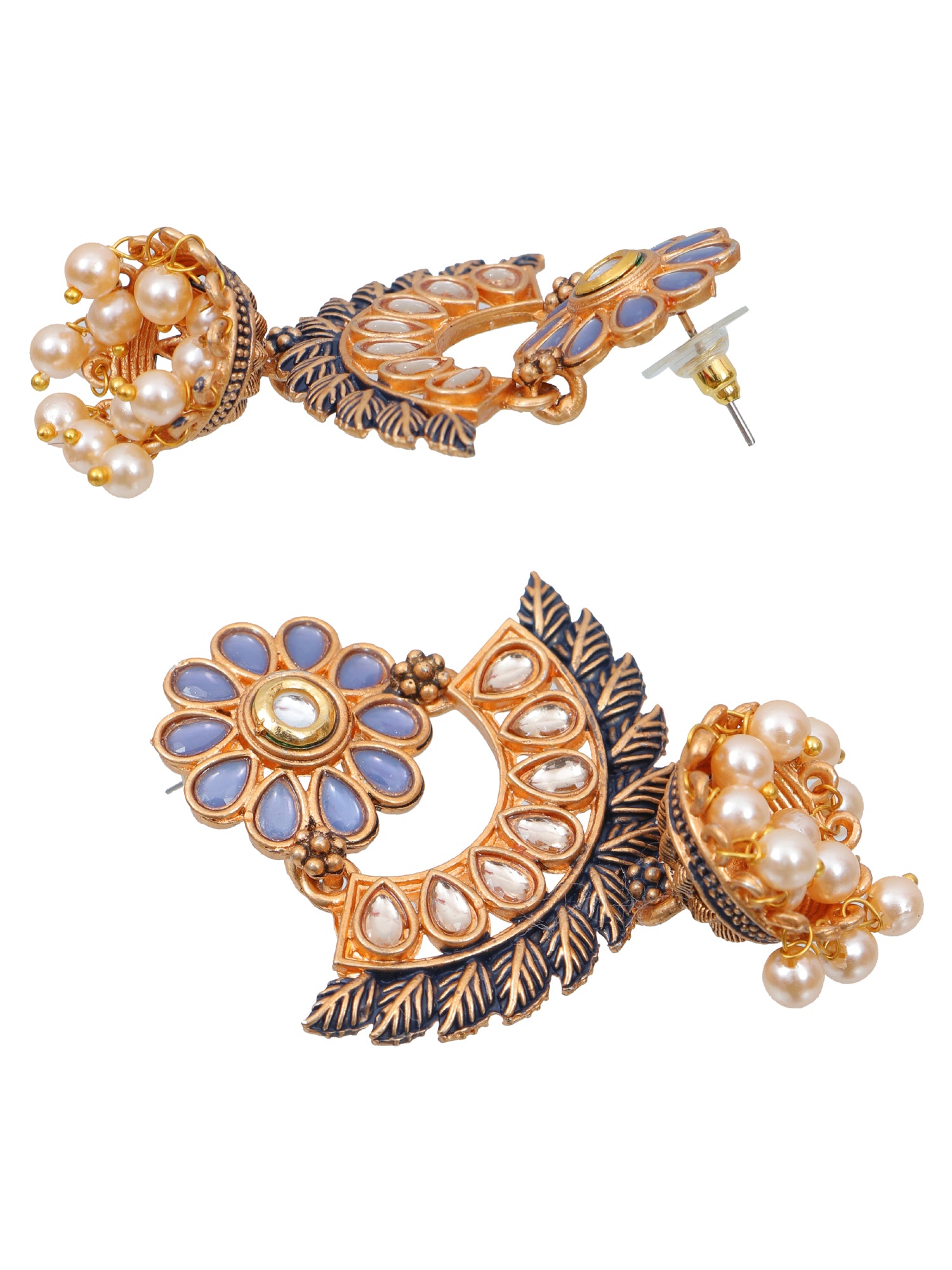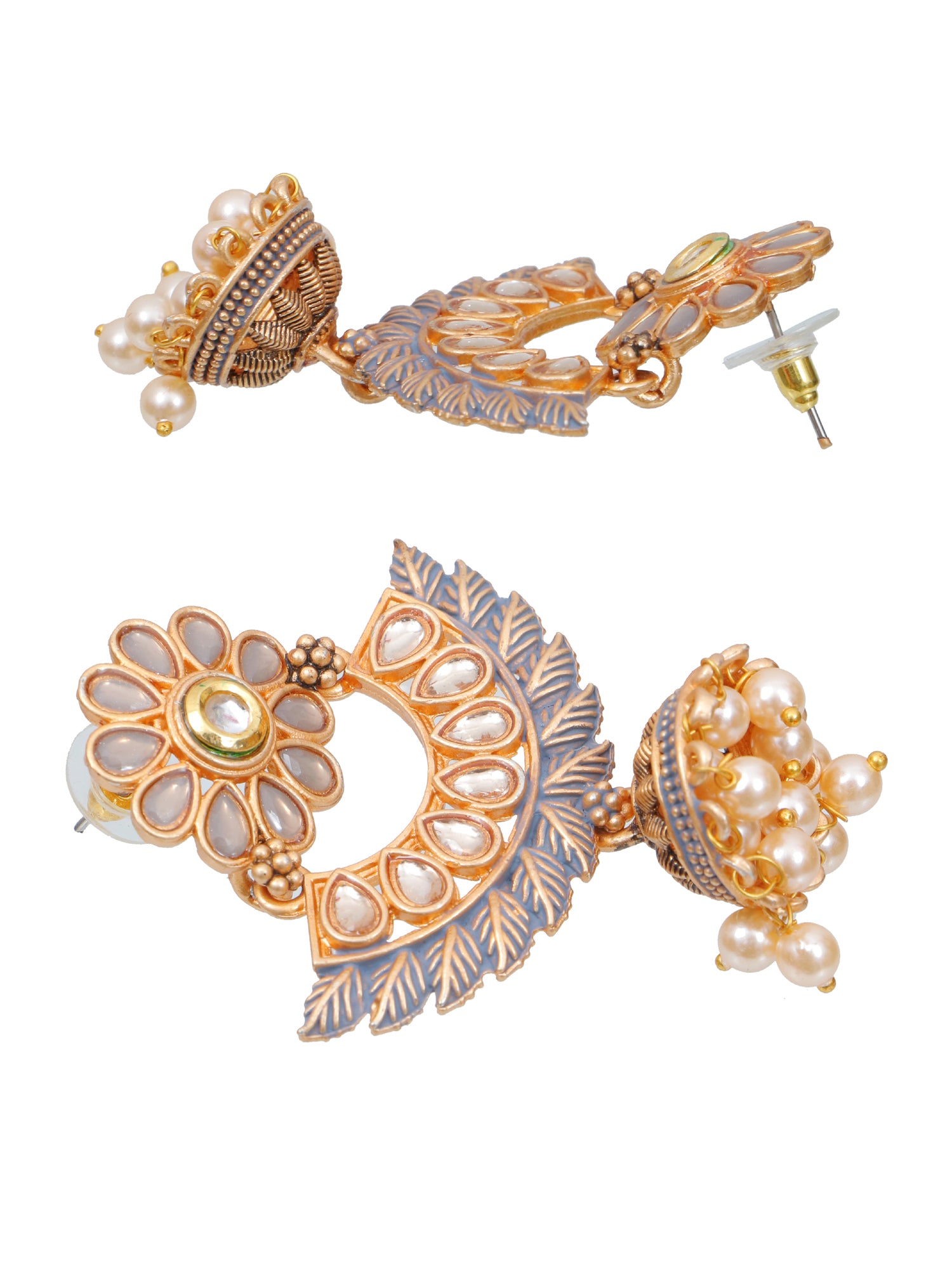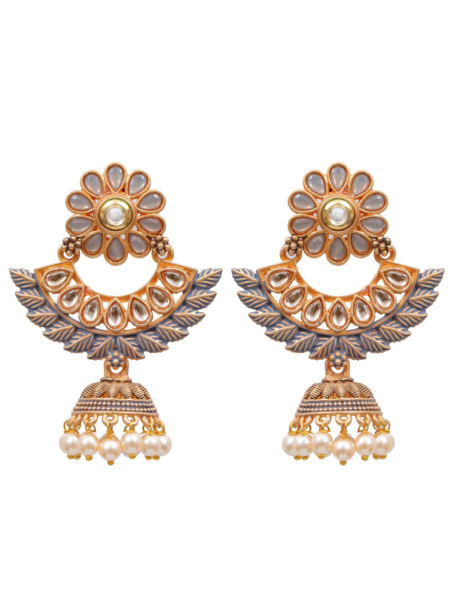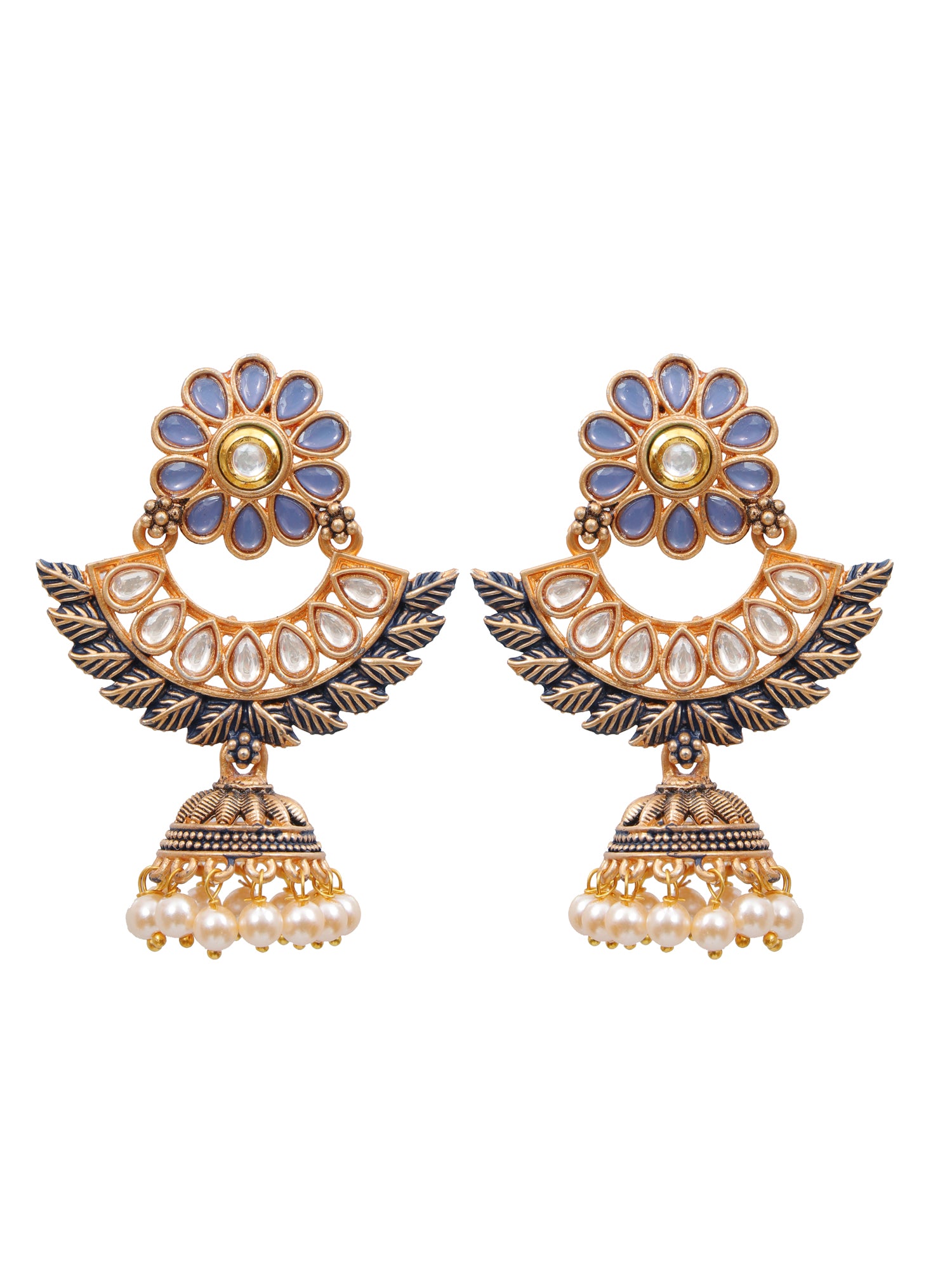 Crunchy Fashion Gold-Tone Leaf Style Minakari Jhumka Earrings