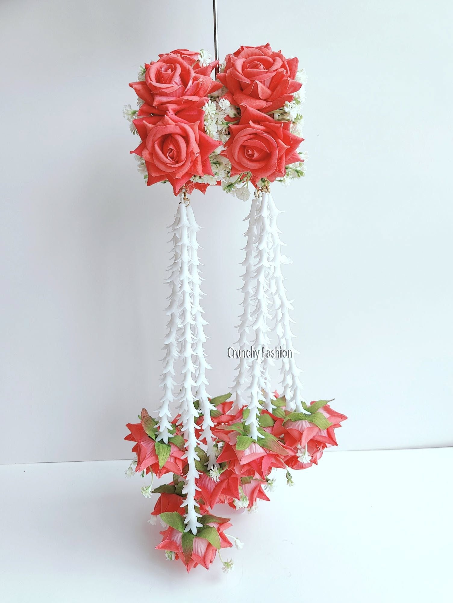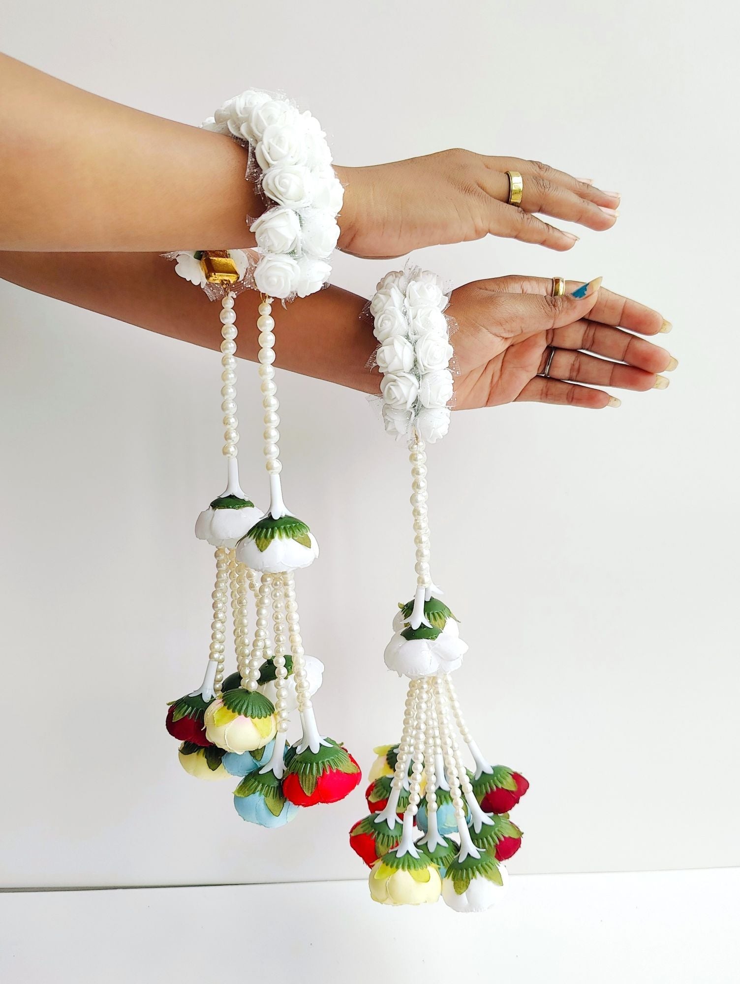 Rose Floral Bridal Kalire - Red & White Flower Kaleeras for bride