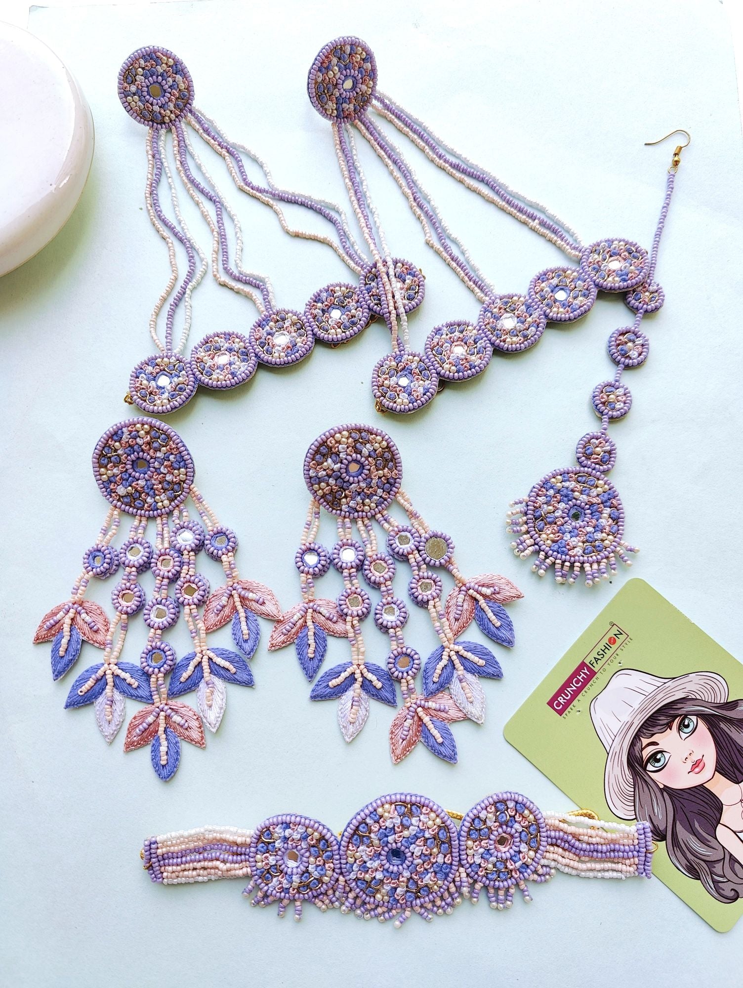 - Handmade Beaded Floral haldi-Mehndi Jewellery Set for Brides, Bridemaids