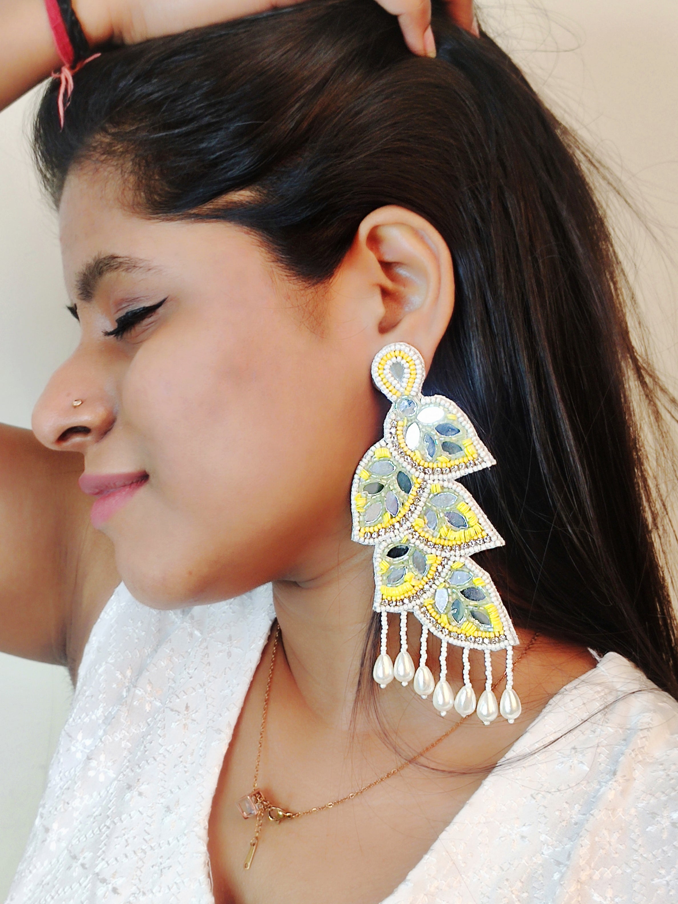 Looking for a bold and unique accessory? Check out our Leafy Affair Earrings! These handmade beaded dangler earrings feature vibrant green and yellow colors that will add a pop of color to any outfit. Perfect for spring and summer, these earrings are lightweight and comfortable to wear all day. Whether you're dressing up for a special occasion or adding some flair to your everyday look, these earrings are sure to turn heads. Plus, they make a great gift for the fashion-forward woman in your life. Get your pair of Leafy Affair Earrings today and elevate your style game!