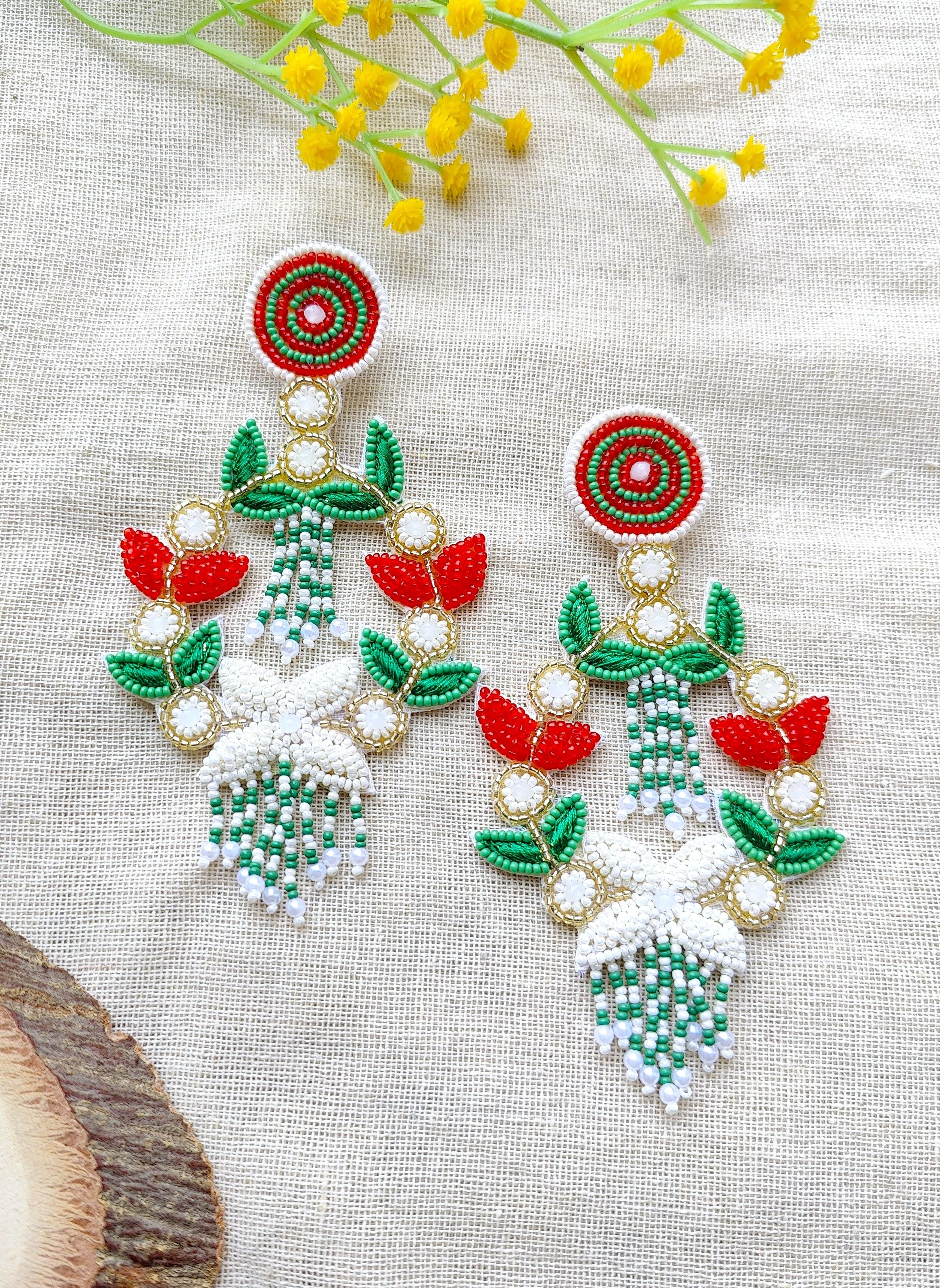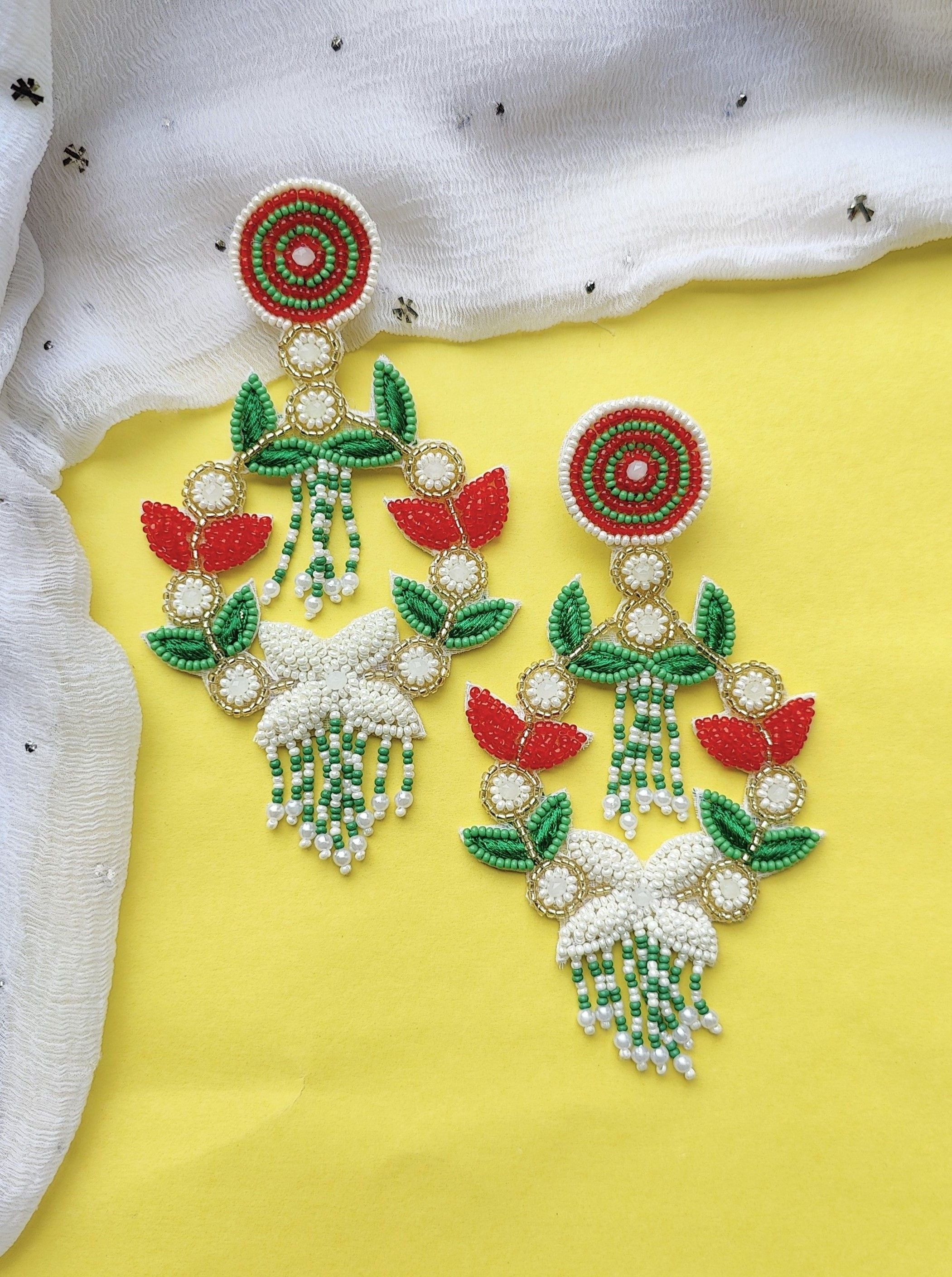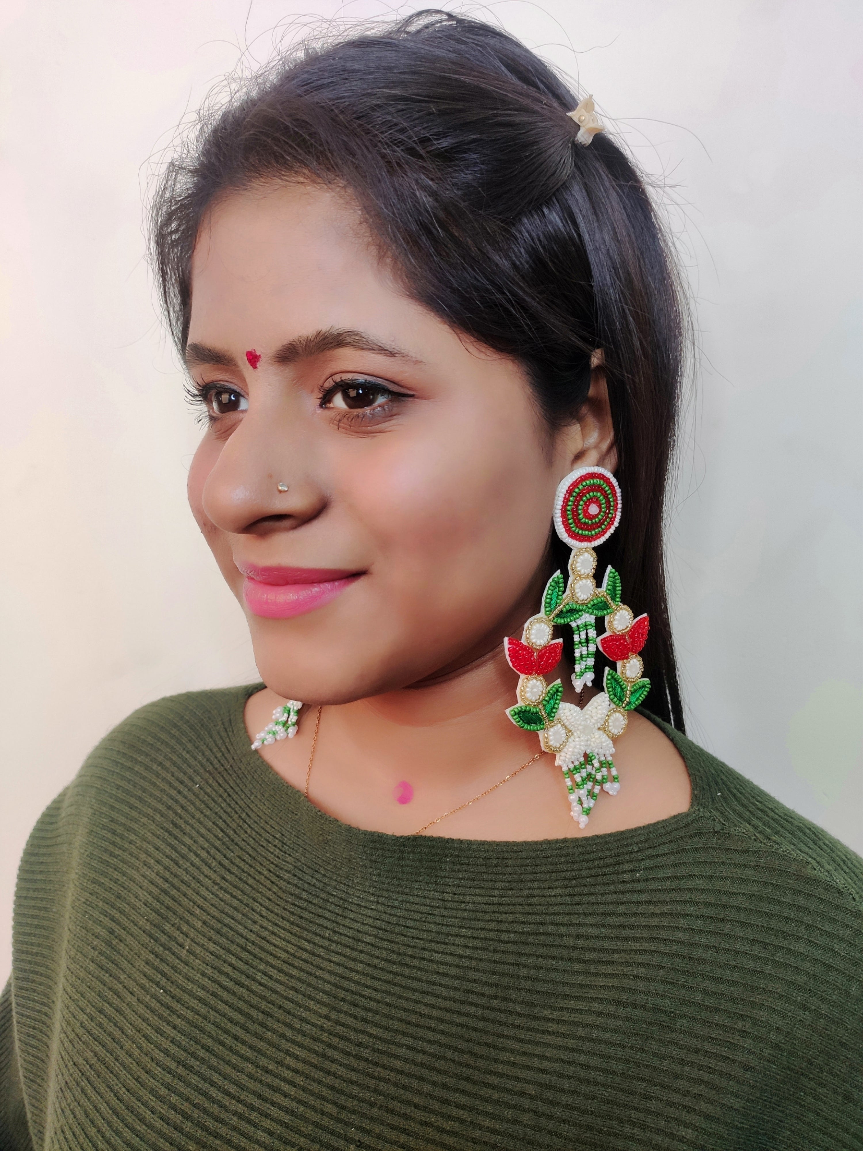 - Red-Green Handmade Multicolor Beaded Party Earrings for Women & Girls