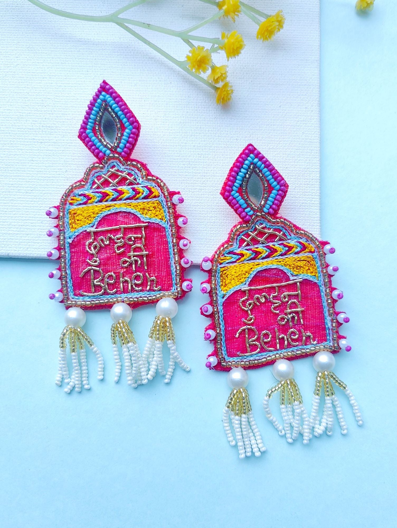 - Bride's Sister Blossom - Handmade Beaded Earrings for Haldi Mehndi Celebrations