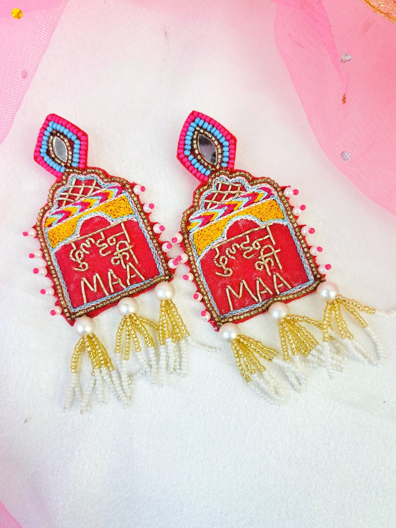Dulhan Ki Maami: Handmade Vibrant Pink Beaded Earrings for Wedding Celebrations