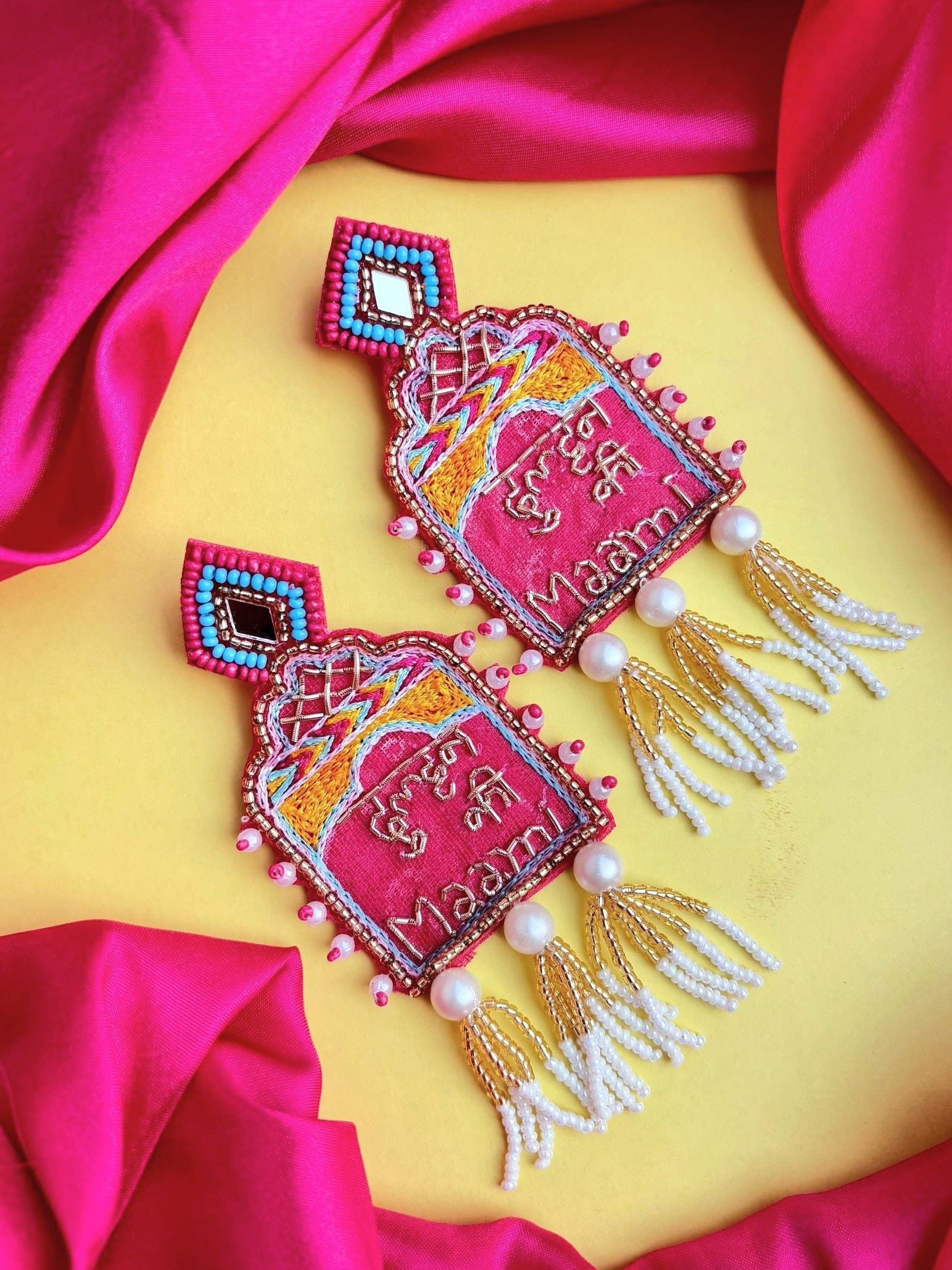 - Dulhan Ki Maami: Handmade Vibrant Pink Beaded Earrings for Wedding Celebrations