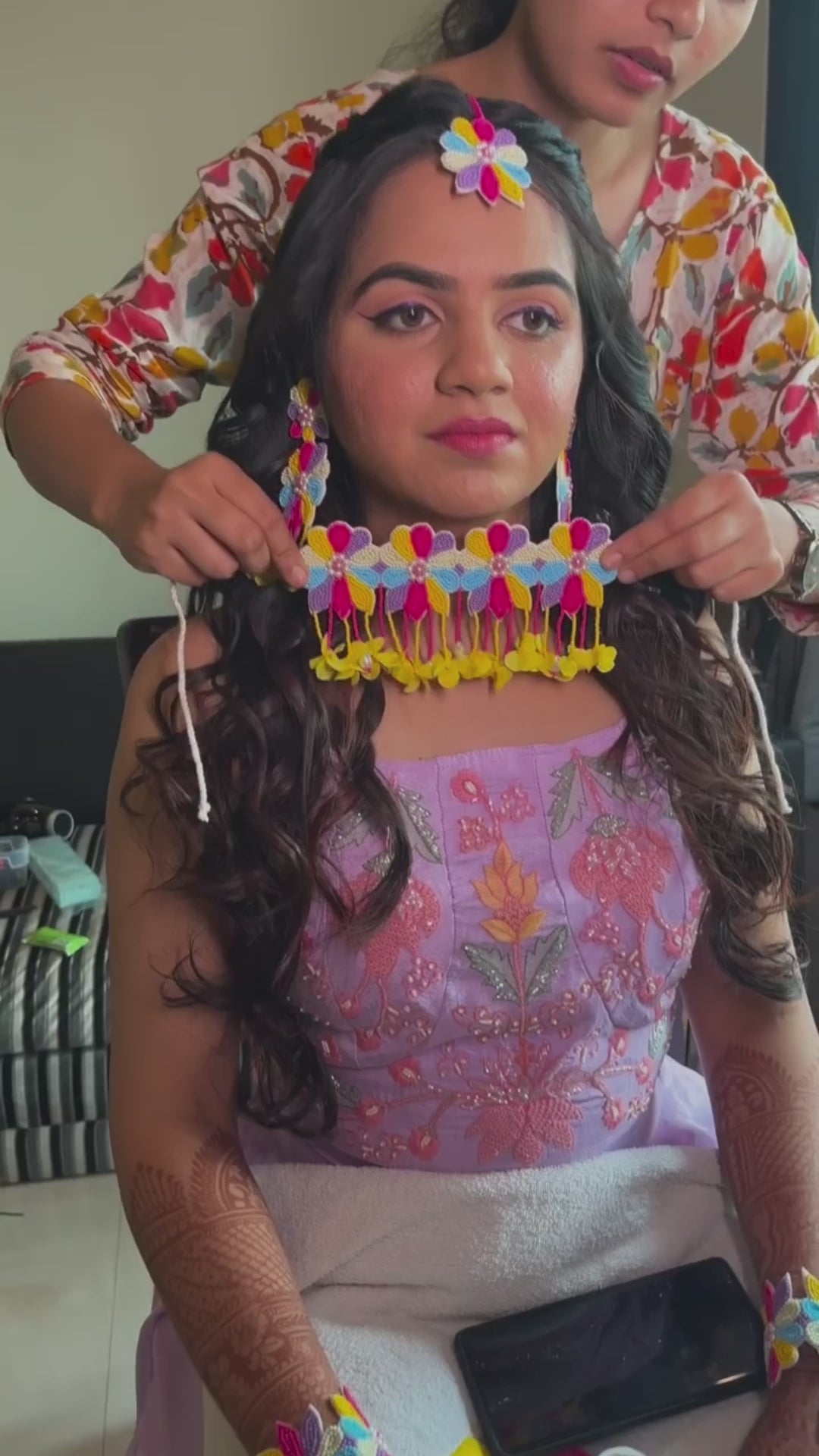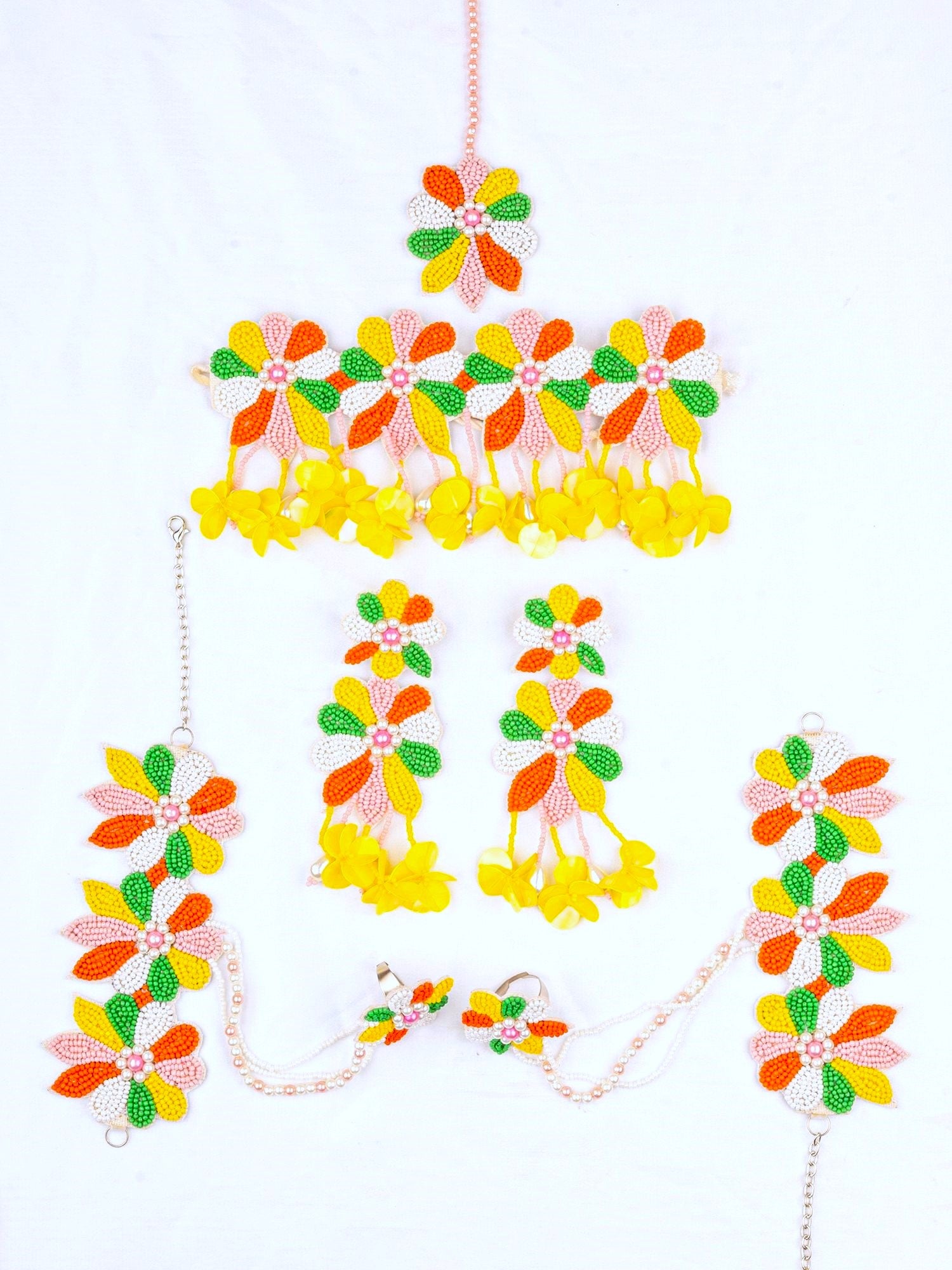 Handcrafted Multicolor Beaded Floral Set for Bridal Haldi