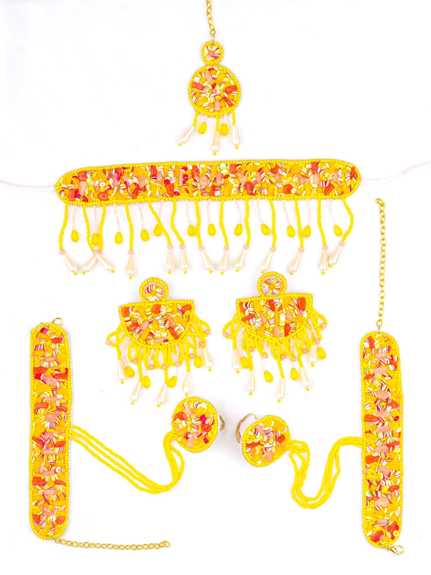 Beaded Blossom Multicolor Haldi Jewellery Set for Women