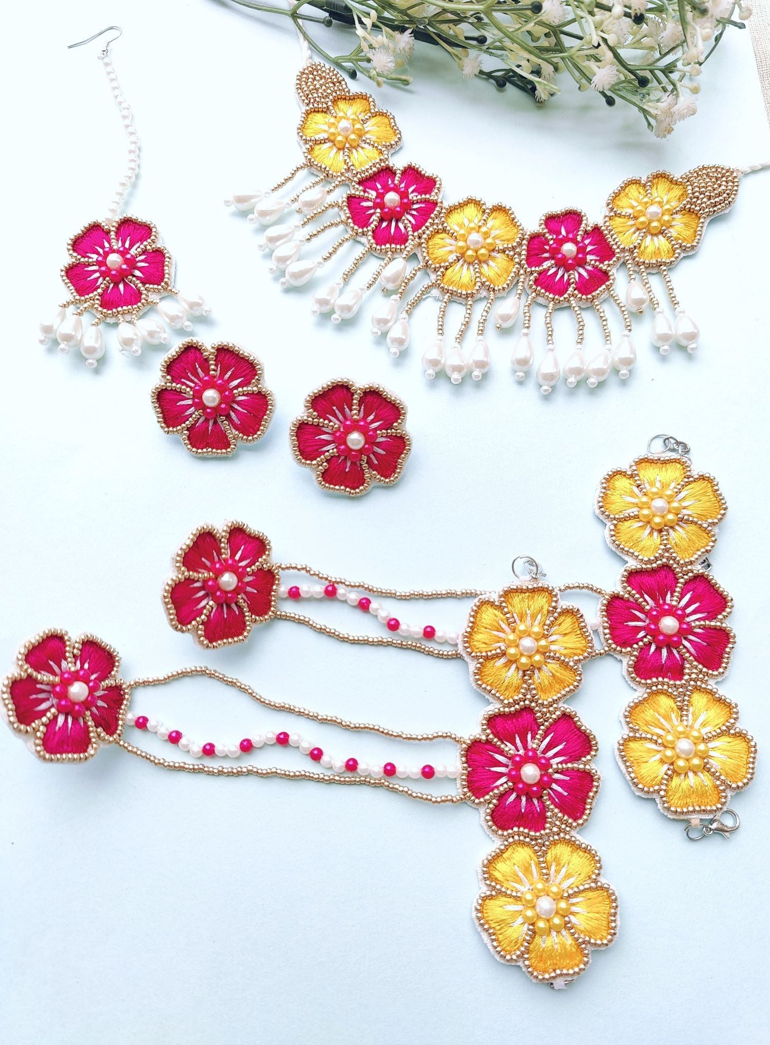 Blossom 2.0: Pink Floral Haldi Mehndi Jewellery Set for Brides