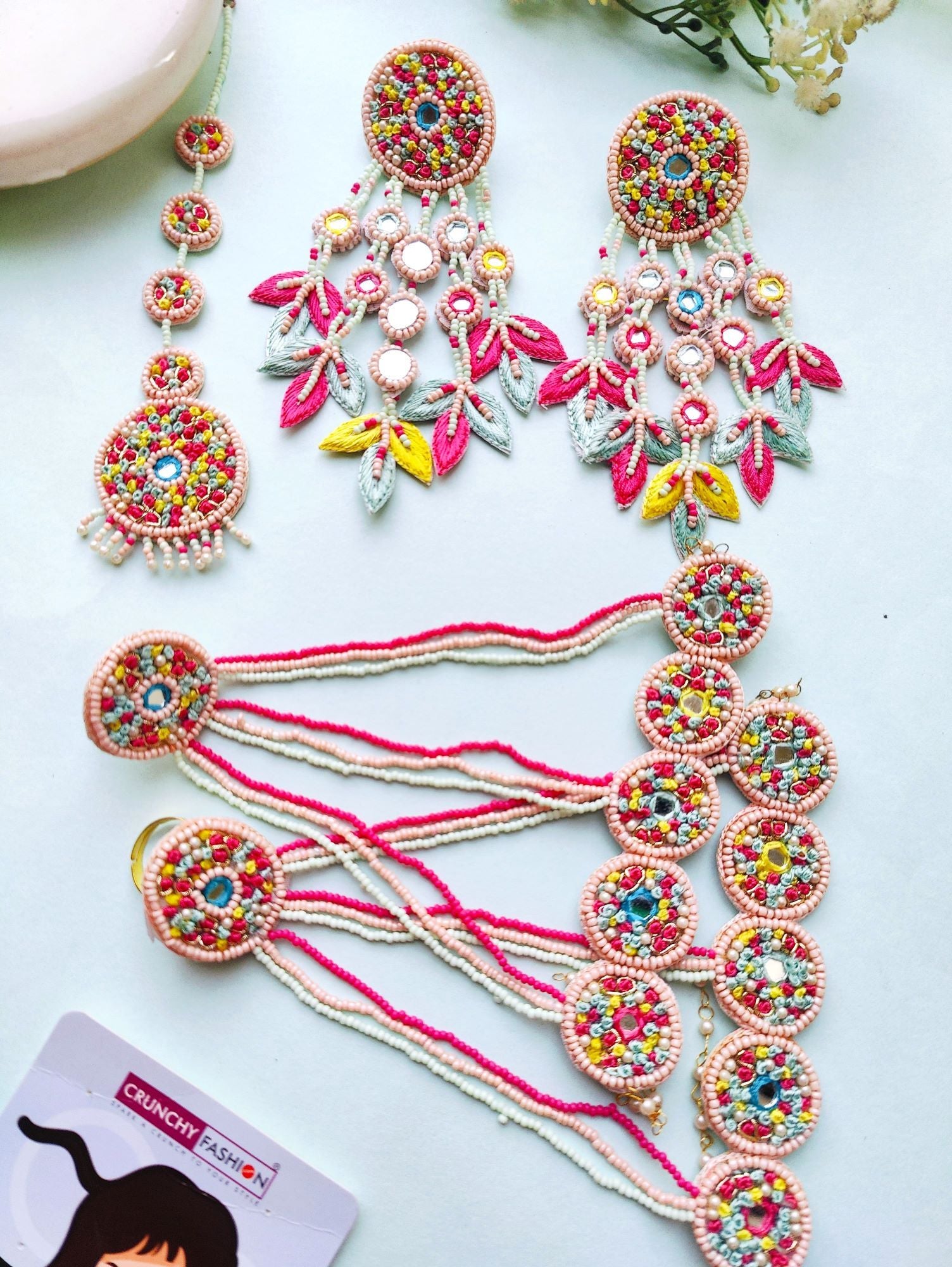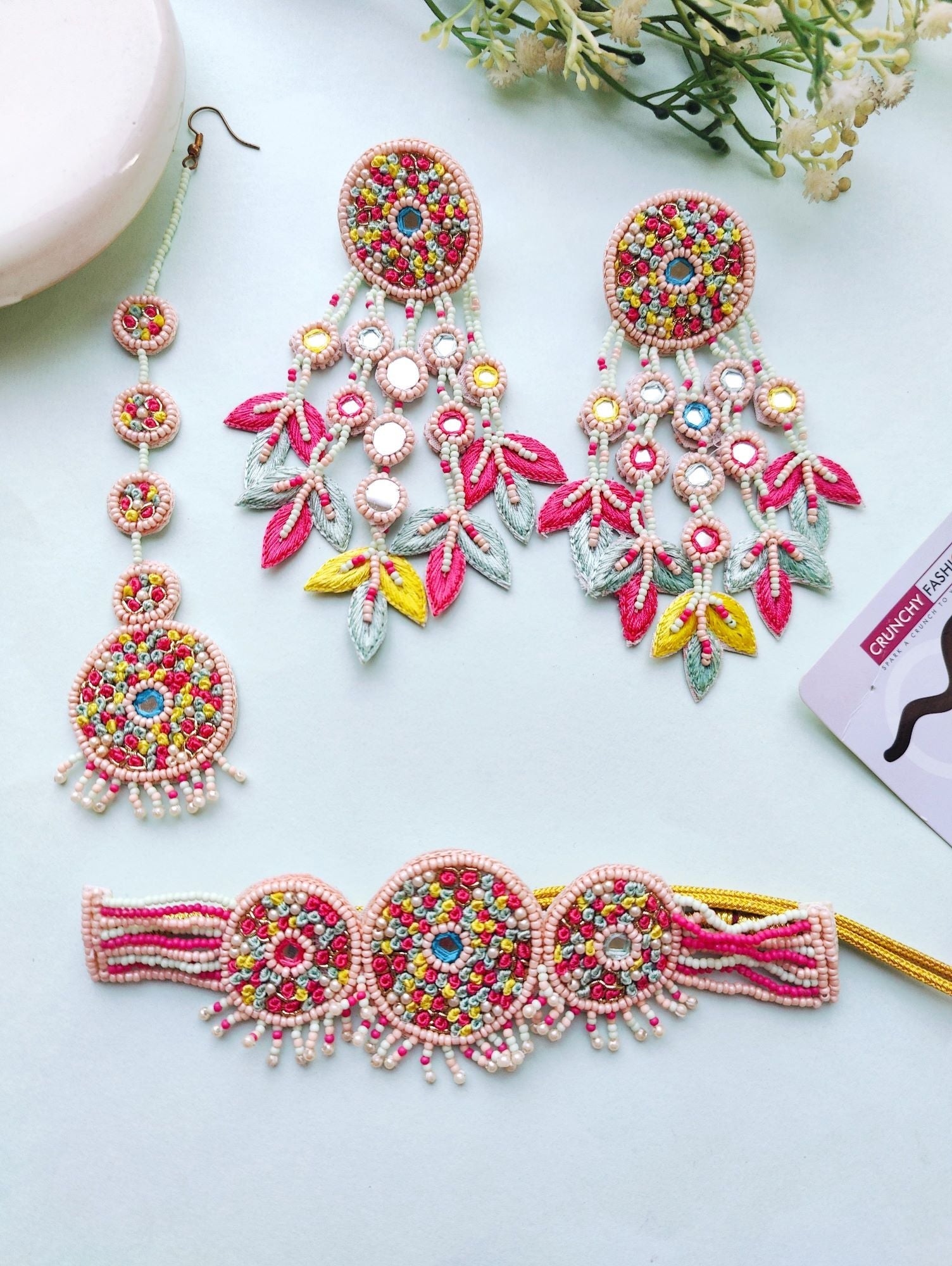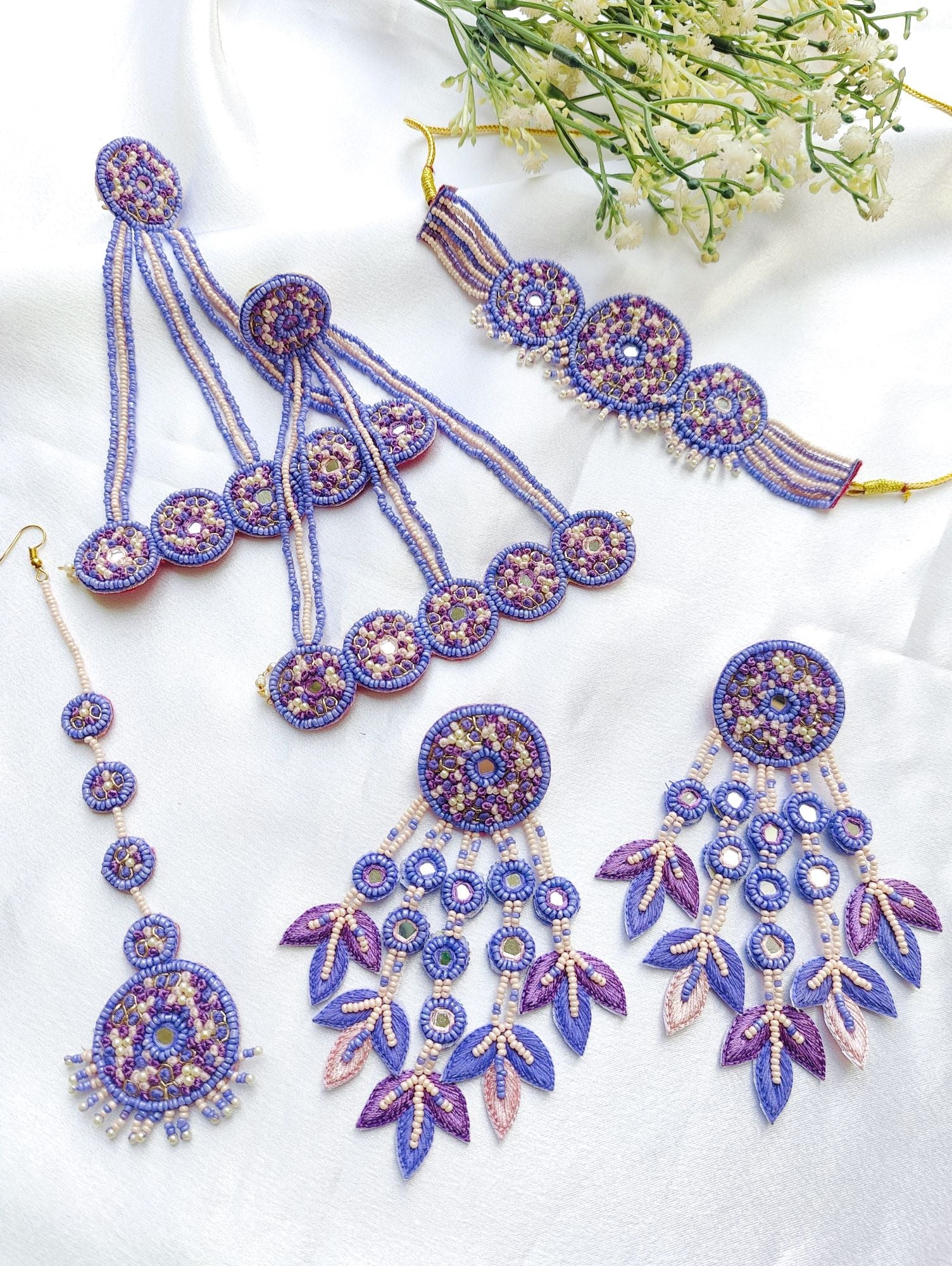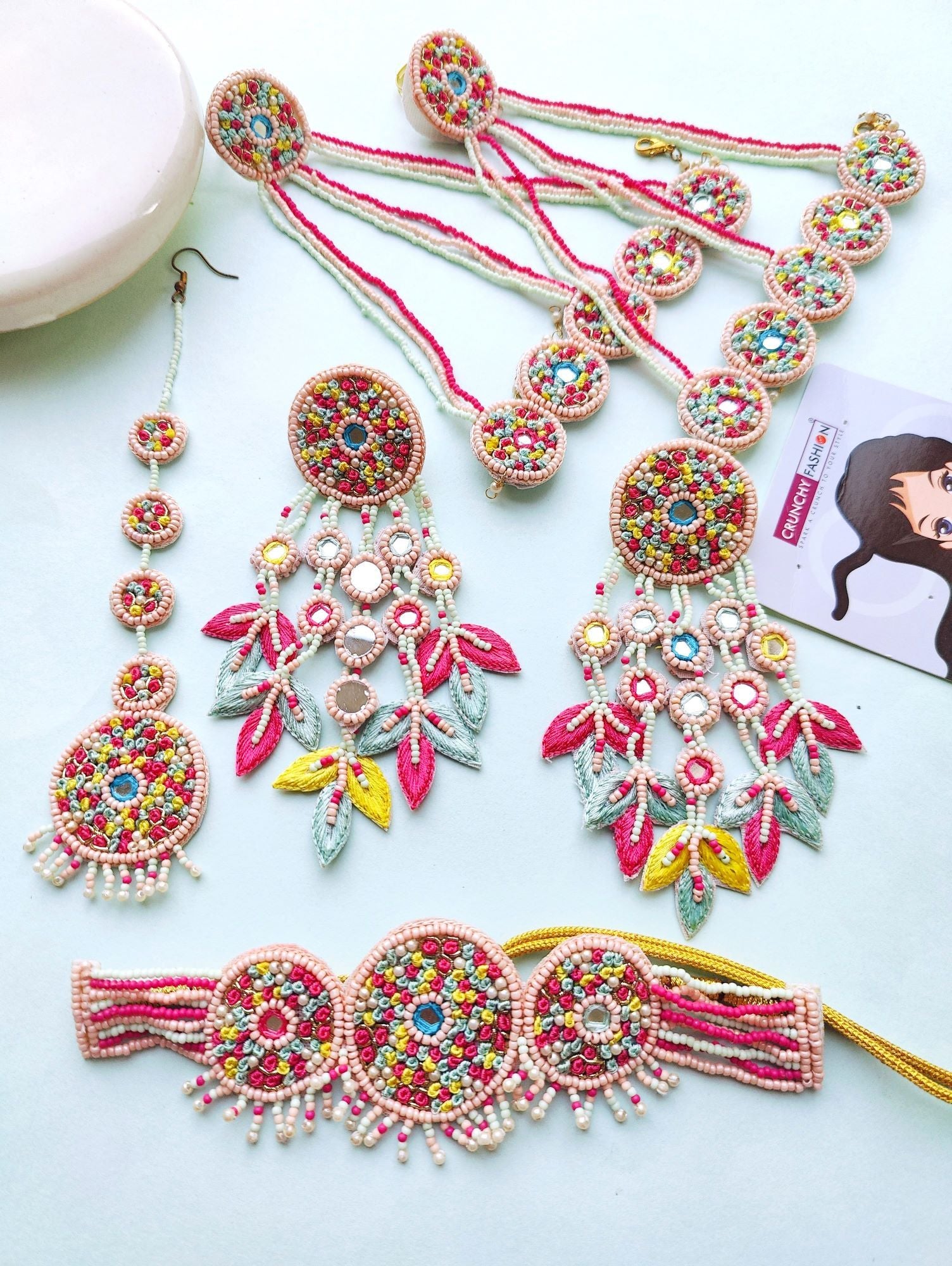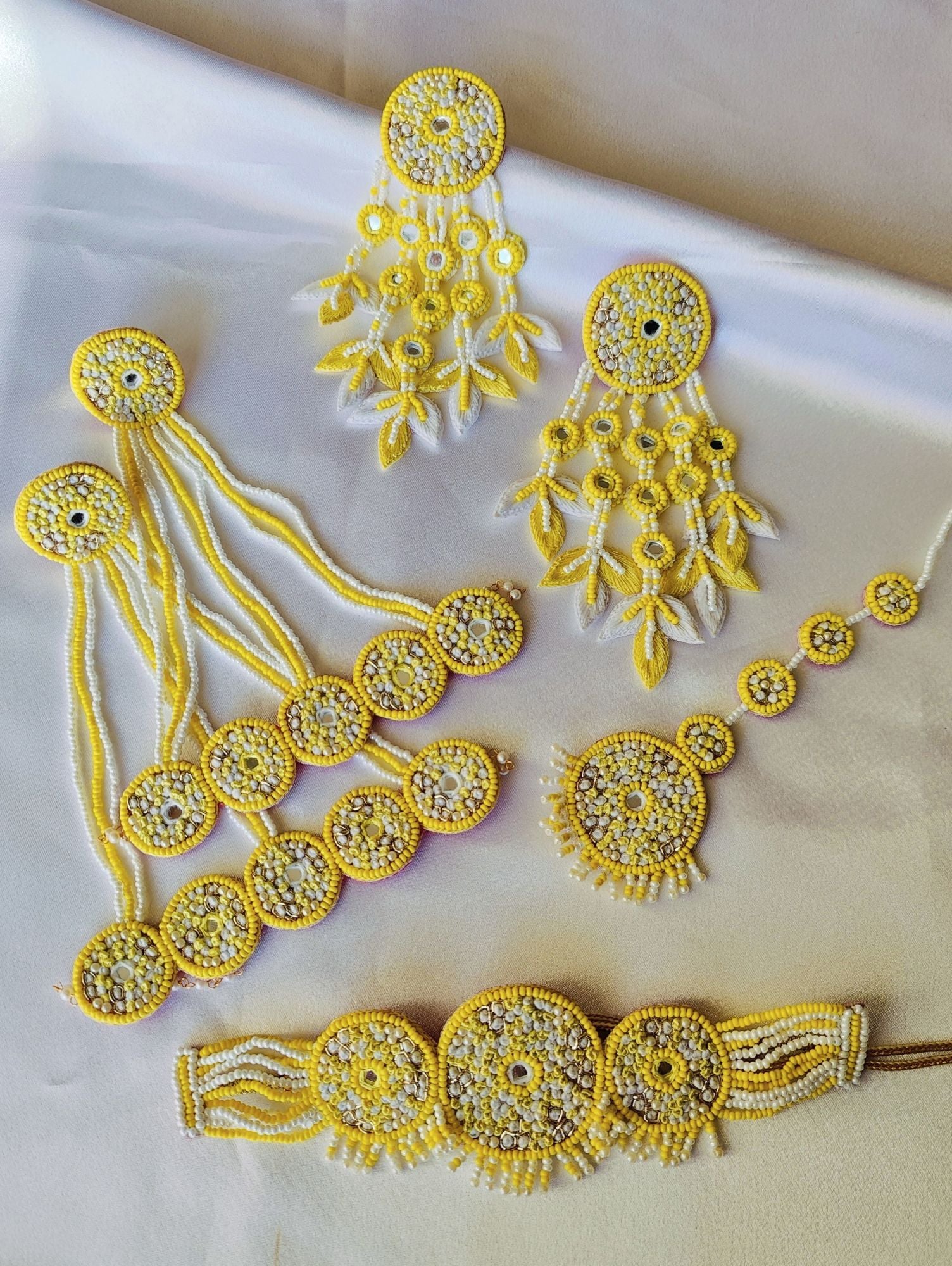 - Handmade Beaded Floral haldi-Mehndi Jewellery Set for Brides, Bridemaids
