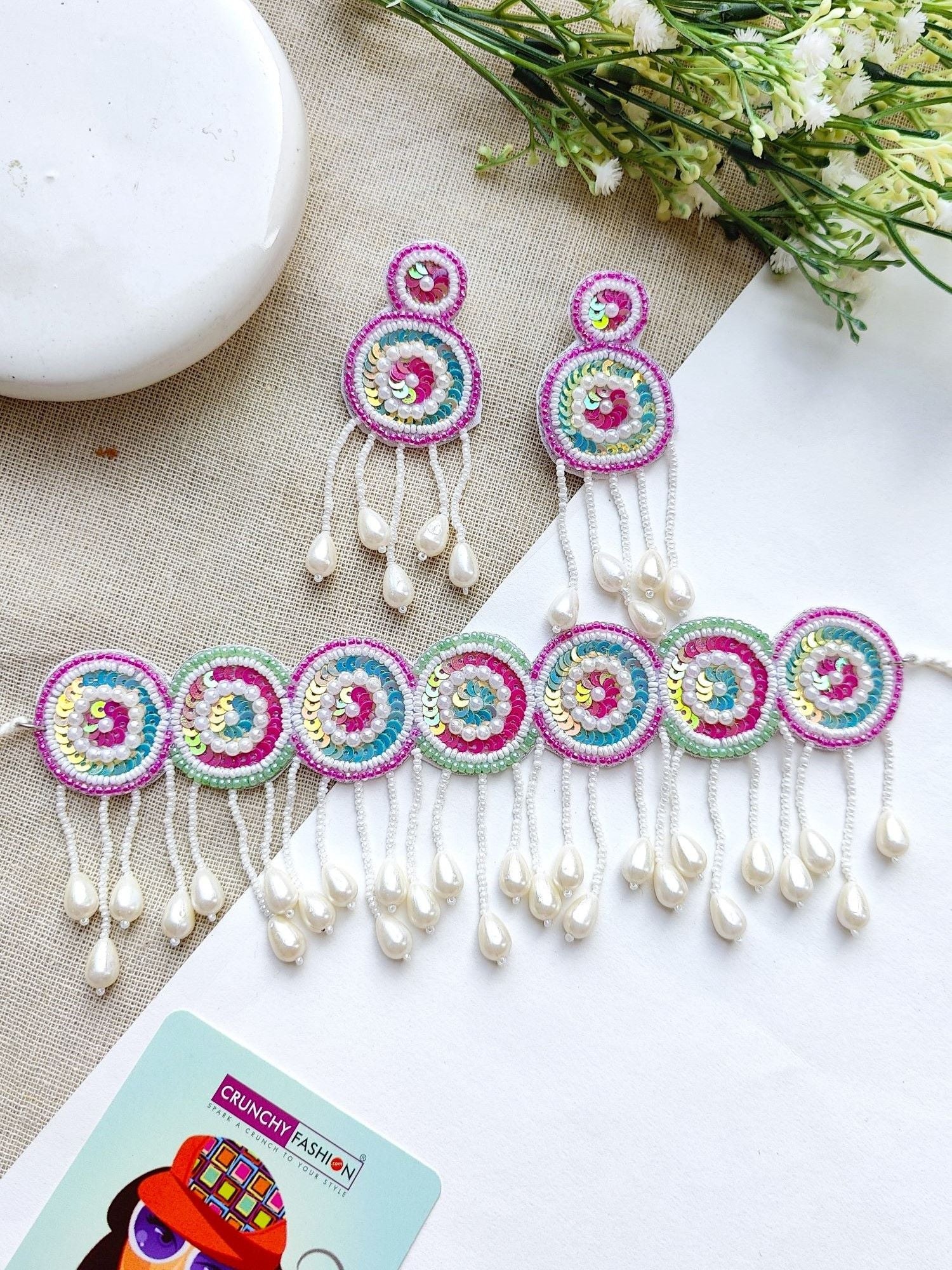 - Elegant Handcrafted Purple & Green Beaded Choker Set: Perfect Haldi-Mehndi Accessory
