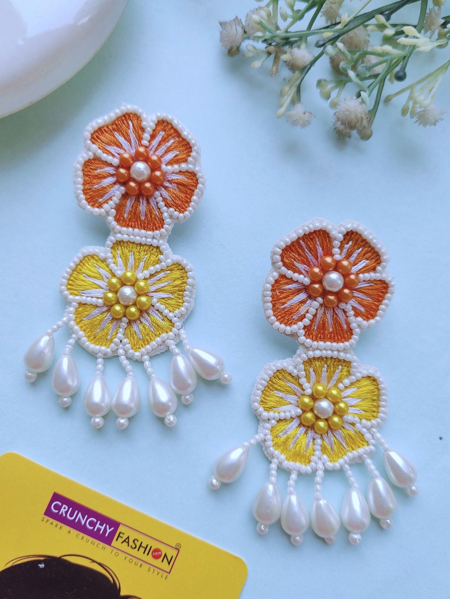 - Yellow-Orange Blossom Beaded Earrings for Women, Girls