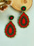 Red-Green Beaded Party Wear Earrings for Women