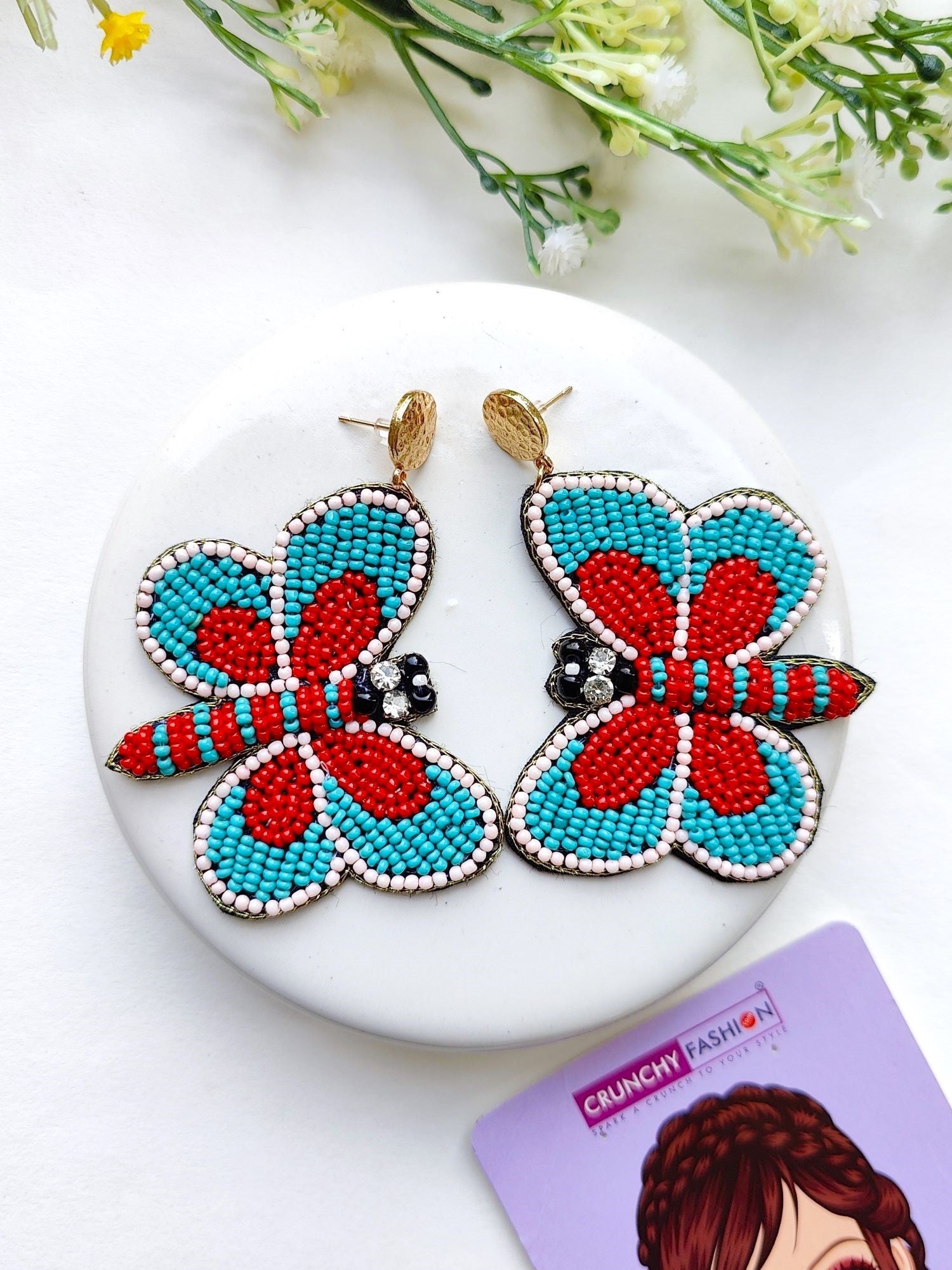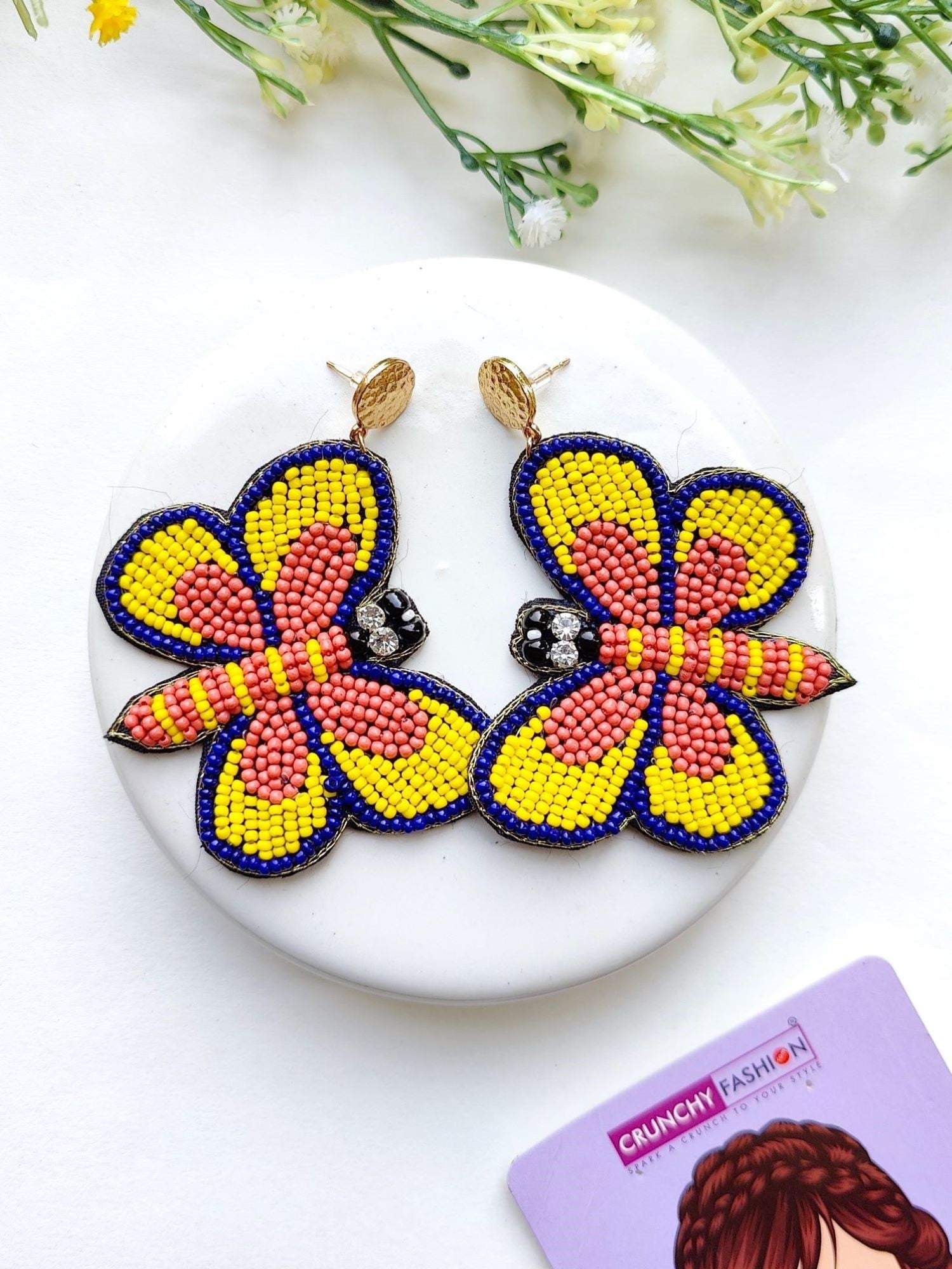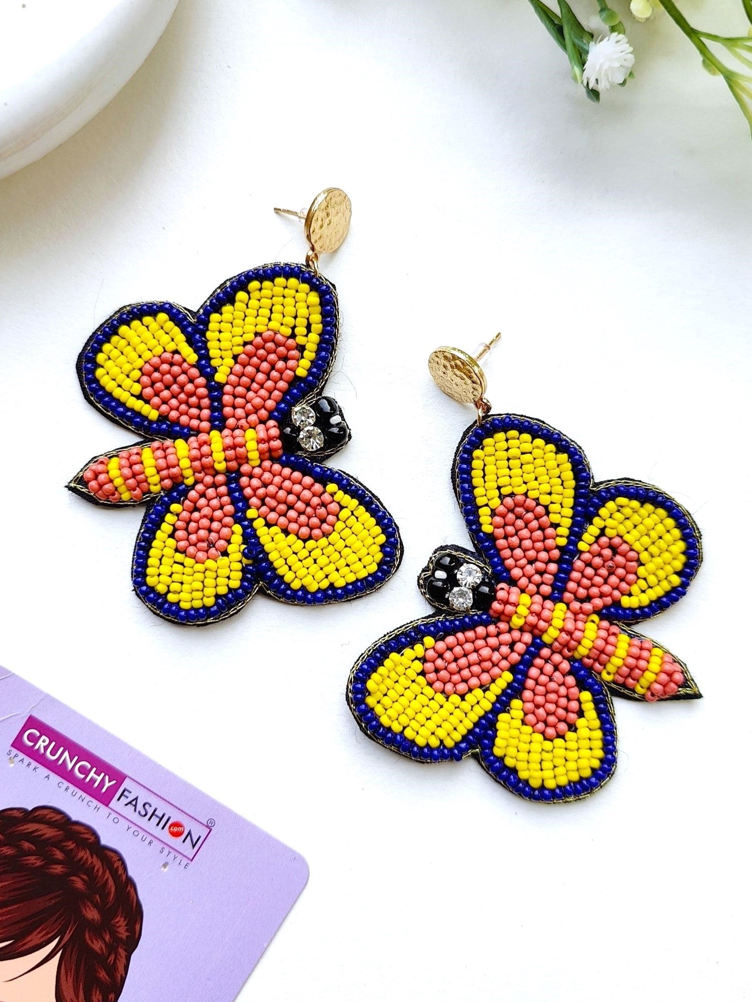 - Multicolored Handmade Beaded Butterfly Earrings - Quirky Statement Party Wear