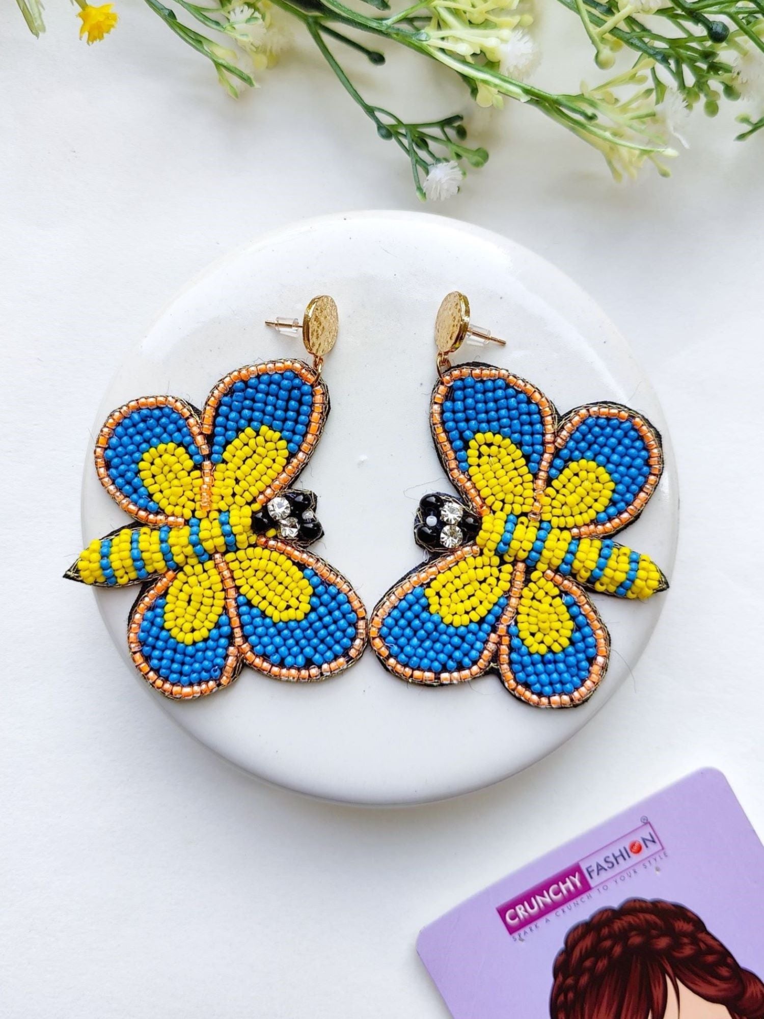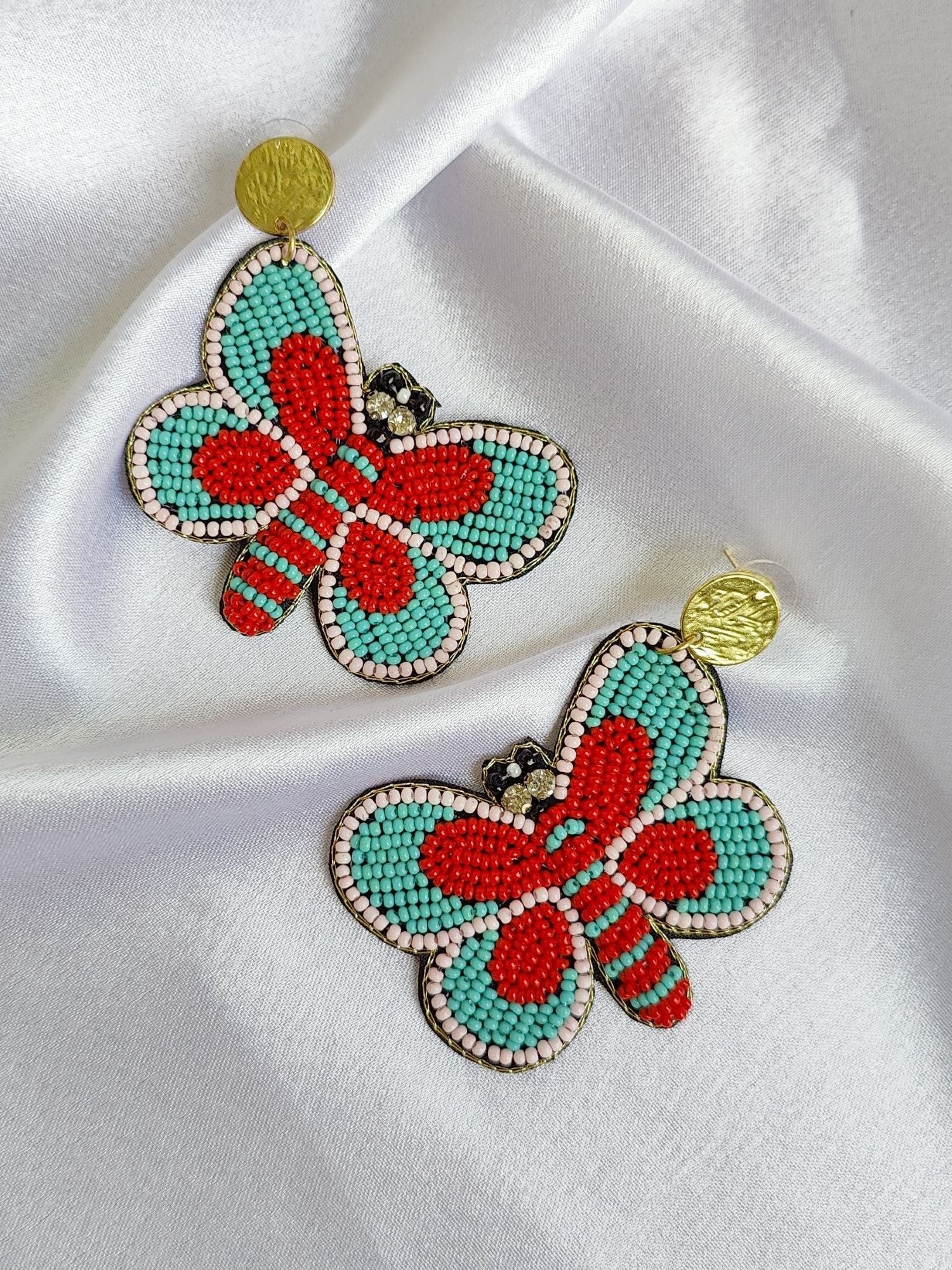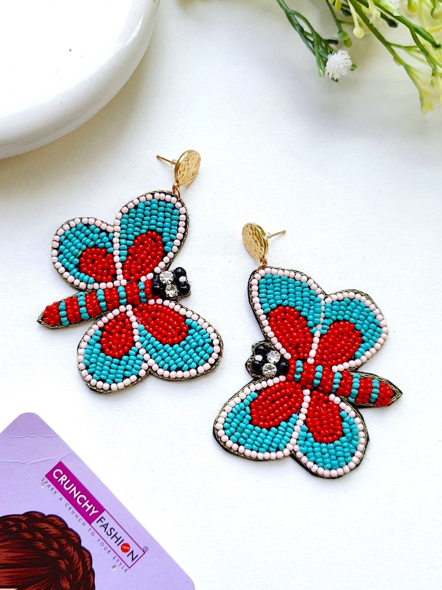 - Multicolored Handmade Beaded Butterfly Earrings - Quirky Statement Party Wear
