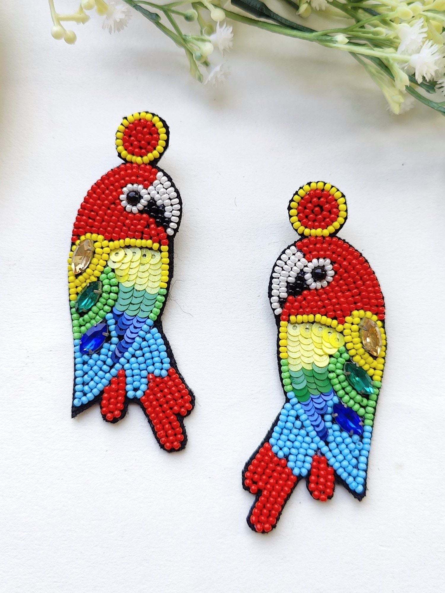 - Paradigm of Splendor: Handmade Beaded Parrot Drop Earrings for Fashionistas