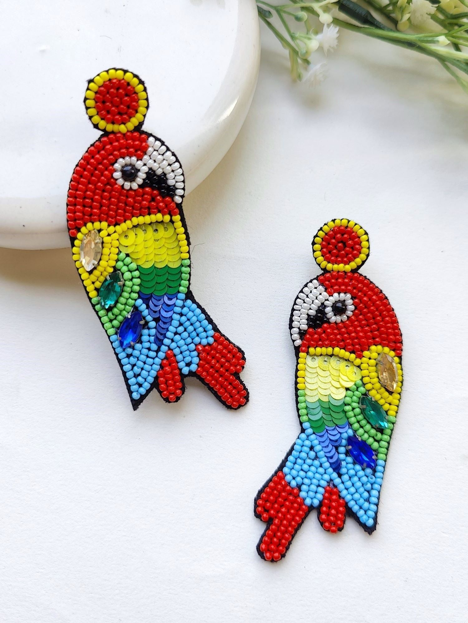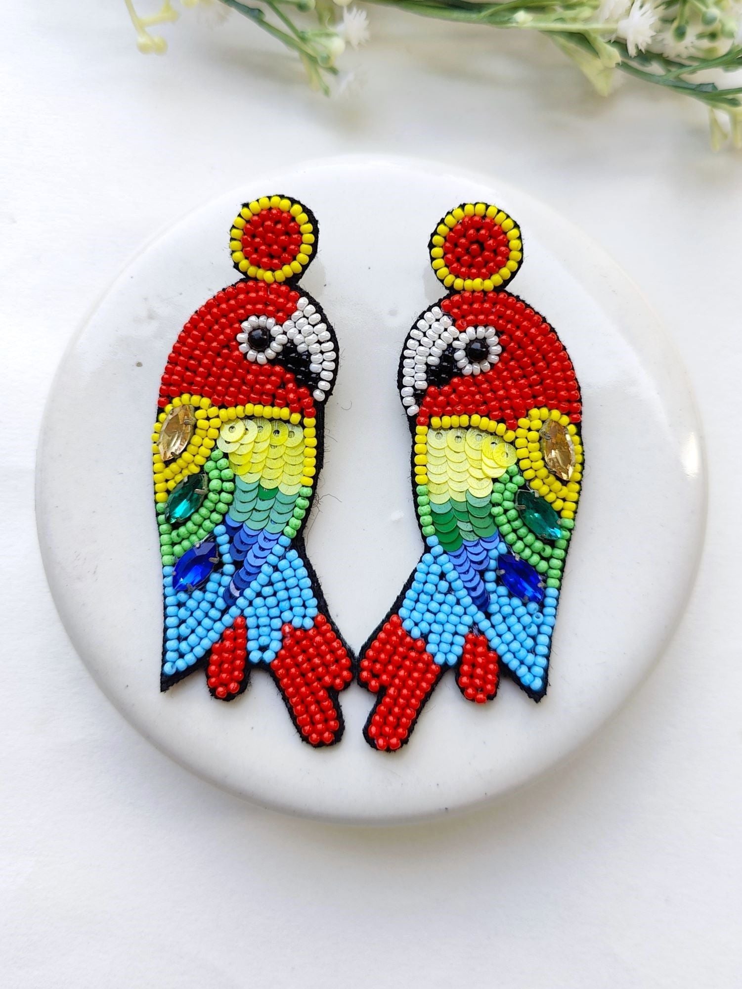 Paradigm of Splendor: Handmade Beaded Parrot Drop Earrings for Fashionistas