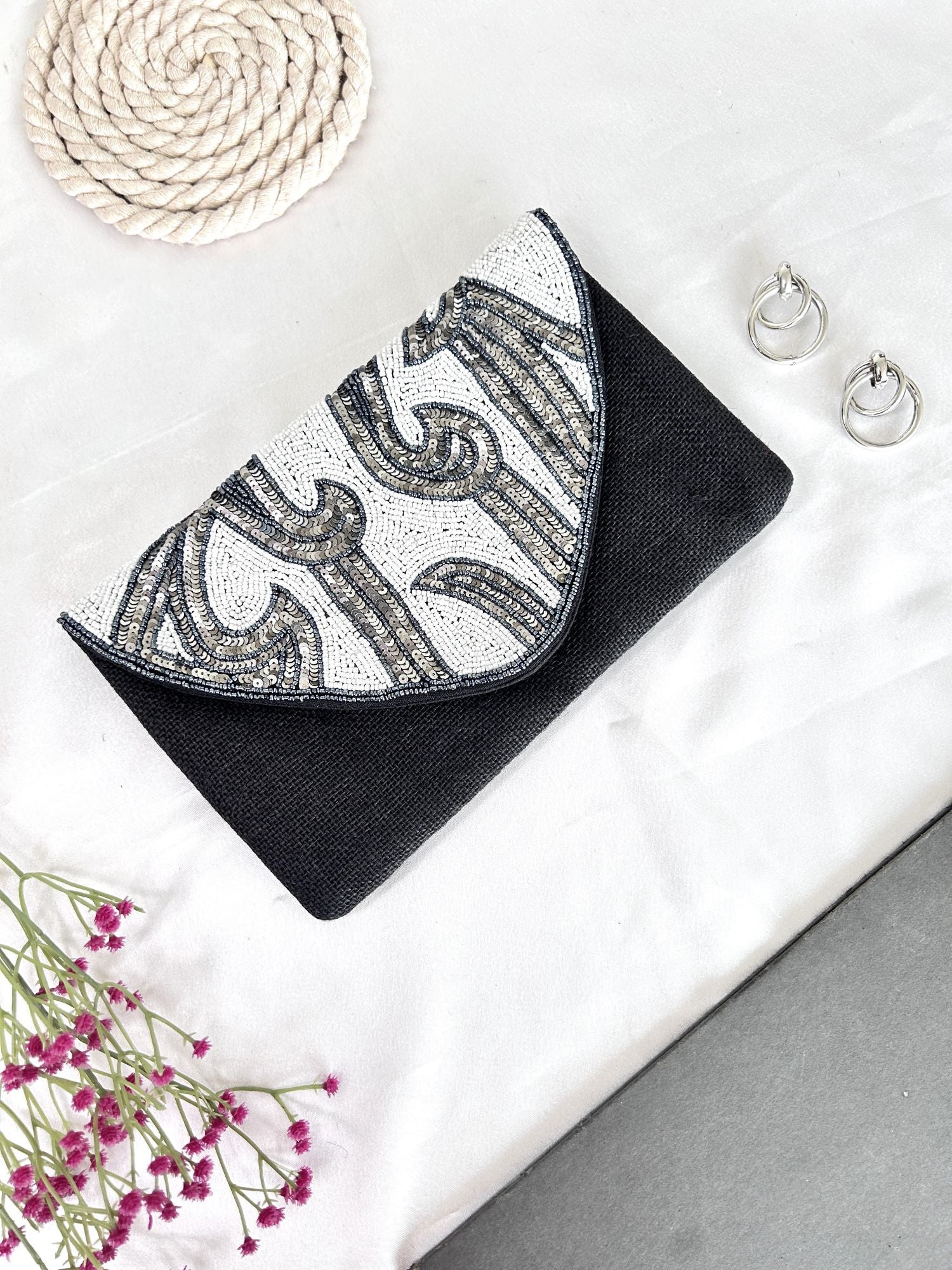 - Monochrome Beaded Boho Fashion Clutch/Sling Bag for Women