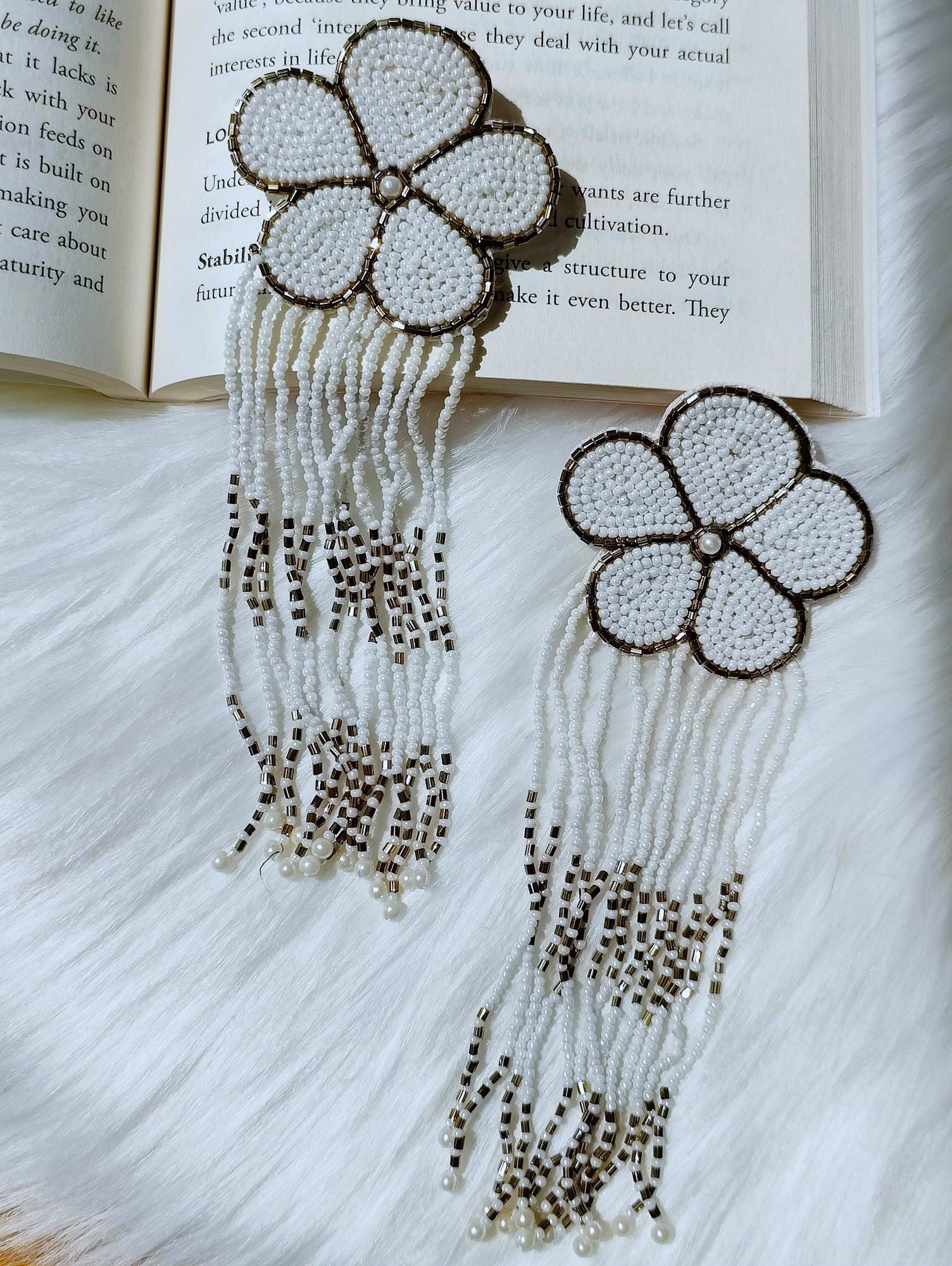 These stunning handmade earrings are the perfect choice for anyone looking to add a touch of elegance to their outfit. The white color and delicate flowers make them a great choice for weddings, parties, and other special occasions.