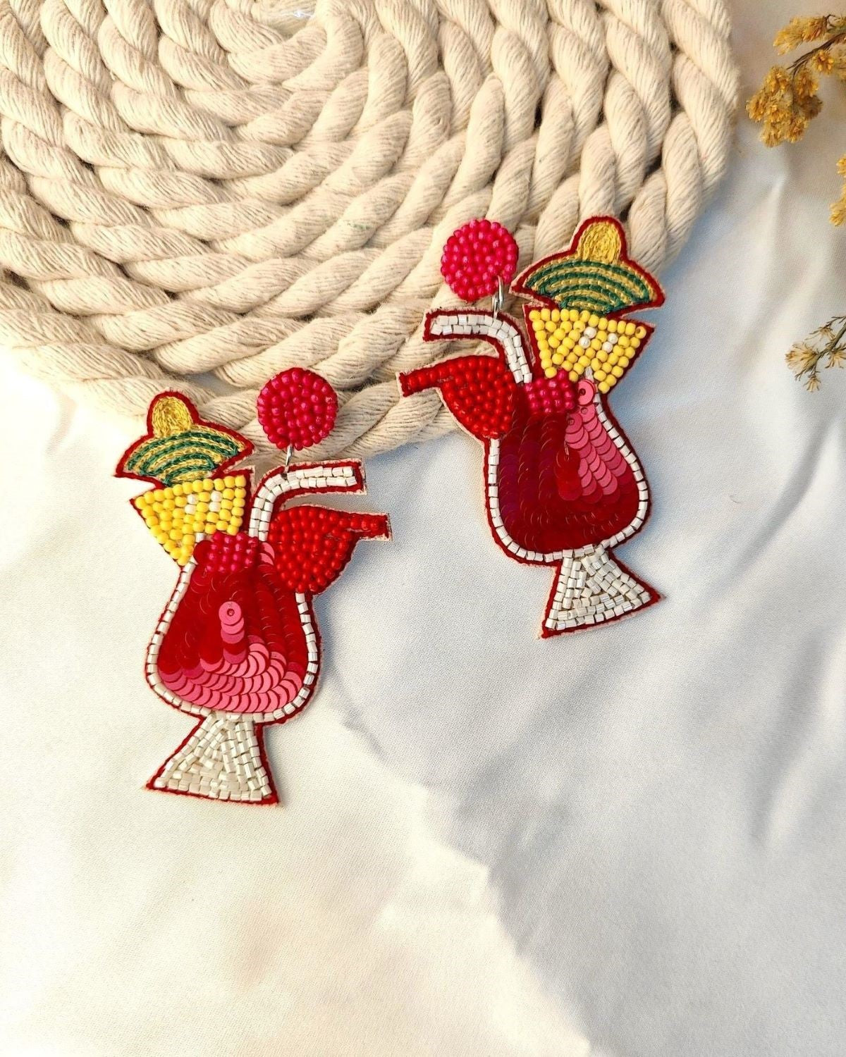 - Cocktail Earrings- Quirky Handmade Beaded Earrings for Women