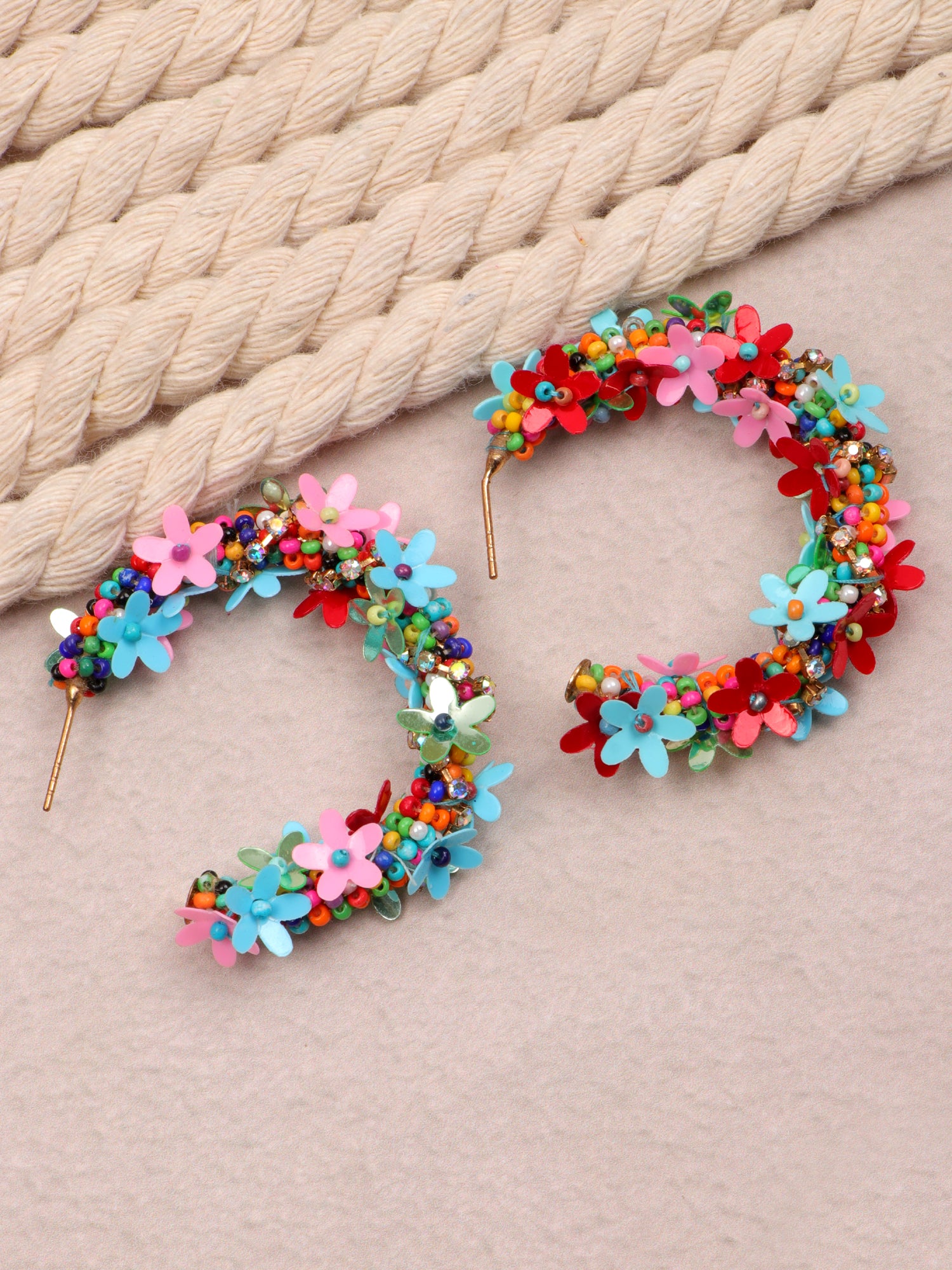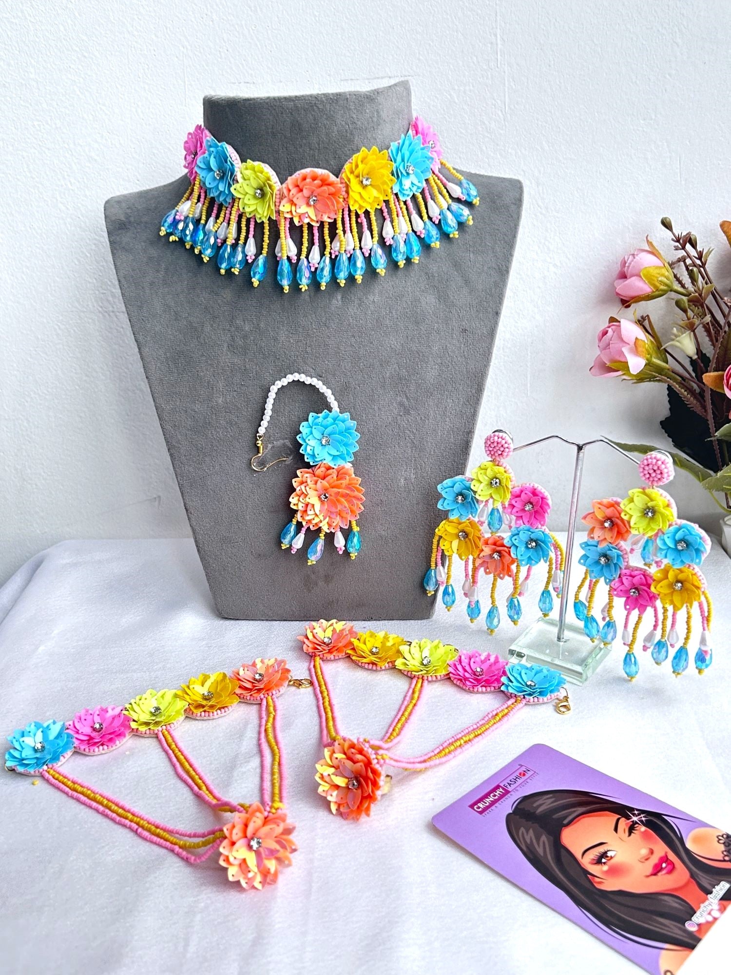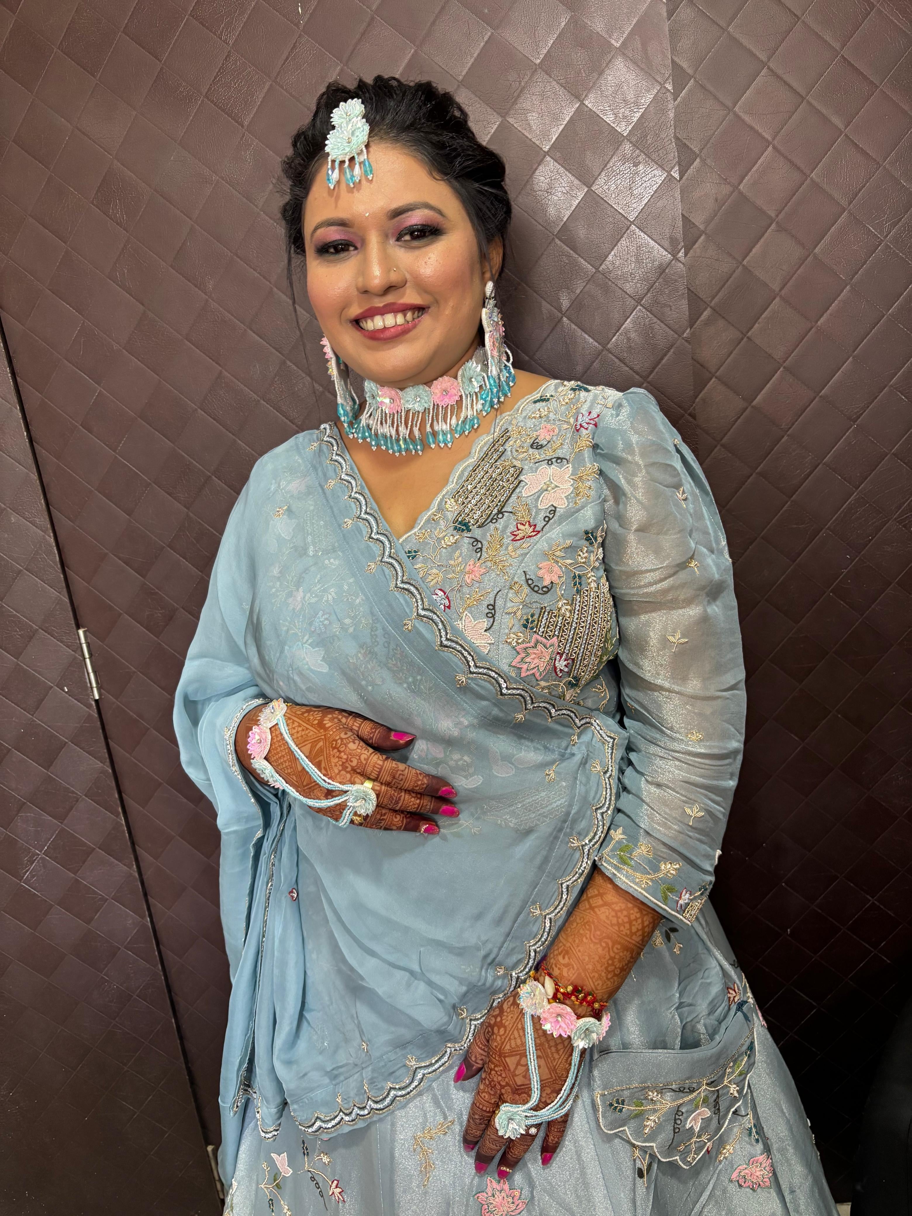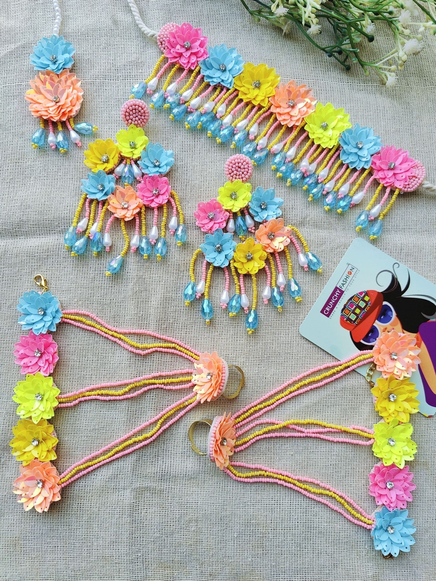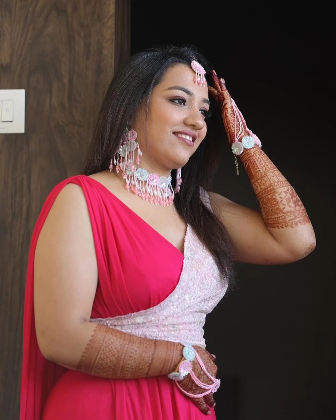 - Handcrafted Pastel Pink & Powder-Blue Floral Beaded Ensemble